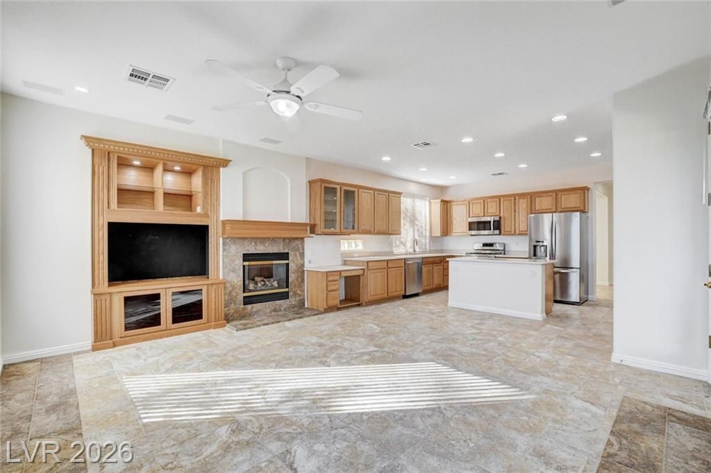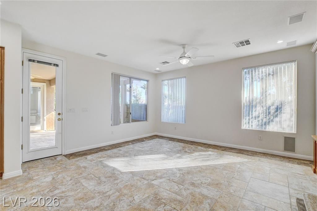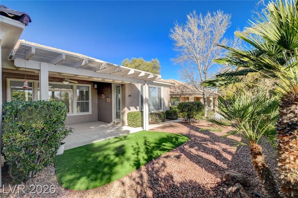 AWESOME PROPERTY W/ FABULOUS LOCATION CLOSE TO ALL THE AMENITIES 'SIENA' OF SUMMERLIN OFFERS, CURB APPEAL, MATURE LANDSCAPING, CUSTOM GATED COURTYARD, STAMPED CONCRETE, DOUBLE GLASS FRONT DOOR W/ SIDE LIGHTS, LG YARD W/ COVERED PATIO, TRELLIS, BEAUTIFUL VIEW OF THE COMMUNITIES ENTRY PALM TREES THAT ARE LIT UP AT NIGHT, FAUX SOD IN FRONT & REAR, ORIGINAL OWNER THAT DEFINITELY TOOK CARE OF THE PROPERTY, '6130' MODEL, APPROX 2068/SF, 2 BED, 3 BATH, DEN, DINING & LIVING RMS, GREAT RM W/ FIREPLACE & B/IN ENTERTAINMENT CTR, KITCHEN W/ STAINLESS APPLIANCES & RECIPE WINDOWS, LAUNDRY W/ NEW WASHER & DRYER, NEWLY PAINTED OUTSIDE & INSIDE, TILE, CARPET, FANS W/ LIGHTS, RECESSED CANS, NEWER HVAC SYSTEM, WINDOW SOLAR SCREENS, 2 CAR GARAGE W/ GOLF CART STORAGE AREA, PLUS MUCH MORE!