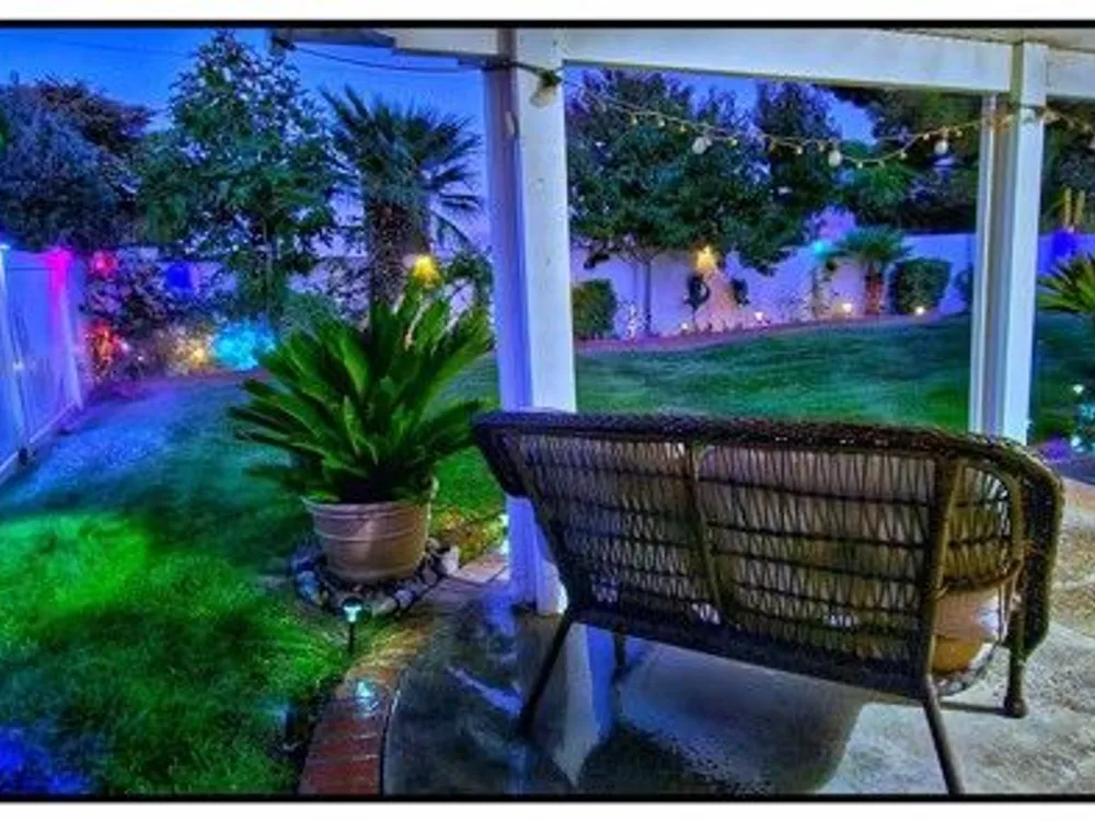 This exceptional turnkey home is located within the 55+ Sun Lakes Community. The property offers a bright, open-air floor plan with high vaulted ceilings and a spacious living room featuring a fireplace. The residence includes three bedrooms and two full baths. The primary bedroom provides ample closet space and private access to a custom-covered back patio. New flooring has been installed throughout, while the kitchen features granite countertops and updated cabinetry, seamlessly connecting to a dining area with views of the landscaped backyard. Outdoor enhancements include custom concrete work, brick planters, and solar lighting. Residents can enjoy a mountain view with no rear neighbors. The front courtyard is ideal for social gatherings. Sun Lakes Country Club amenities include two private golf courses, three clubhouses, tennis courts, three swimming pools, a restaurant/lounge, ballroom, and more. This property represents an outstanding opportunity for discerning buyers.