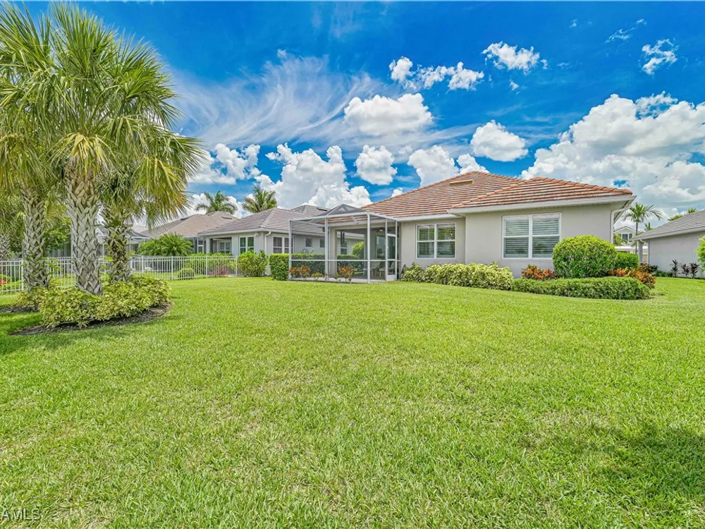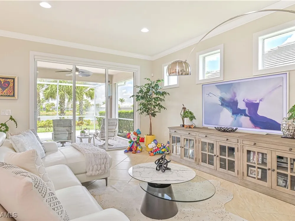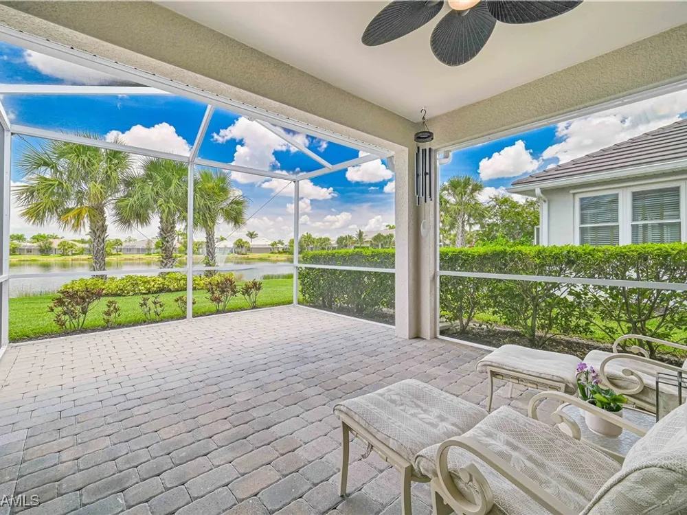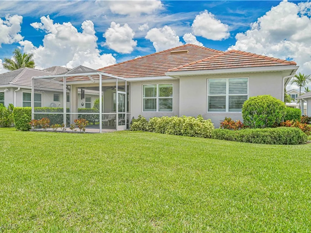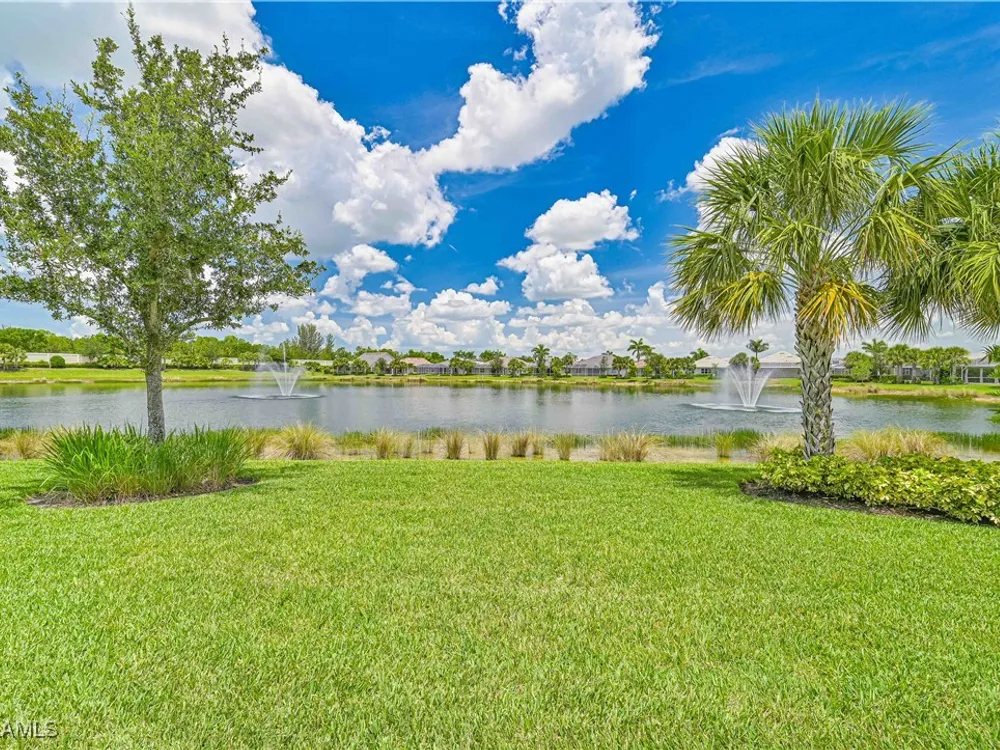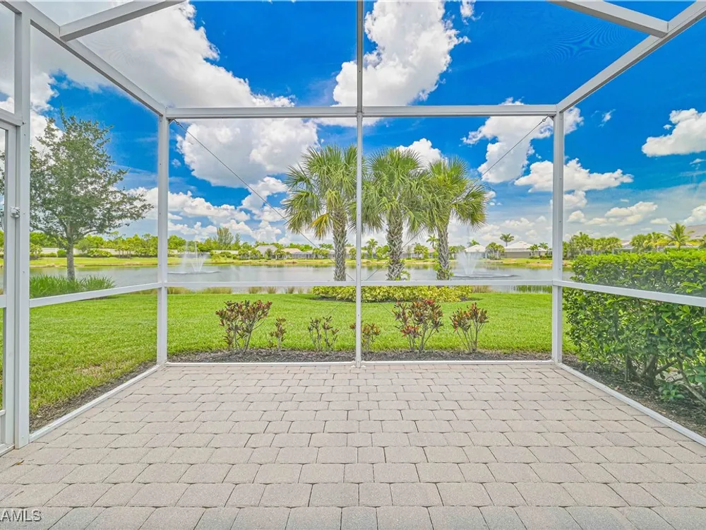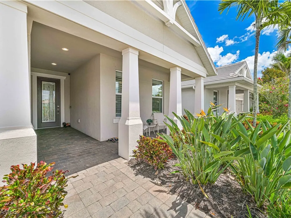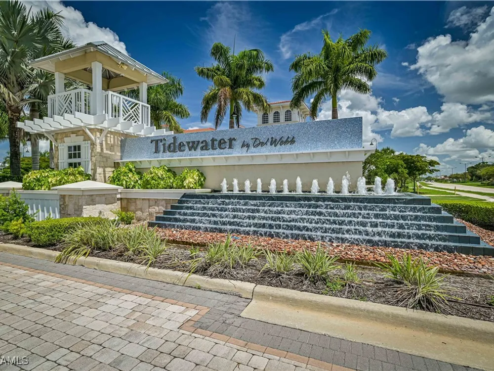 Welcome to the highly sought-after Tidewater community by Del Webb in Estero, Florida! This stunning home is a true model-like residence, offering elegant design and exceptional upgrades throughout. Featuring 3 bedrooms plus a versatile den, the home boasts a spacious and open layout with 21-inch diagonal tile flooring that flows seamlessly across the interior. Plantation shutters and crown molding add a touch of sophistication, while the primary suite impresses with custom built-in closets, dual sinks, and a large glass-enclosed shower — perfect for relaxing retreats. The chef’s kitchen is equipped with stainless steel appliances, a custom backsplash, an abundance of can lighting, a large work island, making it ideal for entertaining. Step outside to the extended paver lanai, perfect for outdoor living and overlooking the breathtaking lake views. The epoxy-painted garage floor adds durability and style. Additional features include extended lanai living space, numerous interior extras, and a prime location within the community. Don’t miss this exceptional opportunity to own a move-in-ready home in Tidewater — a vibrant, active community with plenty of amenities. Schedule your showing today!