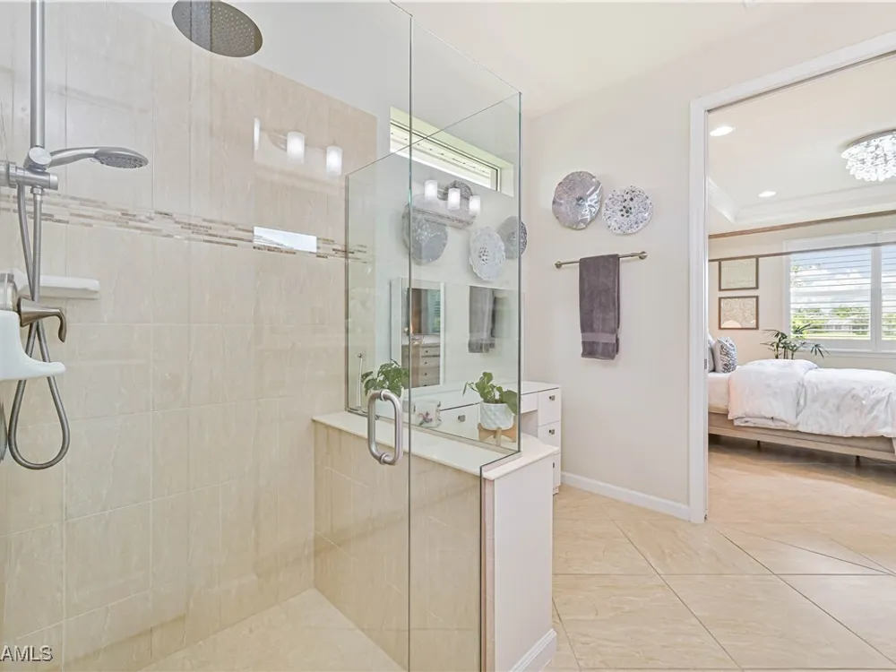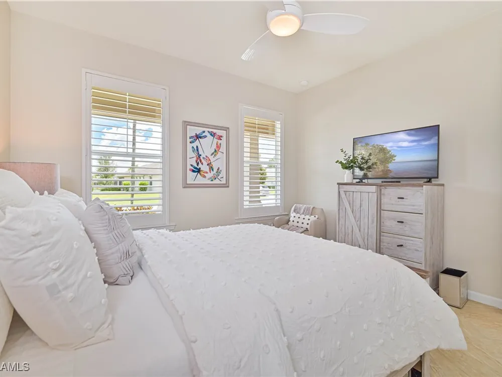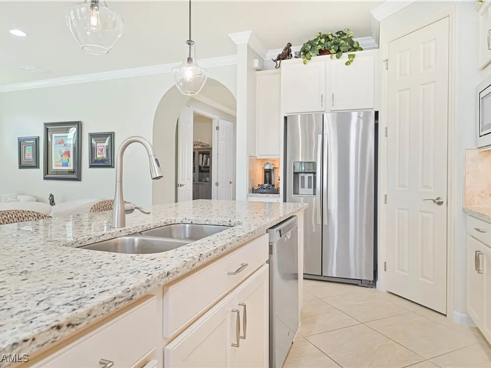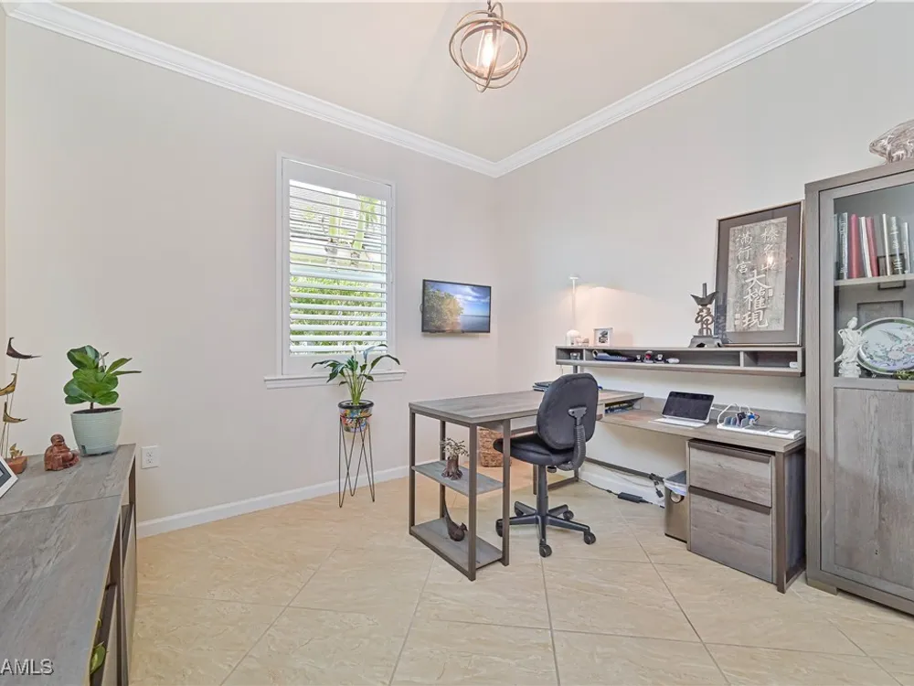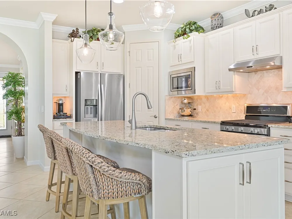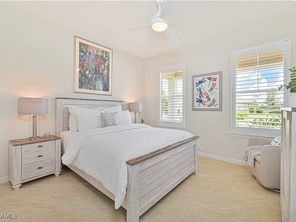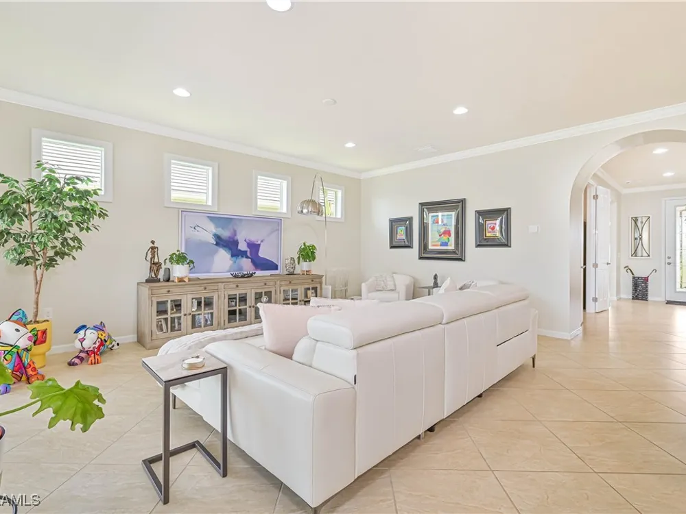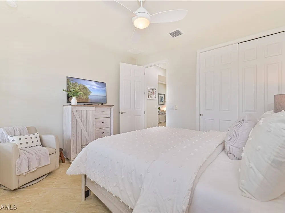 Welcome to the highly sought-after Tidewater community by Del Webb in Estero, Florida! This stunning home is a true model-like residence, offering elegant design and exceptional upgrades throughout. Featuring 3 bedrooms plus a versatile den, the home boasts a spacious and open layout with 21-inch diagonal tile flooring that flows seamlessly across the interior. Plantation shutters and crown molding add a touch of sophistication, while the primary suite impresses with custom built-in closets, dual sinks, and a large glass-enclosed shower — perfect for relaxing retreats. The chef’s kitchen is equipped with stainless steel appliances, a custom backsplash, an abundance of can lighting, a large work island, making it ideal for entertaining. Step outside to the extended paver lanai, perfect for outdoor living and overlooking the breathtaking lake views. The epoxy-painted garage floor adds durability and style. Additional features include extended lanai living space, numerous interior extras, and a prime location within the community. Don’t miss this exceptional opportunity to own a move-in-ready home in Tidewater — a vibrant, active community with plenty of amenities. Schedule your showing today!