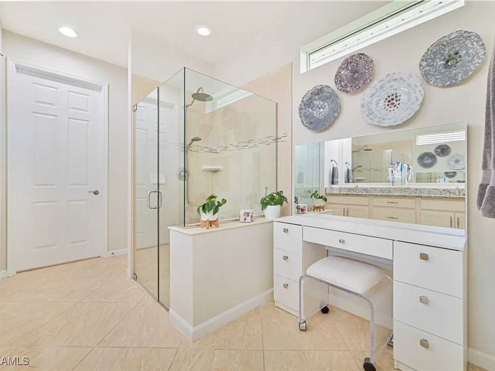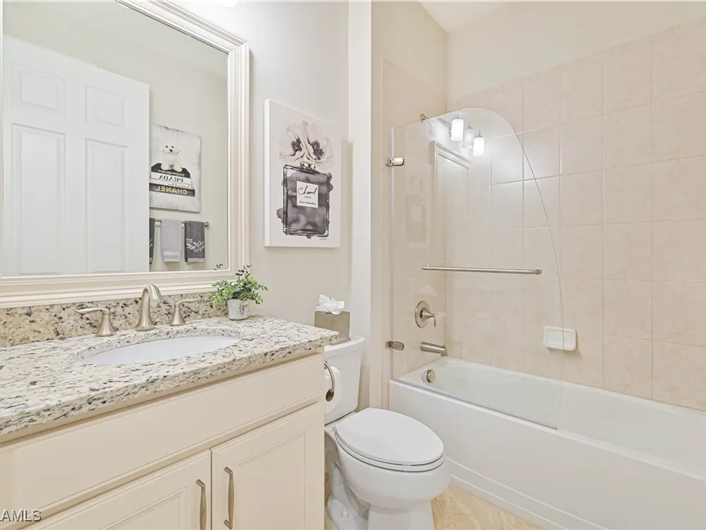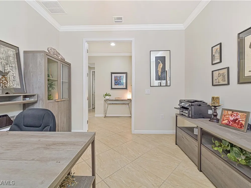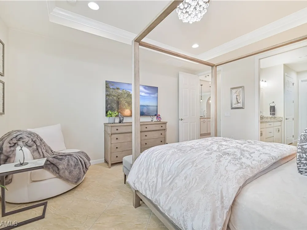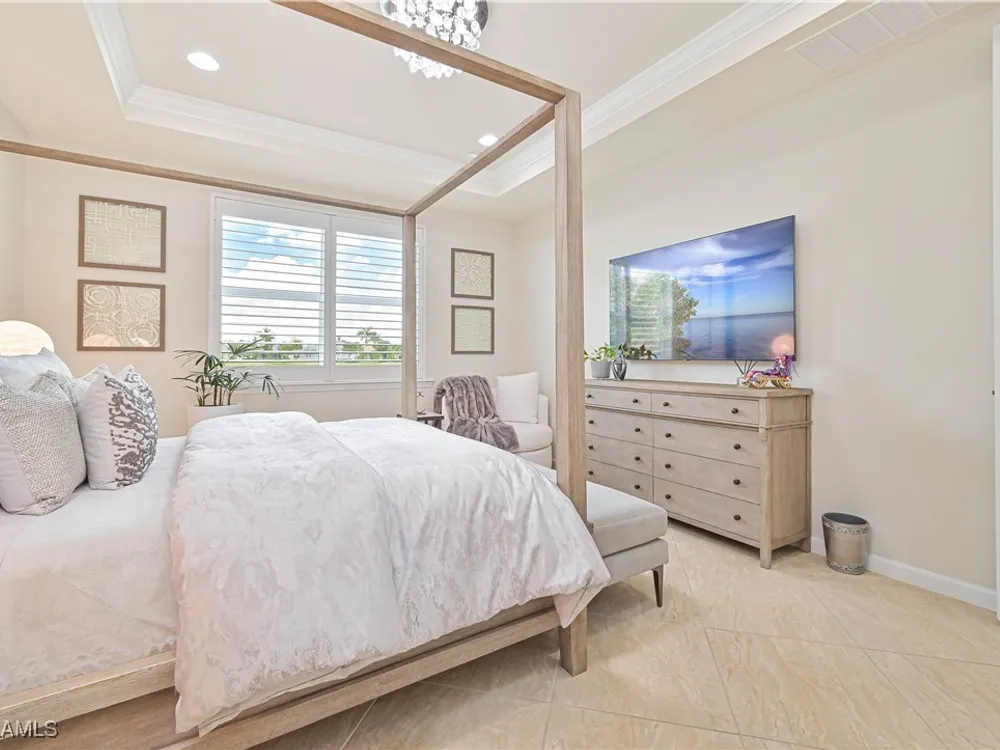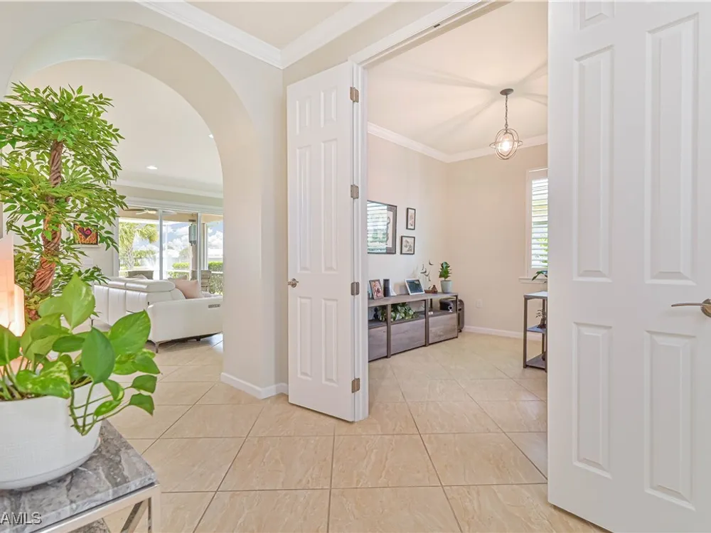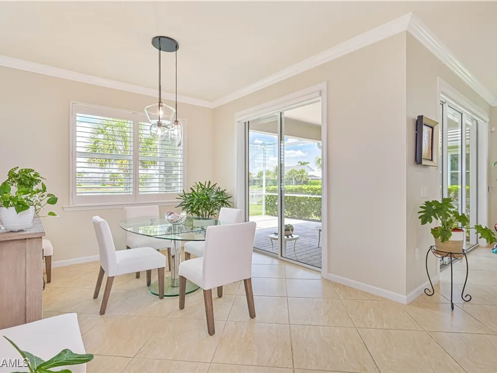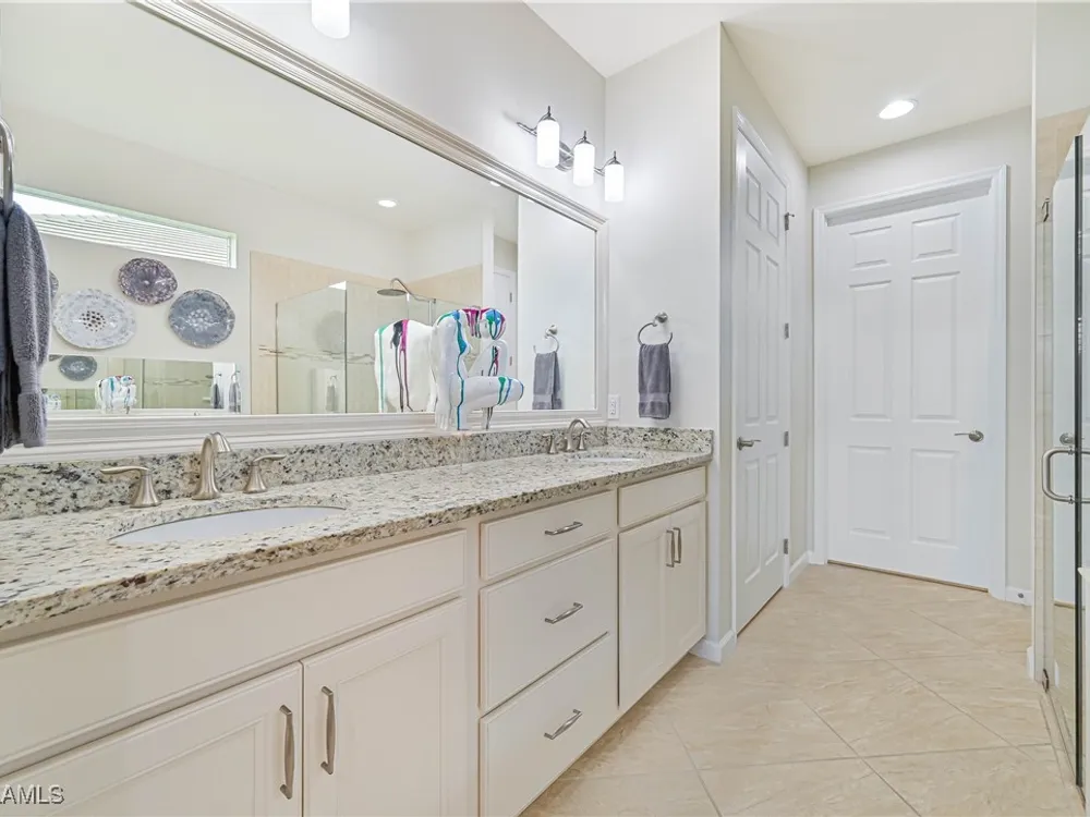 Welcome to the highly sought-after Tidewater community by Del Webb in Estero, Florida! This stunning home is a true model-like residence, offering elegant design and exceptional upgrades throughout. Featuring 3 bedrooms plus a versatile den, the home boasts a spacious and open layout with 21-inch diagonal tile flooring that flows seamlessly across the interior. Plantation shutters and crown molding add a touch of sophistication, while the primary suite impresses with custom built-in closets, dual sinks, and a large glass-enclosed shower — perfect for relaxing retreats. The chef’s kitchen is equipped with stainless steel appliances, a custom backsplash, an abundance of can lighting, a large work island, making it ideal for entertaining. Step outside to the extended paver lanai, perfect for outdoor living and overlooking the breathtaking lake views. The epoxy-painted garage floor adds durability and style. Additional features include extended lanai living space, numerous interior extras, and a prime location within the community. Don’t miss this exceptional opportunity to own a move-in-ready home in Tidewater — a vibrant, active community with plenty of amenities. Schedule your showing today!