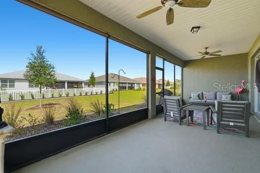 Charming Two-bedroom Home In On Top of the World, Ocala Florida. Welcome to your new oasis in the highly sought-after On Top of the World 55+ Community! This delightful two-bedroom, two bath home with $25,000 of upgrades to include an extra wide driveway, a garage with epoxy flooring, solar panels and luxury vinyl plank flooring throughout the home offers a perfect blend of comfort, luxury and convenience. The open floor plan is filled with natural light, creating a warm and inviting atmosphere. The kitchen is equipped with modern appliances and plenty of beautiful quartz counter space, a great place for preparing meals and entertaining guest. The master suite is a true retreat with an ensuite bathroom and ample closet space. The second bedroom is wonderful for guests giving them plenty of privacy. An additional room that could be a dedicated office space, library or a craft room is a productive haven, ideal for working from home. Featuring ample lighting and a quiet space. It provides a perfect environment for focus and creativity. Enjoy the serene Florida weather on your private screened lanai, overlooking lush greenery. As a resident of On Top of the World, you'll have access to an array of amenities, including golf courses, fitness centers, swimming pools and social clubs, ensuring there's always something to do. Don't miss this opportunity to own a piece of paradise in a vibrant, active community. *Available for turn-key, option to buy furniture, golf cart and muscle car.*
