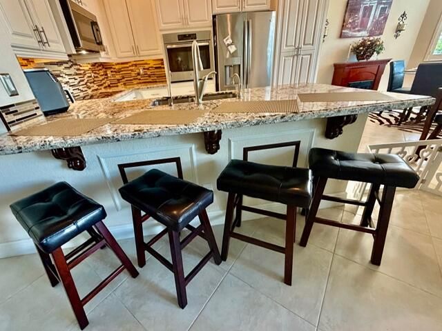 2/2, Possible 3rd BR if Closet added. Waterfront. 3-Car Garage. Elegance Abounds in this Isabella Model Featuring Entry Foyer, Great Room & Separate Dining Room w Tray Ceilings, Hurricane Impact Windows & Doors throughout. 3 Bay Windows, Open Plan, Kitchen has Newer SS Appliances, Wall Oven, Upgr Cooktop, SS Dual Sinks, Soft Close Doors & Pullout Drawers, Pantry, Instant Hot Water, Reverse Osmosis Water Softener, Eat-In Area. Huge en-suite PBR, 2 Large Custom Designed Walk-ins, PBA Dual Vanities, Roman Tub, Sep Large Walk-in Shower w comfort seat. Built Inside Laundry. Porcelain Wood-Look Planks in Br's & Den, Plantation Shutters & Crown Molding Main Areas, A/C 2025. 11' Ceilings, Ceiling Fans, High Hat Lighting, Neutral Decor Throughout. A/C 2025, HWH W/D 2024, Gated Community. Maint includes Cable, Clubhouse w Indoor & Outdoor Pools, 26 Pickle Courts, Tennis Courts, Bocce, Exercise Room, Library, Activities ++. Assoc w PGA Golf Window Scarves in BR's & Den, Pendant Kitchen Light, chandeliers in Kitchen neg. DR & PBR, Drapes in FR. Murphy Bed in Library do not convey.