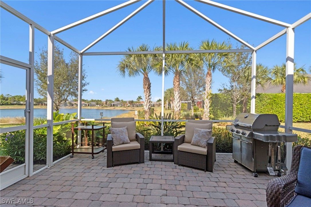 Welcome to 10594 Tidewater Key Blvd., in the attractive Tidewater by Del Webb 55+ active adult gated community. This beautiful Martin Ray model home offers 2 Bedrooms + Den, 2 full Bathrooms and a spectacular lake view. The 2-car garage also offers extra space for a golf cart. Inside you will find a chef's kitchen with large island, butler's pantry with a Kitchen-Aid wine fridge, walk-in pantry, Granite countertops, Natural Gas for cooking, tile floors in main living areas, coat closet by the garage door, and more! The Master suite offers a quiet retreat, ensuite bath with large shower and custom finished walk-in closet. The beautiful interior flows seamlessly to the outside. where you will find an extended covered lanai, with motorized roll-down hurricane shutters to allow outdoor furniture storage during storms. Beyond the covered area, the lanai offers space to relax with a view of the lake and fountains. This home offers the perfect amount of space for two, yet provides an extra bedroom for company! The award-winning amenity center offers bocce ball, pickle ball, tennis a resort-style pool and more! Tidewater by Del Webb is Estero's premier Active 55+ community, offering the perfect location in Estero, and NO CDD! Close to RSW Airport, Miromar Outlets, Hertz Arena, I-75... and a short drive to the sandy beaches of SWFL. Welcome home!