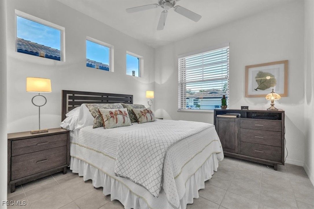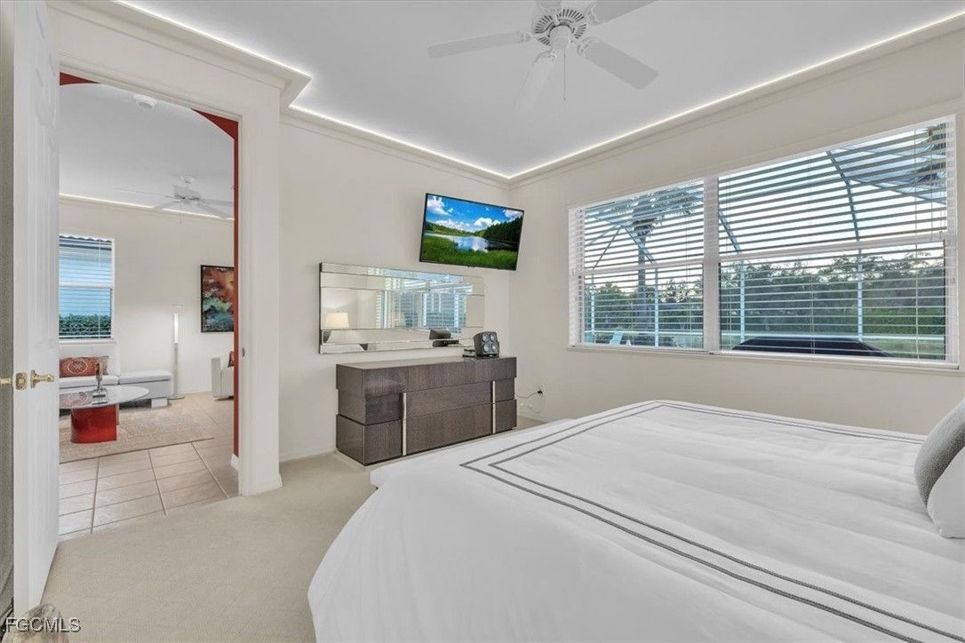 Welcome to this beautifully maintained 3-bedroom, 2-bath home offering 1,647 square feet of thoughtfully designed living space and an exceptional list of upgrades rarely found at this price point. Step inside to an inviting, light-filled interior featuring upgraded lighting throughout, ceiling lights in every room, under-cabinet lighting in the kitchen, and elegant touches including a Swarovski tree-branch chandelier and original artwork by Pam Cherry and Lister. The spacious kitchen features Corian countertops, reverse osmosis at the sink and refrigerator ice maker, a Culligan water softener system, and plenty of cabinet space. The primary suite offers a walk-in closet with extra storage, while the guest bath features a luxurious shower with four body jets. Step outside to your private backyard oasis designed for relaxation and entertainment. Enjoy a fabulous pool and spa with serene waterfall features, beautiful sunset views, and a natural gas heater for year-round comfort. A wireless remote controls the pool and spa system, and the lanai is pre-wired for an outdoor TV. Natural gas hookup for grilling makes it perfect for outdoor dining. The home also includes outdoor soffit lighting along the sidewalk and pool area, plus manual hurricane shutters for peace of mind. Major mechanical and lifestyle upgrades include a new 2023 tankless on-demand water heater, a 22 kW Generac whole-house generator, a level-2 electric car charger, a water pressure tank, and toilets replaced in 2022. Ceiling fans are located throughout the home for added comfort. The laundry room offers a mud sink, shelving, and a laundry tub for convenience. The garage includes storage racks, extra storage space, and a beautifully painted floor. Additional features include 2" wood blinds throughout, auto blinds on the sliding glass doors, and four mounted TVs that stay with the home. This move-in-ready property truly has too many extras to list and has been impeccably cared for. With its extensive upgrades, stunning outdoor amenities, and desirable location, this home is priced to sell and won’t last long. Pelican Preserve is one of Fort Myers’ premier 55+ communities, offering resort-style living with an award-winning town center, championship golf course, fitness and wellness studios, two resort pools plus an indoor pool, walking and biking trails, a cinema, dining options, tennis, pickleball, social clubs, and endless activities. Residents enjoy a vibrant lifestyle surrounded by beautifully maintained grounds and exceptional amenities designed to enrich everyday living.