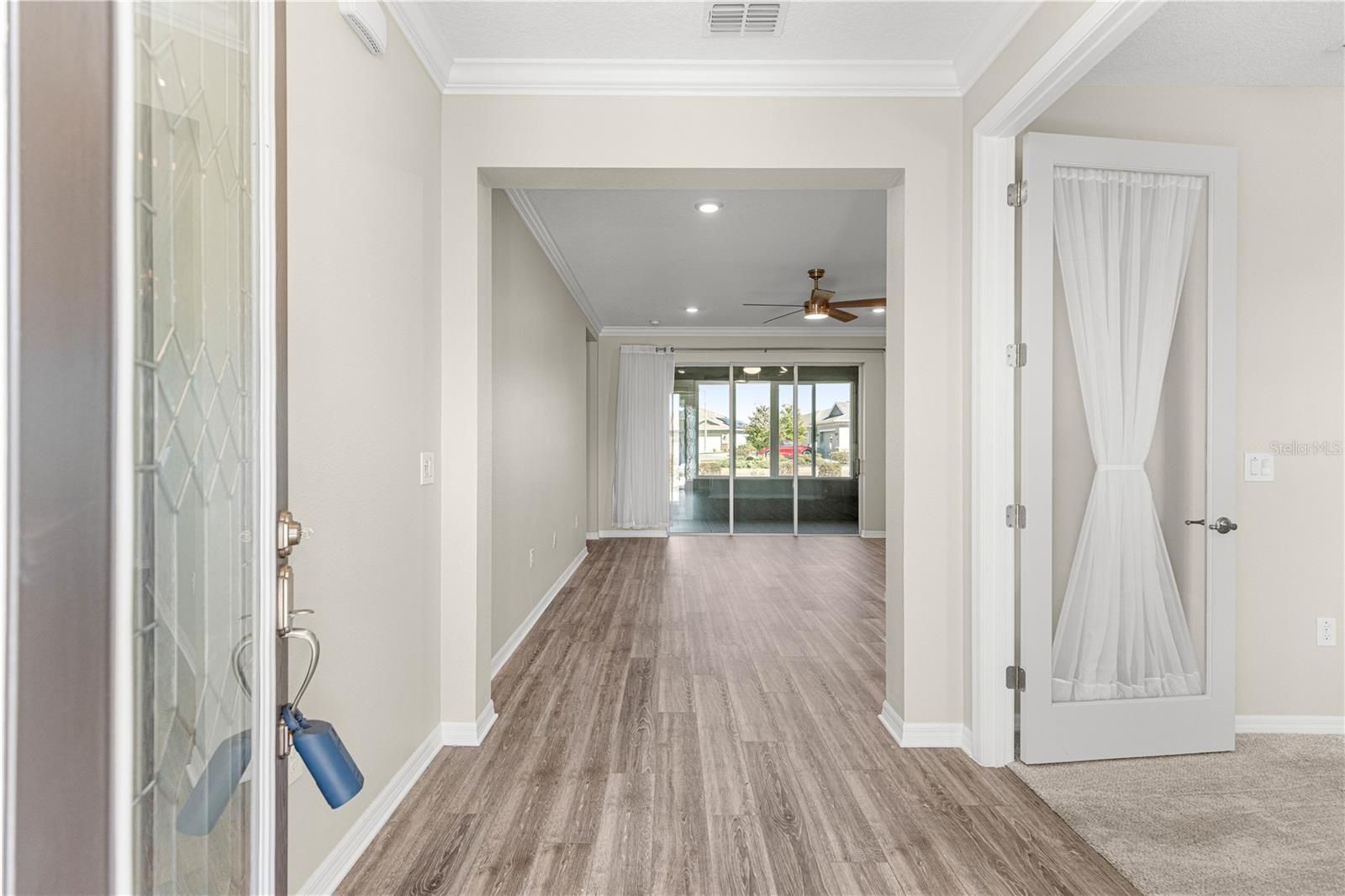 ***UPDATE!!*** New Price Reduction. Move in Ready!! Beautiful LVP. This custom built, smart home is 4 years new but better! Featuring a spacious corner lot in a quiet cul-de-sac. Large crown molding. All natural wood cabinets in kitchen & laundry with soft close and hung lower for better accessibility. Gorgeous quartz counters. 2 bedrooms with carpet. Great view of the RC flying field from your fully insulated, glassed lanai with tinted windows or your paver patio. Oversized garage with space for 2 cars and a golf cart along with epoxied floors and insulated garage door. Tankless hot water heater. And so many more positives to see. Call for your appointment to view today!
