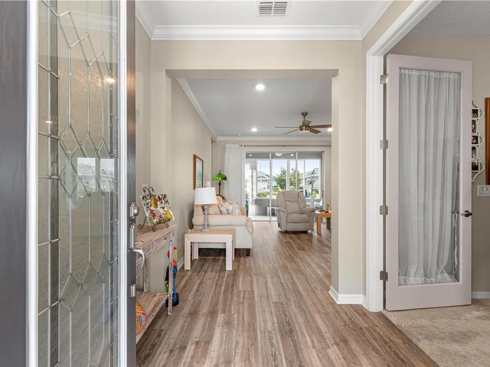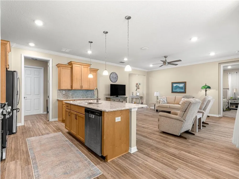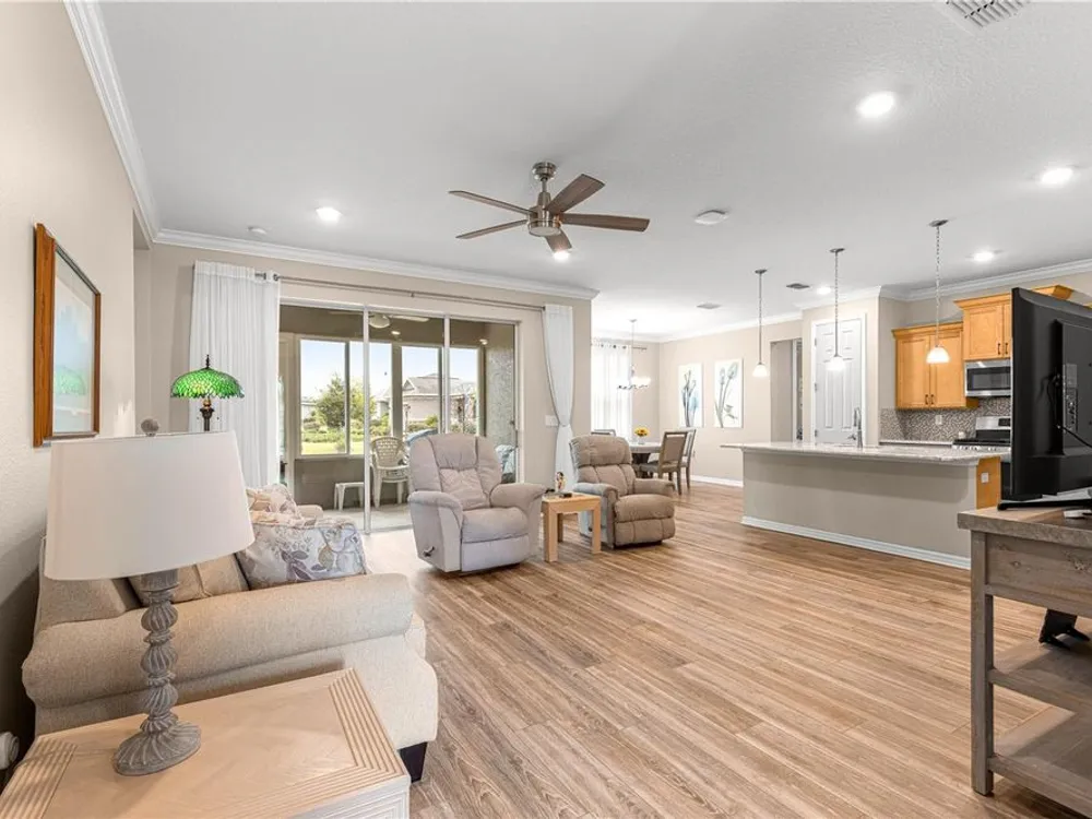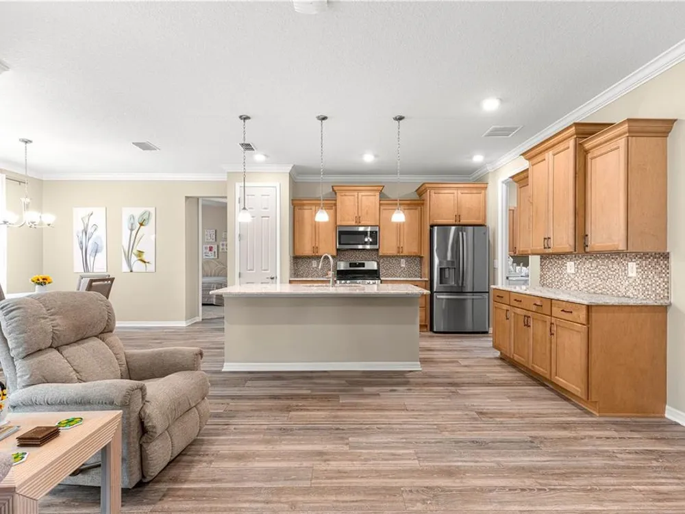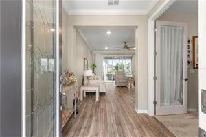 ***UPDATE!!*** New Price Reduction. Beautiful LVP. This custom built, smart home is 4 years new but better! Featuring a spacious corner lot in a quiet cul-de-sac. Large crown molding. All natural wood cabinets in kitchen & laundry with soft close and hung lower for better accessibility. Gorgeous quartz counters. 2 bedrooms with carpet. Great view of the RC flying field from your fully insulated, glassed lanai with tinted windows or your paver patio. Oversized garage with space for 2 cars and a golf cart along with epoxied floors and insulated garage door. Tankless hot water heater. And so many more positives to see. Call for your appointment to view today!