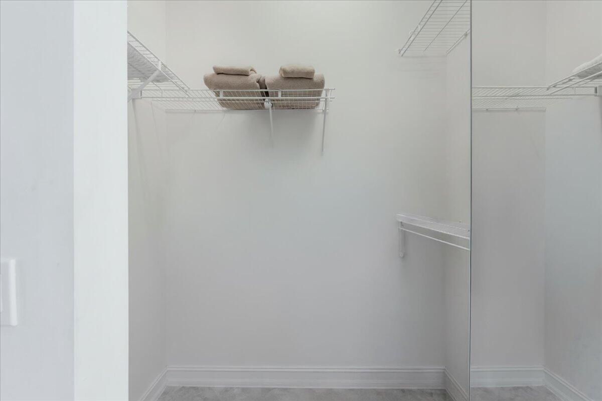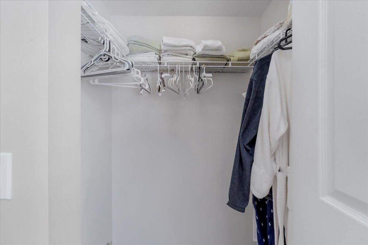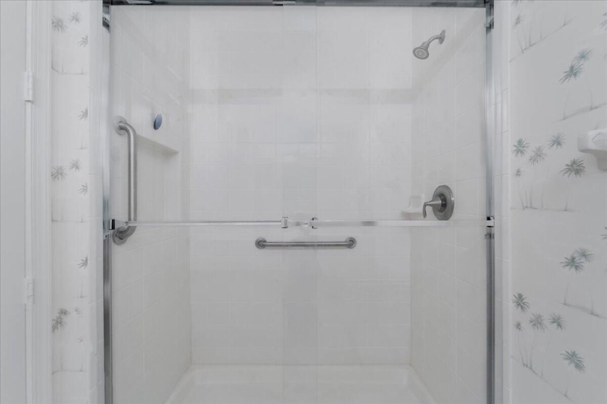 - Cathedral Ceiling(s), Entry Level Living Area, Pantry, Split Bedrooms, Walk-In Closet(s), Separate/Formal Dining Room, Blinds, Window Vertical(s), Dual Sinks, Primary Downstairs, Separate Shower, Bathtub, Storm Shutters