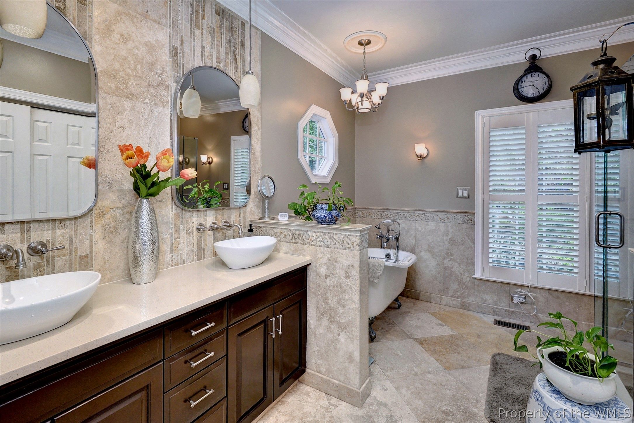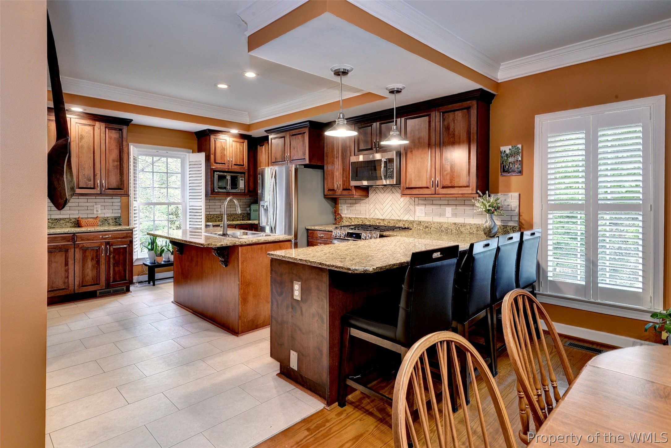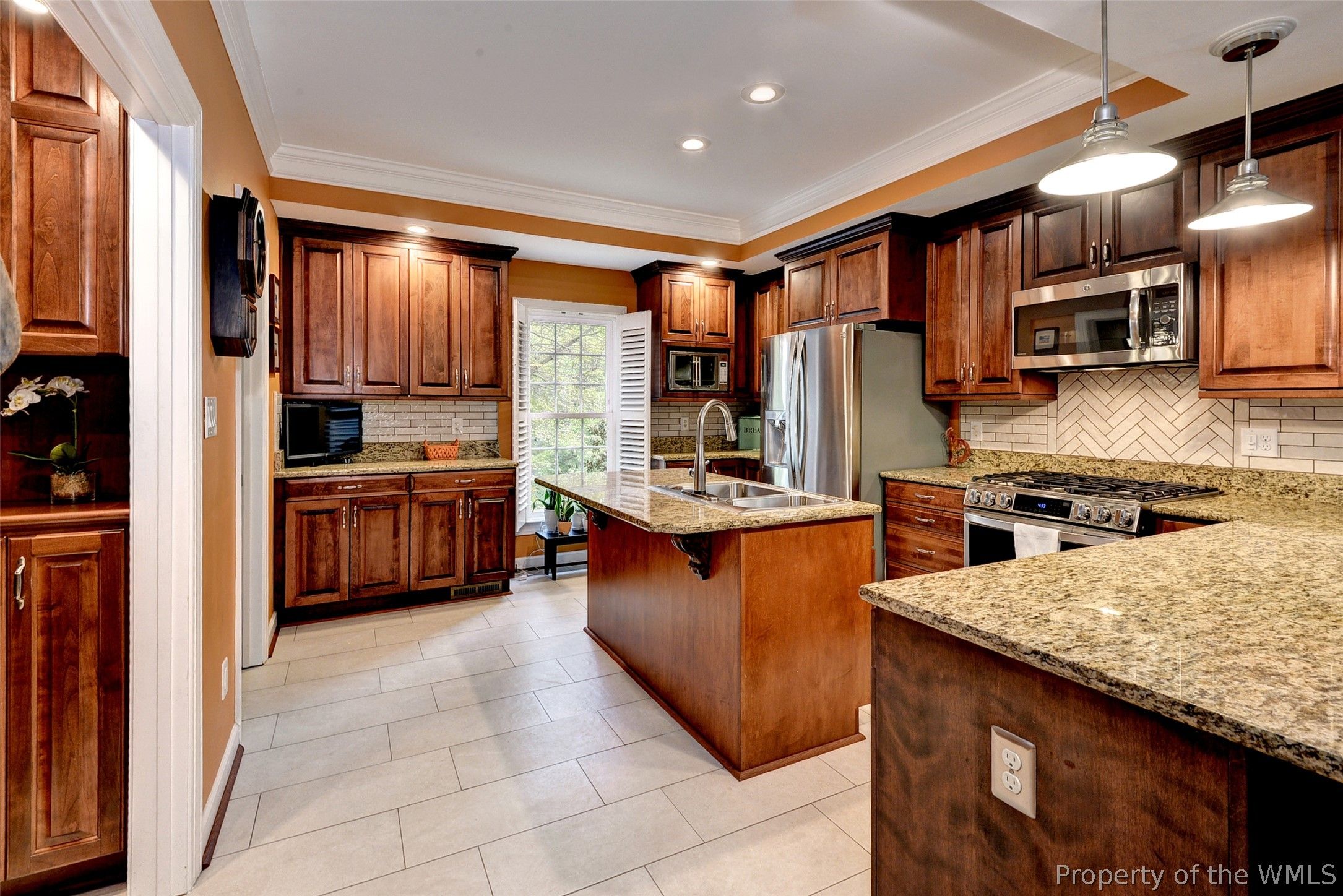 Southern Front porch gatherings! Tranquil garden oasis off the back deck and paver patio. 3 Expansive bedrooms with connecting studies/exercise or craft rooms; Main floor primary suite w dream closets! -spa bath w/double sinks, soaking tub, walk in shower. Access to back deck too. Upstairs 2 additional bedrooms, loft area and media bonus room. Main floor boasts front parlor with fireplace, formal dining room, and spacious family room w built ins and fireplace; Kitchen w center island, separate wet bar & wine refrigerator; opens to a generous ‘keeping room’. 3-season room completes the living spaces. Each of the main floor rooms give access to the outside areas. Lower-Level hosts large laundry room and double oversized garage; an enclosed ‘shed’ storage area under the sunroom for outside ‘toys’. Generous walk in storage in every alcove. New 50 year Roof in ’08; HVAC up 2 yrs main floor 12 years; tankless water heater; water filtration system too. Surround sound system enriches the ambiance and can be controlled by phone. Great location within the Colony for ease access to gates. Exterior offers ramped paths for easy access into the house - no need to traverse the stairs. Low maintenance plantings lets you enjoy where you live and offers seasonal surprises. Dont miss the 'bubbler' out front that sets the stage for peaceful ambience even before you enter this custom home!