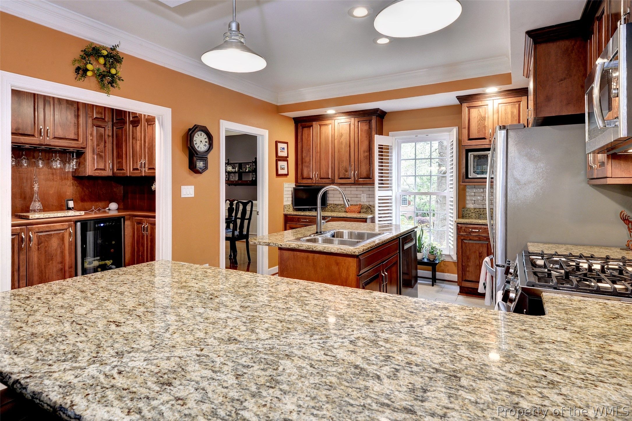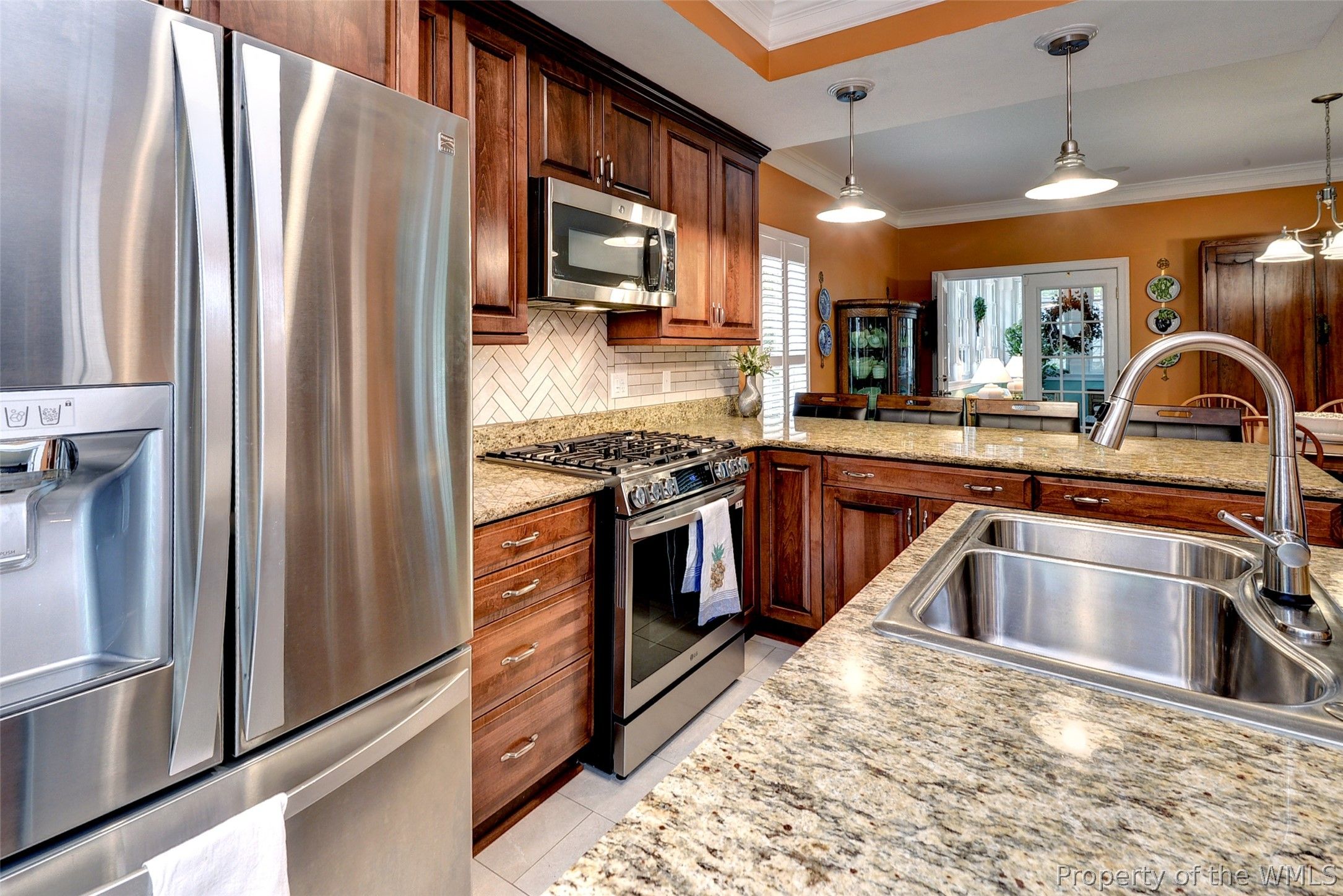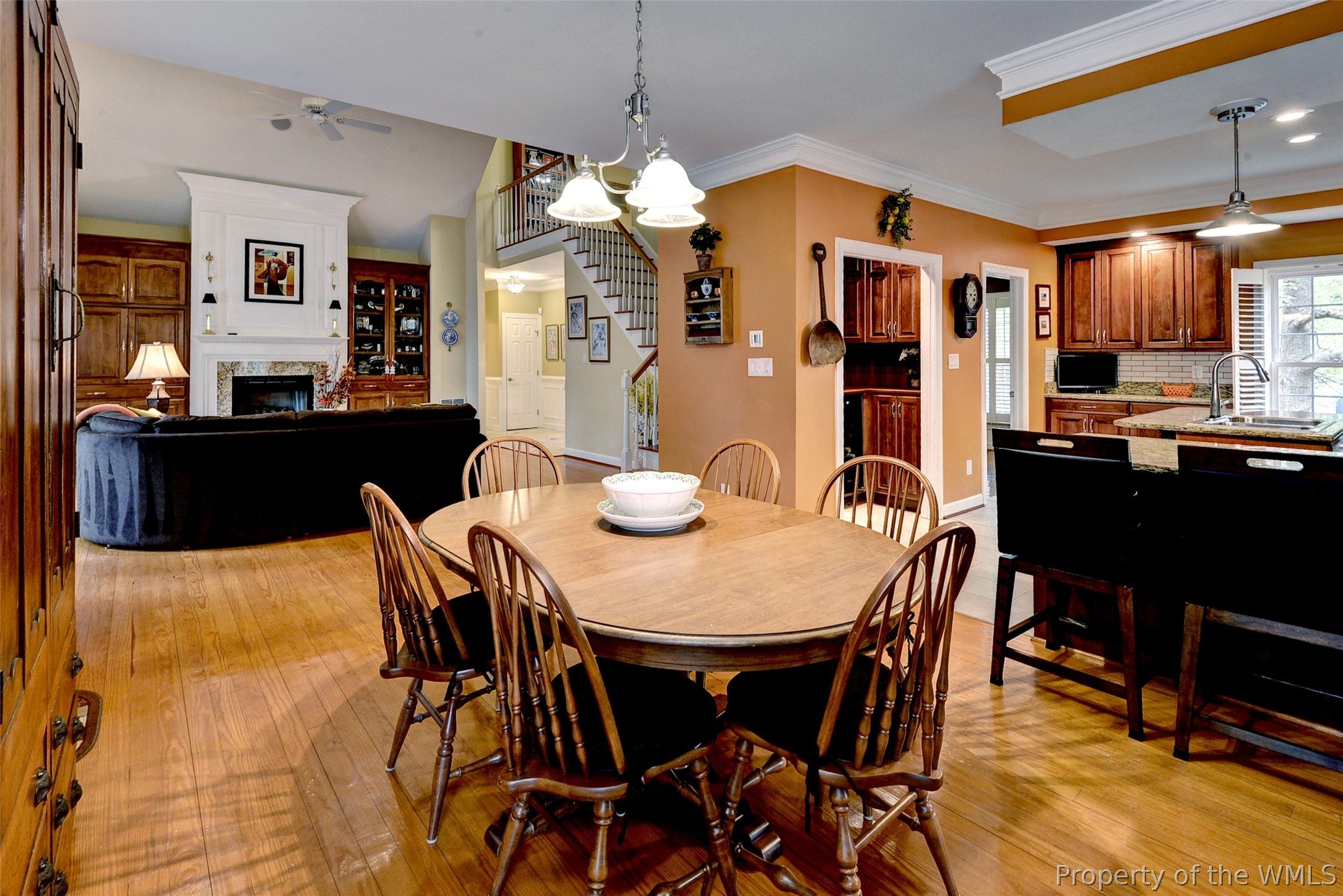 Southern Front porch gatherings! Tranquil garden oasis off the back deck and paver patio. 3 Expansive bedrooms with connecting studies/exercise or craft rooms; Main floor primary suite w dream closets! -spa bath w/double sinks, soaking tub, walk in shower. Access to back deck too. Upstairs 2 additional bedrooms, loft area and media bonus room. Main floor boasts front parlor with fireplace, formal dining room, and spacious family room w built ins and fireplace; Kitchen w center island, separate wet bar & wine refrigerator; opens to a generous ‘keeping room’. 3-season room completes the living spaces. Each of the main floor rooms give access to the outside areas. Lower-Level hosts large laundry room and double oversized garage; an enclosed ‘shed’ storage area under the sunroom for outside ‘toys’. Generous walk in storage in every alcove. New 50 year Roof in ’08; HVAC up 2 yrs main floor 12 years; tankless water heater; water filtration system too. Surround sound system enriches the ambiance and can be controlled by phone. Great location within the Colony for ease access to gates. Exterior offers ramped paths for easy access into the house - no need to traverse the stairs. Low maintenance plantings lets you enjoy where you live and offers seasonal surprises. Dont miss the 'bubbler' out front that sets the stage for peaceful ambience even before you enter this custom home!