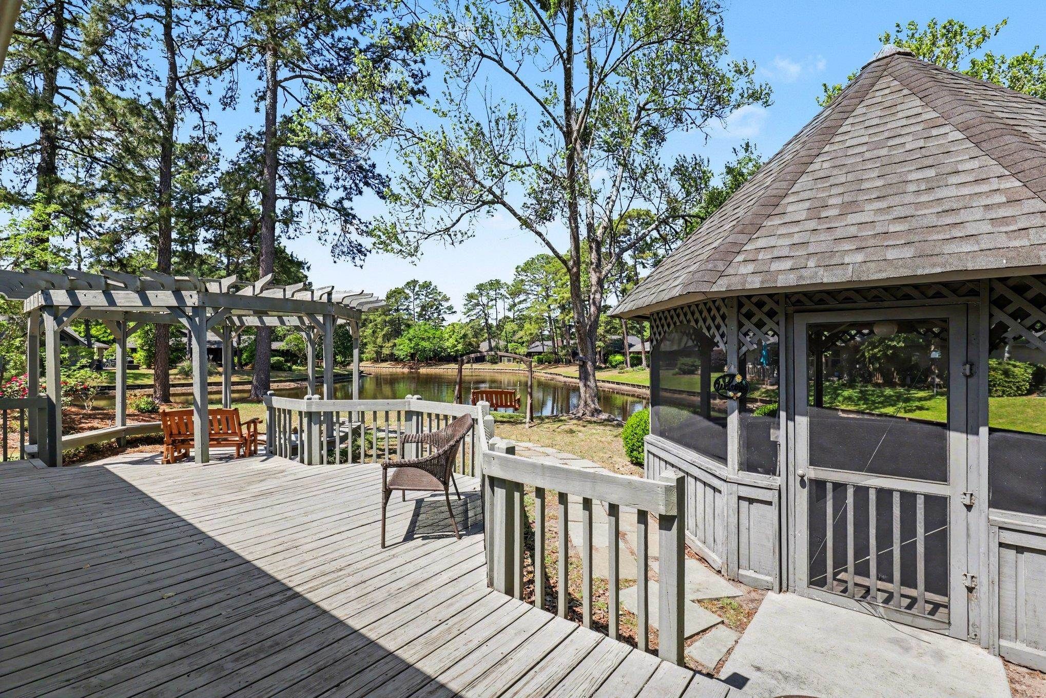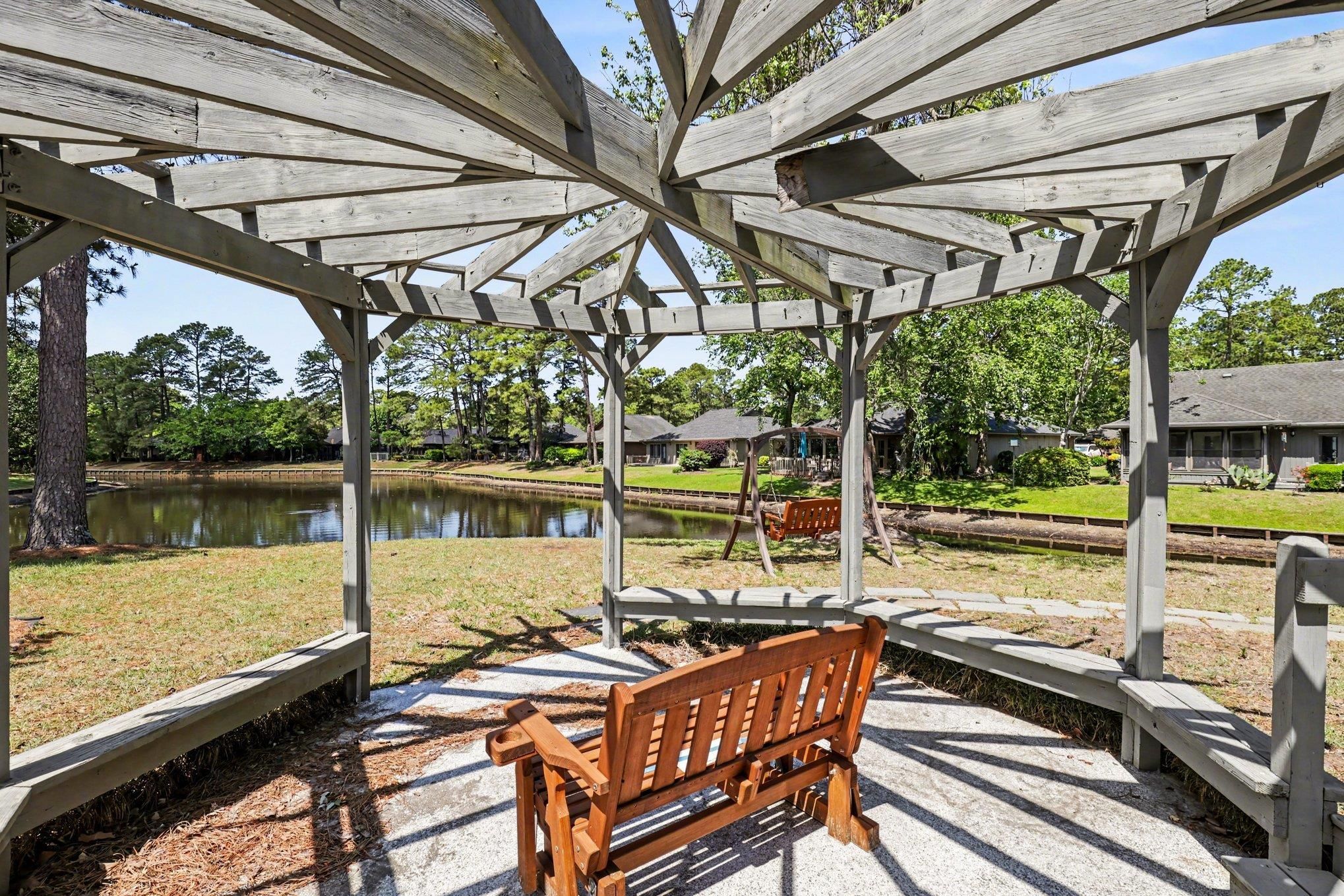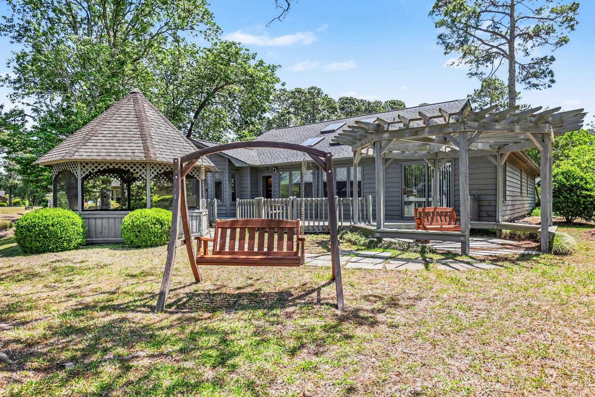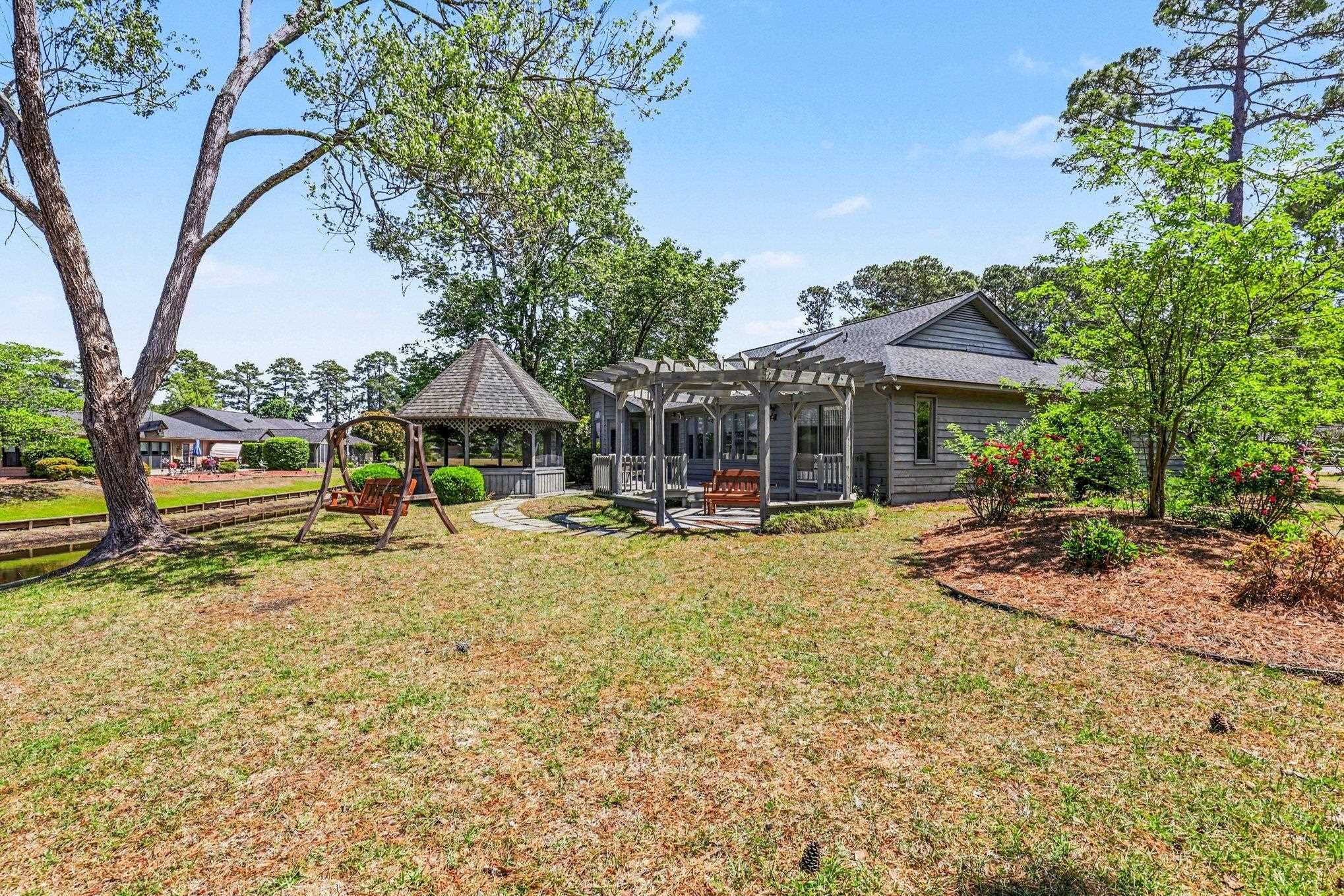 Relax into the lifestyle you've been dreaming of in this beautifully maintained 3-bedroom home, ideally situated in the highly sought-after 55+ community of Myrtle Trace. Tucked away on a quiet cul-de-sac, this property boasts one of the best lake views in the neighborhood. Start your mornings with peaceful water views and unwind in the evenings on your private deck or gazebo complete with electricity, surrounded by mature trees that create a serene, park-like setting. Step inside to a bright, inviting kitchen featuring white cabinetry, convenient pull-out shelves, a lazy Susan, and a sunlit breakfast nook perfect for morning coffee or casual meals. Recent major updates, including a new roof (2025) and HVAC system (2023), provide added peace of mind. The spacious 2-car garage offers ample room for parking and additional storage. Residents of Myrtle Trace enjoy an active and social lifestyle with exceptional amenities, including a clubhouse, saltwater pool, bocce courts, and shuffleboard, along with a full calendar of events, From game nights to holiday celebrations and community gatherings. Ideally located just minutes from golf at Burning Ridge Golf Club, shopping at Tanger Outlets Myrtle Beach, dining, medical facilities, and historic Conway and less than 15 minutes to the beautiful beaches of Myrtle Beach. This home offers both convenience and coastal charm" Some pictures are virtually staged and are labeled as such.