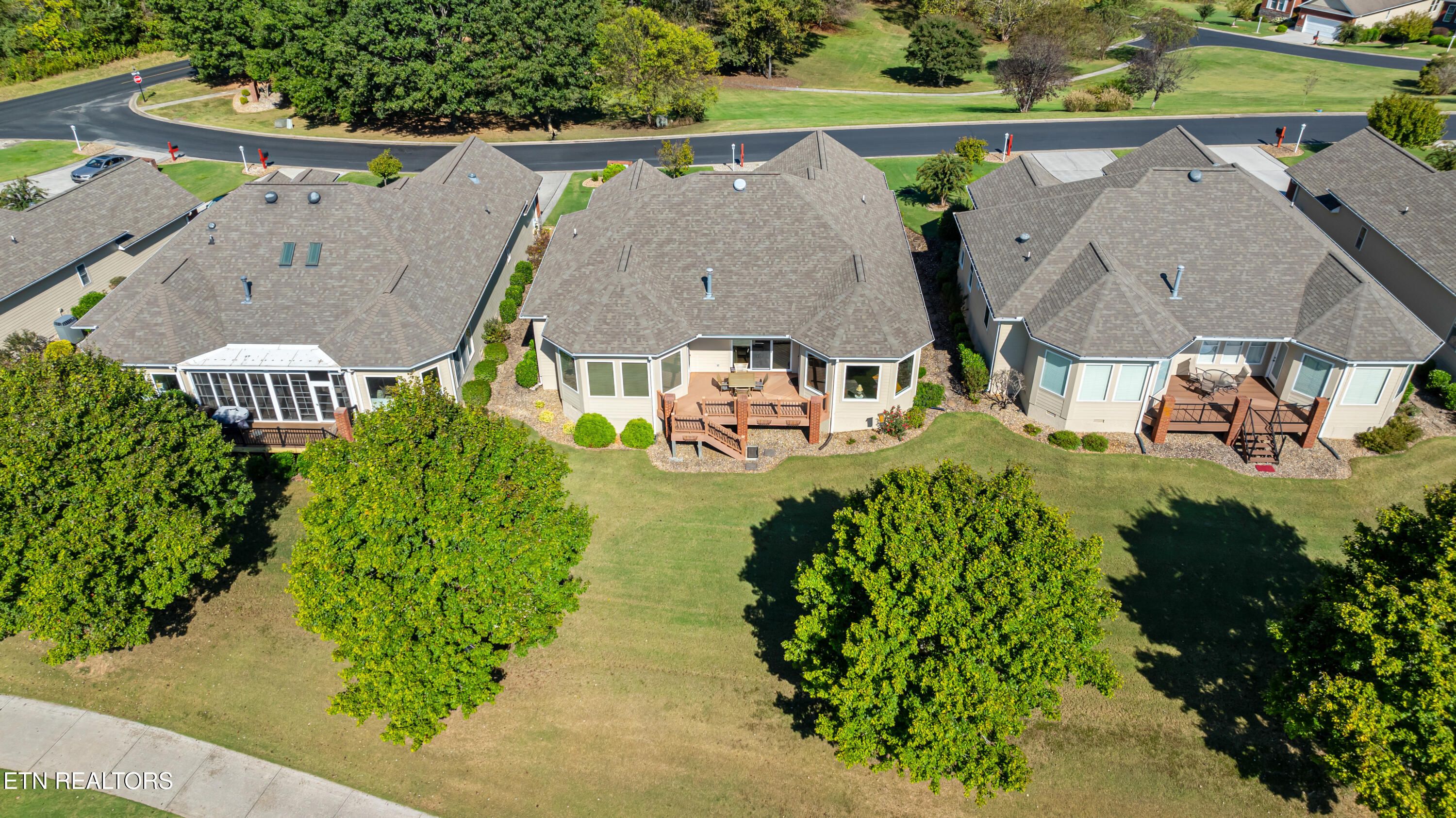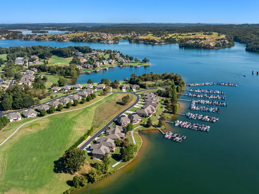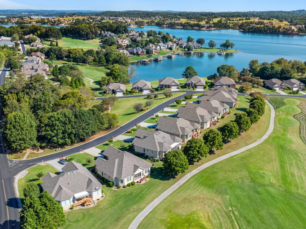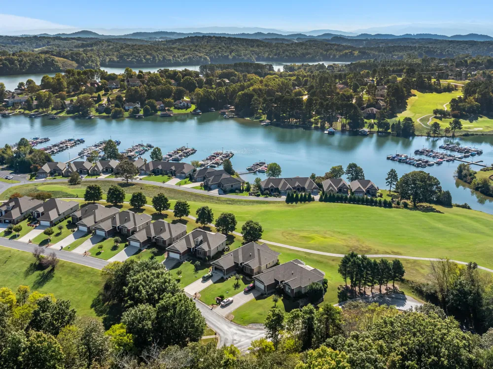 Easy, Low-Maintenance Living with Stunning Lake VIEWS! Townhomes like this in Tanasi Cove seldom come on the market, making this a truly unique find. Perfect for anyone seeking the convenience of all square footage on one level and the beauty of a golf and lake setting, this villa is positioned on the #9 hole of Tanasi Golf Club with panoramic views. Even better, a beautiful park is directly across the street, giving you green space and serenity right at your doorstep. Plus, you're just minutes from town and steps from the highly anticipated Tanasi Bar & Grill. The 3-bedroom, 2-bath layout (2,358 sq ft) is designed for comfort and entertaining. Features include a spacious circular floor plan, oversized kitchen with island, whole-home water softener, hardwired security, newer roof, and HVAC. The private back deck is the ideal spot to soak in the lake and golf views. Living here means more than just a home—it's a lifestyle. Yard care is included, and Tellico Village amenities abound: golf, pickleball, fitness, dog park, wellness center, restaurants, shops, and everyday conveniences all nearby.