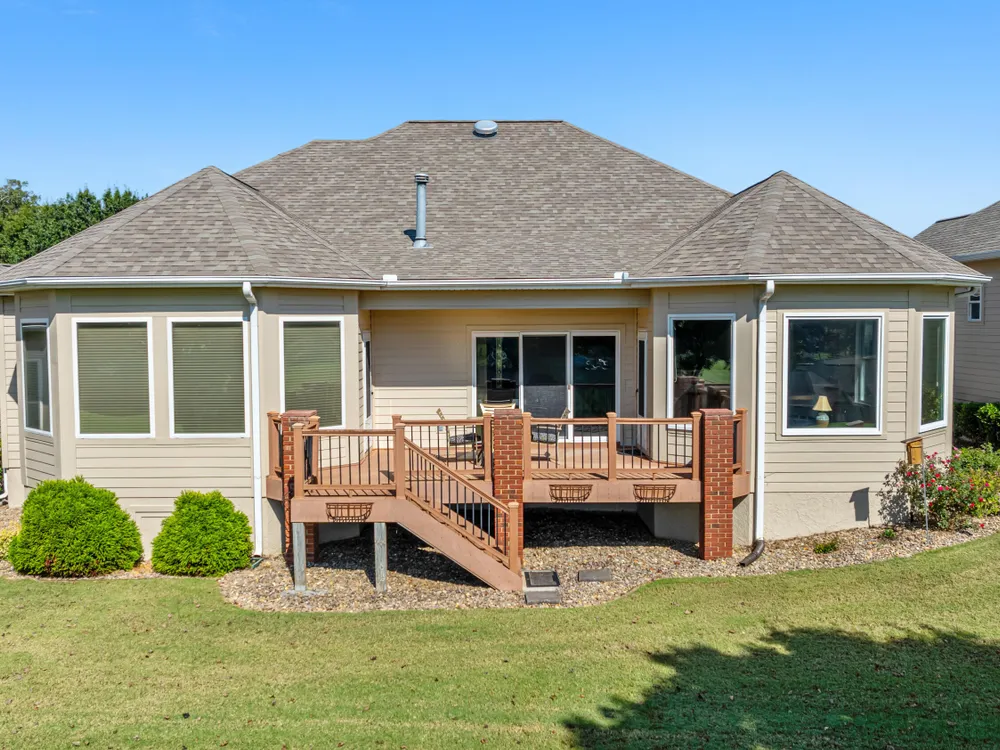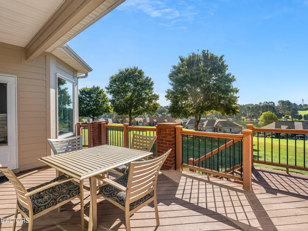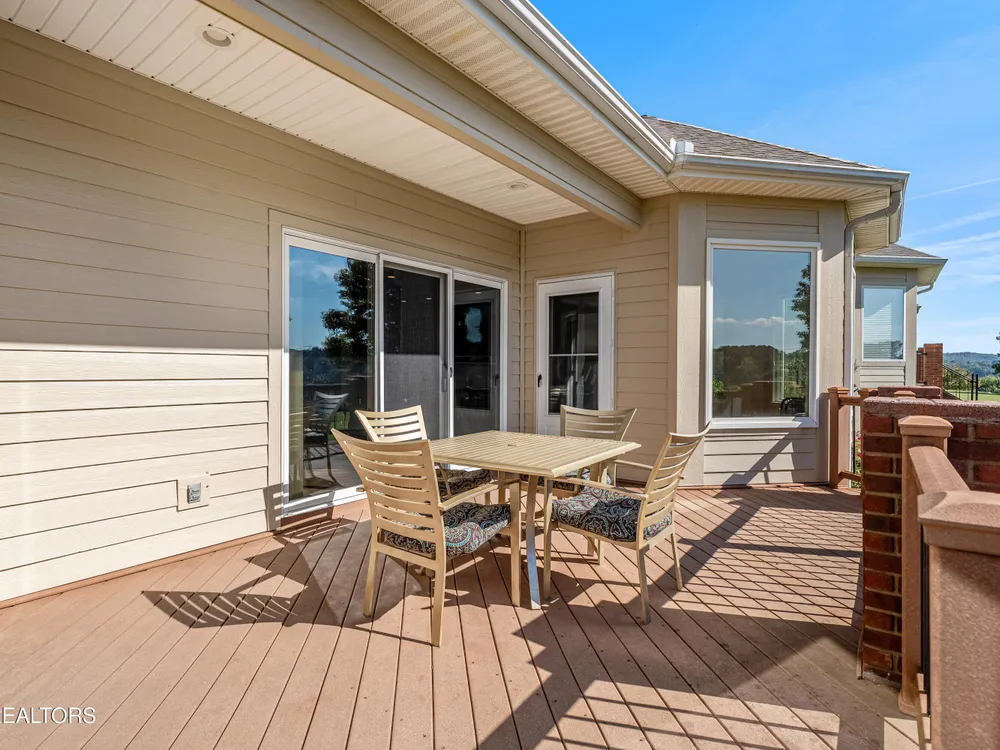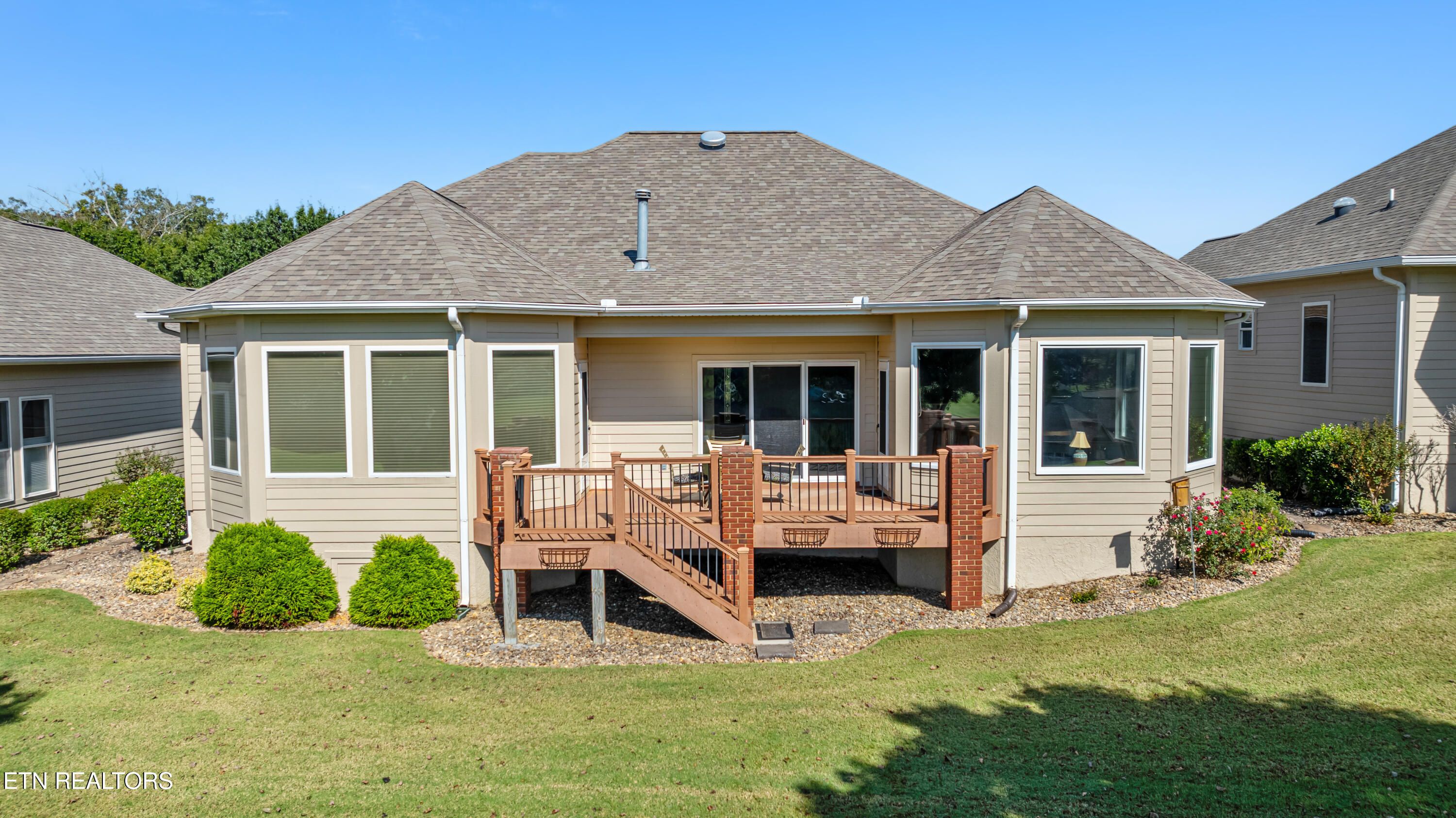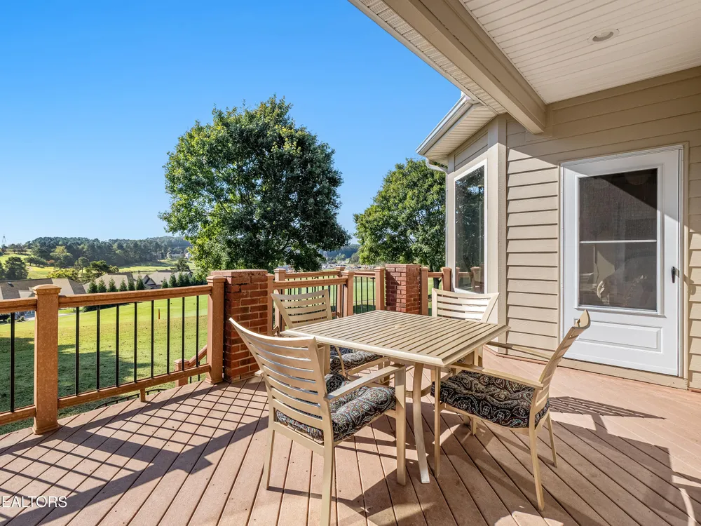 Easy, Low-Maintenance Living with Stunning Lake VIEWS! Townhomes like this in Tanasi Cove seldom come on the market, making this a truly unique find. Perfect for anyone seeking the convenience of all square footage on one level and the beauty of a golf and lake setting, this villa is positioned on the #9 hole of Tanasi Golf Club with panoramic views. Even better, a beautiful park is directly across the street, giving you green space and serenity right at your doorstep. Plus, you're just minutes from town and steps from the highly anticipated Tanasi Bar & Grill. The 3-bedroom, 2-bath layout (2,358 sq ft) is designed for comfort and entertaining. Features include a spacious circular floor plan, oversized kitchen with island, whole-home water softener, hardwired security, newer roof, and HVAC. The private back deck is the ideal spot to soak in the lake and golf views. Living here means more than just a home—it's a lifestyle. Yard care is included, and Tellico Village amenities abound: golf, pickleball, fitness, dog park, wellness center, restaurants, shops, and everyday conveniences all nearby.