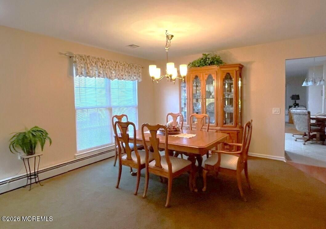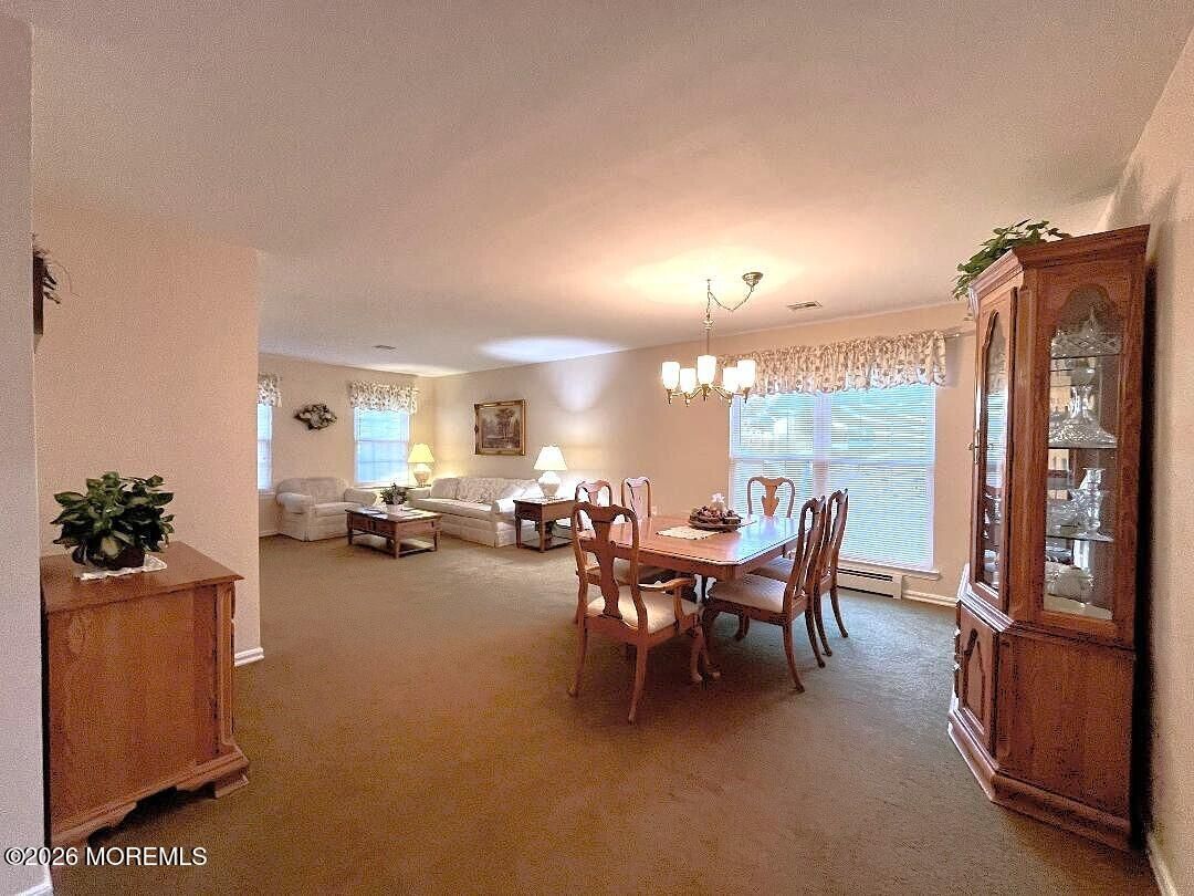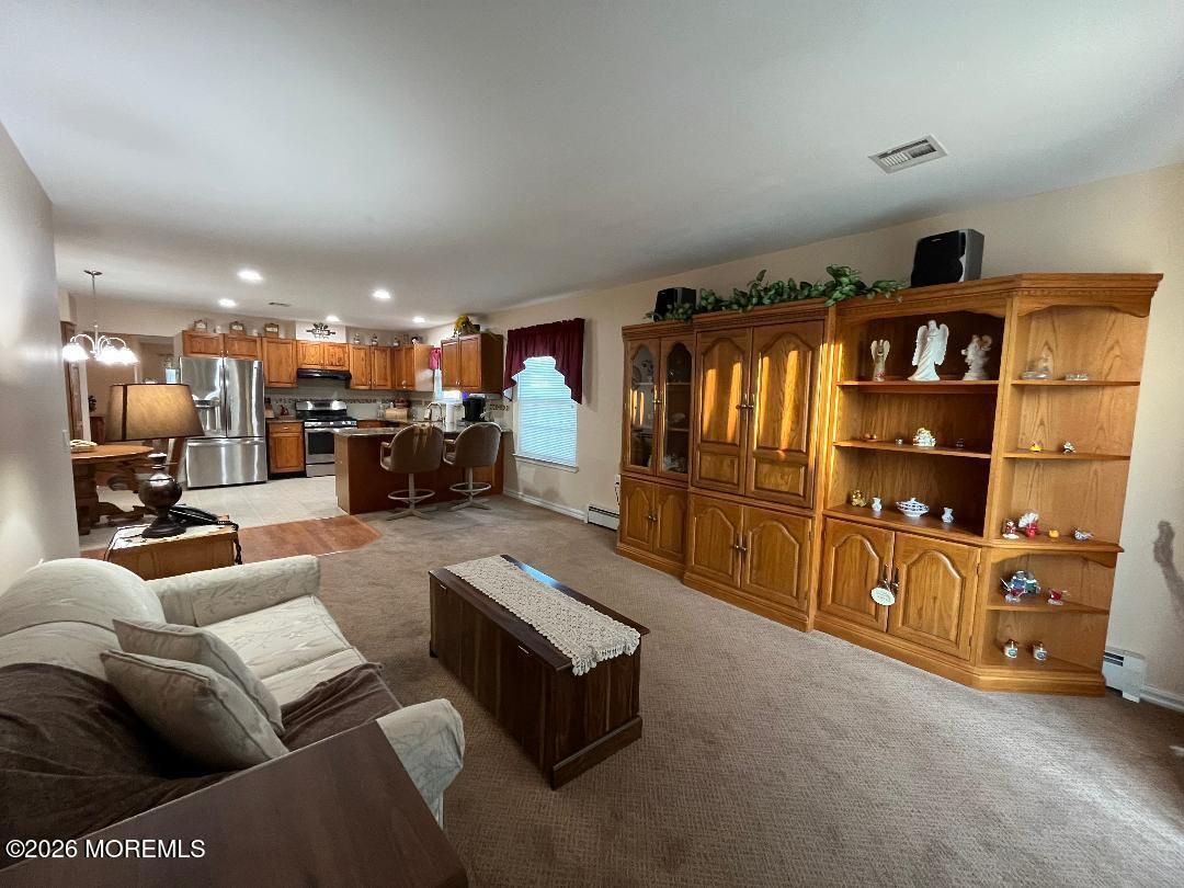 Welcome to this beautifully updated 2BR, 2Bath Adult Community, Lexington model in Holiday City Heights, With open floor plan throughout most of the home, you can enjoy special gatherings as well as being leisurely. Boasting open layout Lg Formal Sitting Room and Formal Dining Rm area, updated Kitchen with Breakfast Bar island as well as Dining area. Just across is the spacious carpeted Family room with sliders to the back fenced in patio & yard. The Primary bedroom has Lg Walk in Closet, Wood Floors & Private Ensuite Full bath with Tiled shower & Linen closet. 2nd carpeted rm can be used as Bedroom, Office, Den, etc. Laundry Rm with Washer & Dryer leads to the 1 Car Garage. There's also a Lg shed for more storage. Call today & be in for Summer !