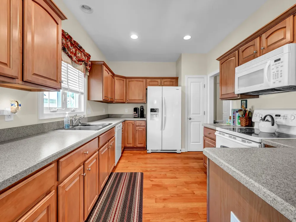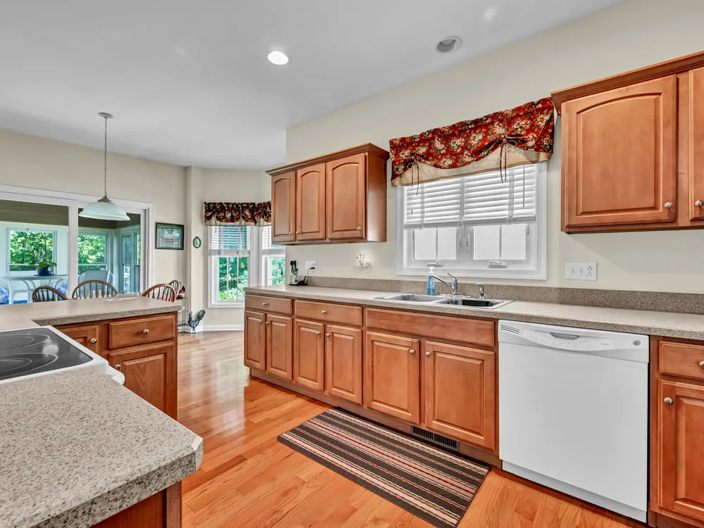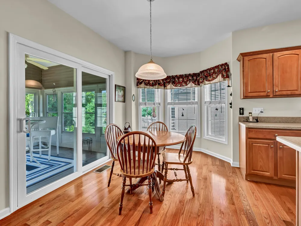 Very well-maintained Franklin model with hardwood floors on main level except bedrooms and baths. This home features two bedrooms and two full baths on the main level, kitchen with breakfast nook, living room with gas fireplace and a full-sized dining room. The walk-out lower-level features a family room and guest room/office with a full bath.