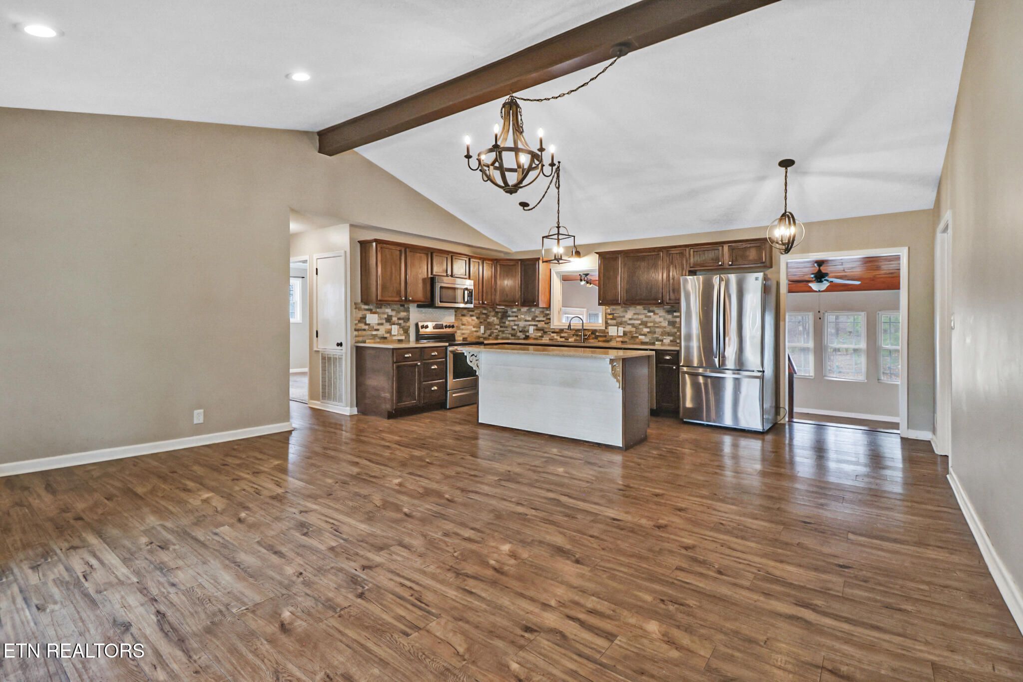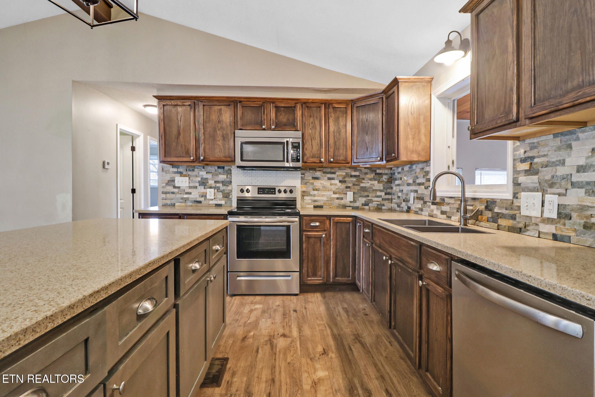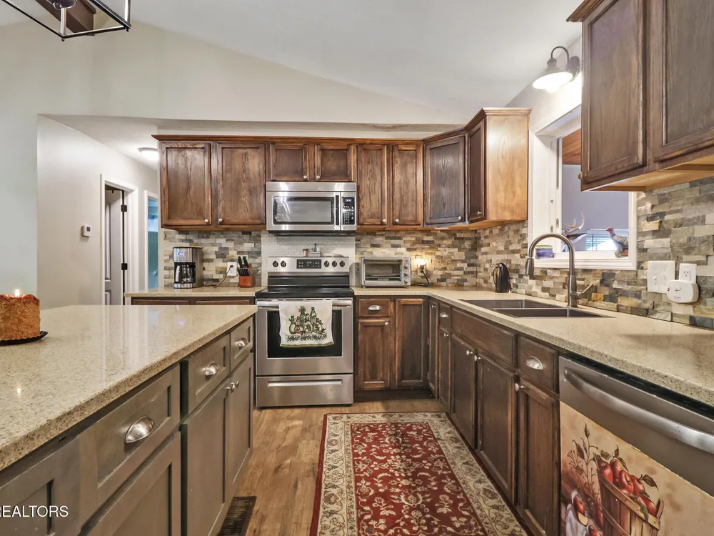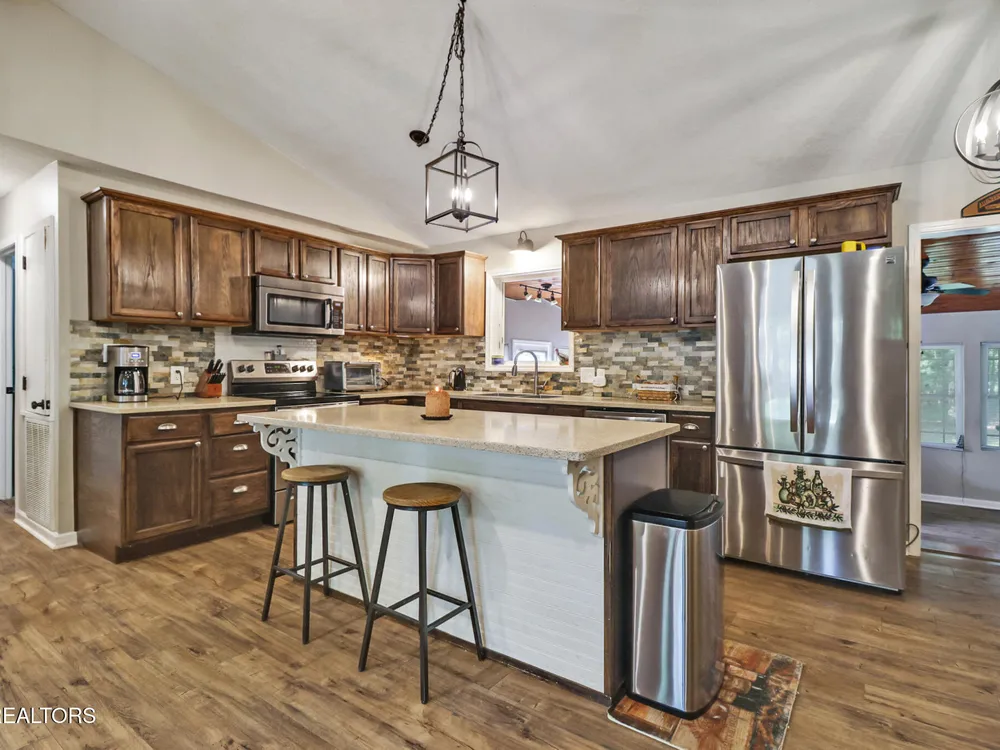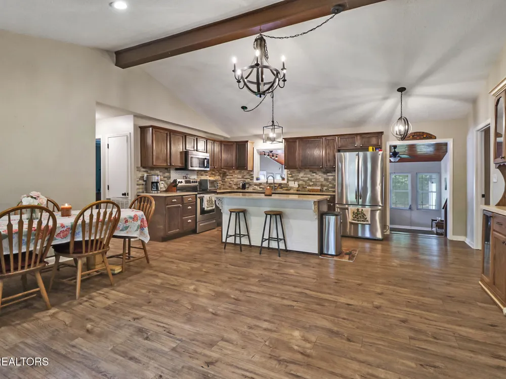 - Cathedral Ceiling(s), Kitchen Island, Breakfast Bar, Eat-in Kitchen
