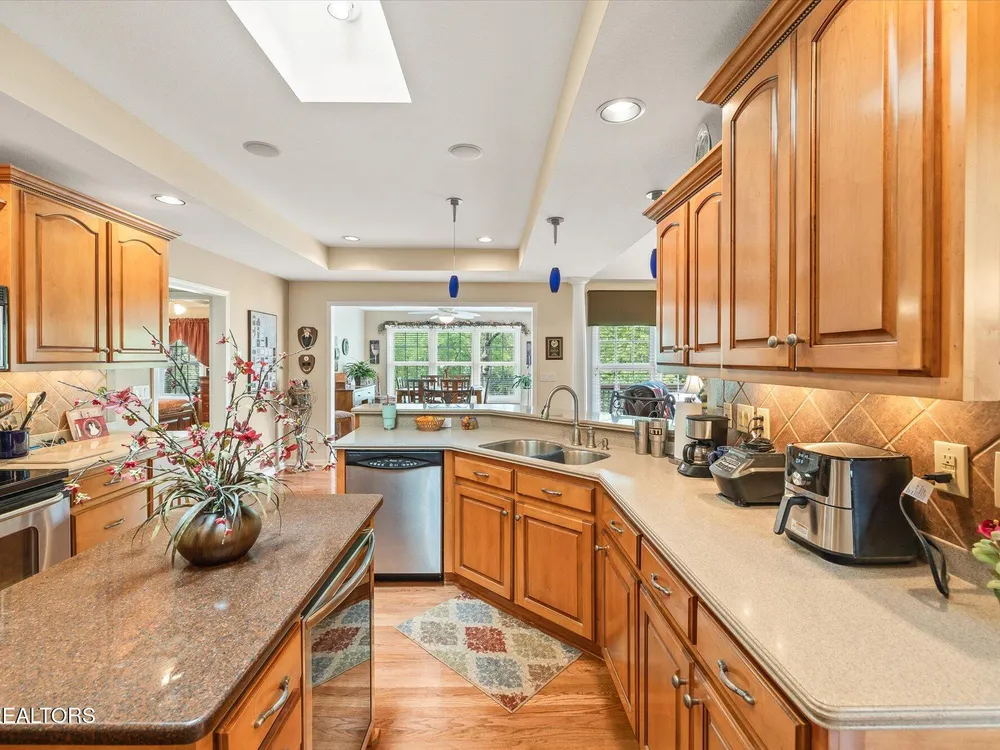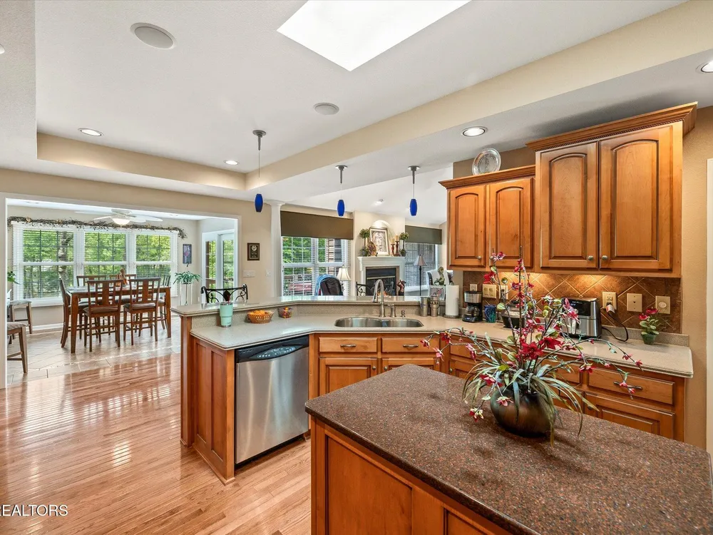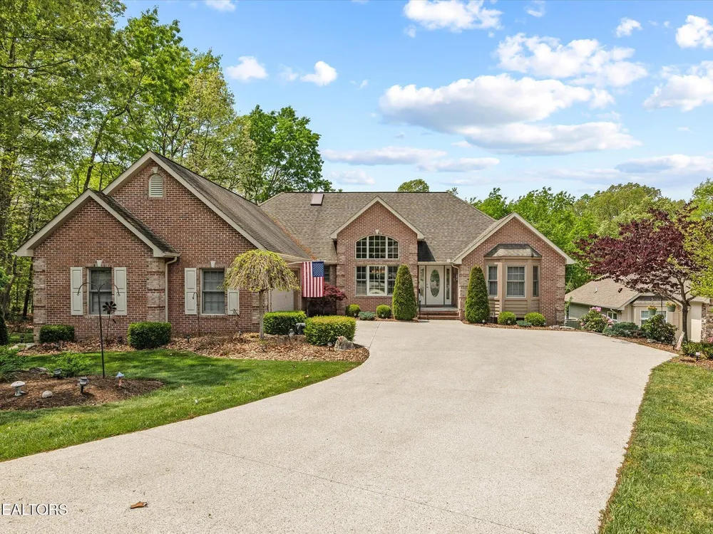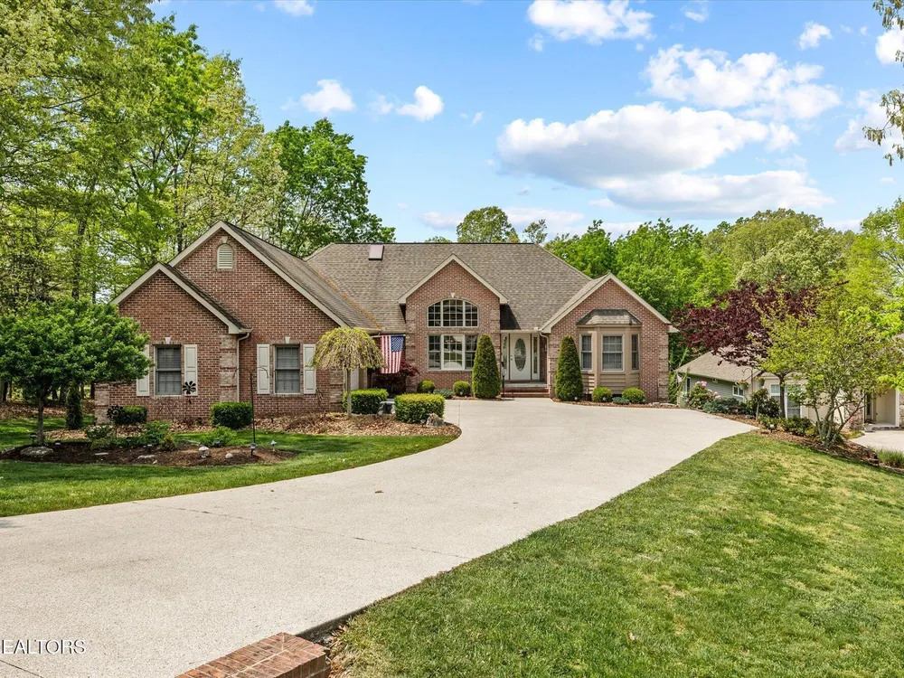 Stunning Custom Home on the Brae Golf Course. NEW ROOF w/50-year Owens Corning manufacturer warranty transferable one time. Beautifully maintained, one-owner brick home offers WOW curb appeal and breathtaking views of the 15th & 16th green. Situated on a professionally landscaped, park-like lot with lush trees and unmatched privacy, this 3-bedroom, 3-bath split bedroom plan is perfect for comfortable living and entertaining. Enjoy a semi-open layout with a spacious great room featuring hardwood floors and a cozy gas fireplace. The chef's kitchen boasts an abundance of storage, stunning cabinetry, solid surface counters, granite island with wine fridge, pantry, and refrigerator replaced in 2024. The inviting sunroom overlooks the green—ideal for golf lovers. Relax in the oversized primary suite with a custom walk-in closet, walk-in tile shower, and heated bathroom floors. Each guest bedroom includes its own private bath and generous closet space. An oversized garage, walk-in crawl space with concrete workshop area allowing for amble storage space, and recent epoxy on the driveway/garage add function and value. Energy-efficient HVAC (2015). Just minutes from Lake Dartmoor Marina, beach, and Heatherhurst Clubhouse—this home has it all!