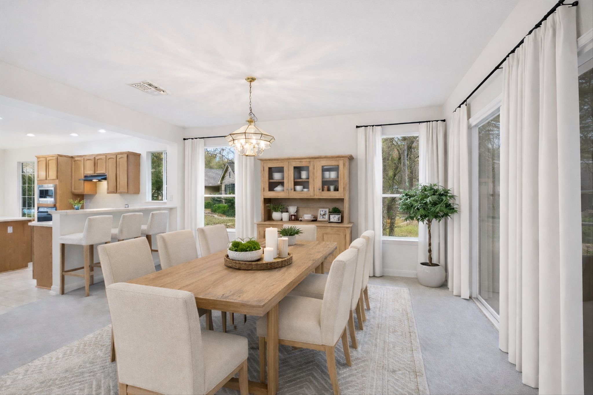 - Breakfast Bar, Ceiling Fan(s), Separate/Formal Dining Room, Double Vanity, Entrance Foyer, High Ceilings, Kitchen Island, Multiple Dining Areas, Main Level Primary, Open Floorplan, Pantry, Recessed Lighting, Walk-In Closet(s)