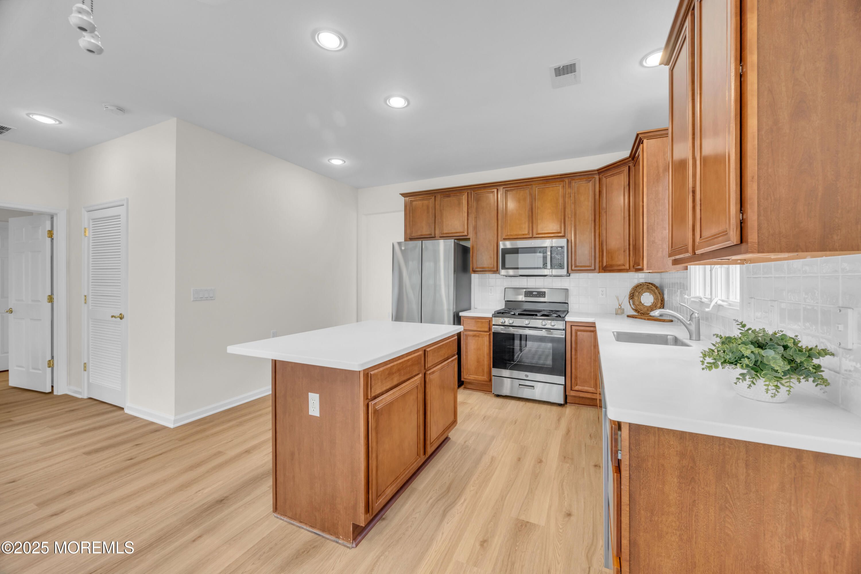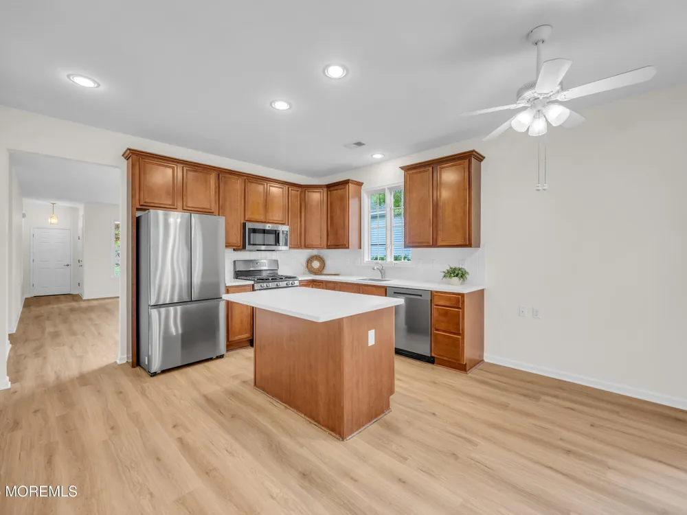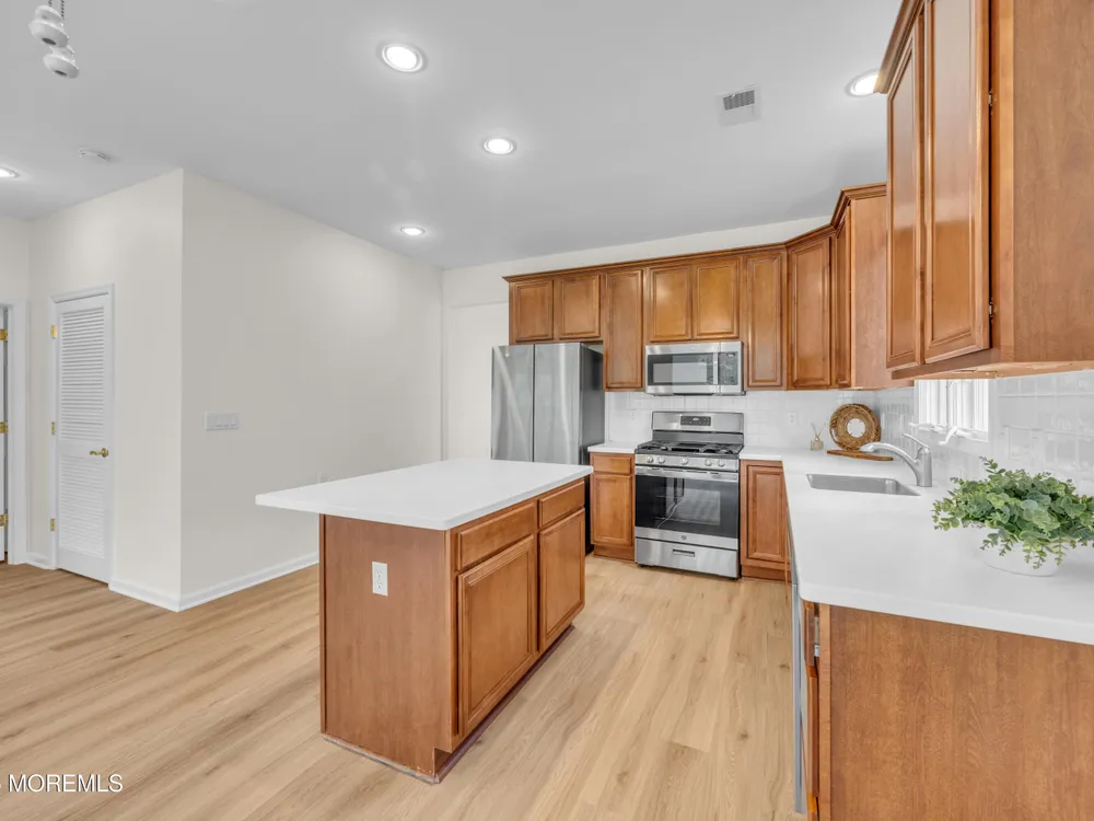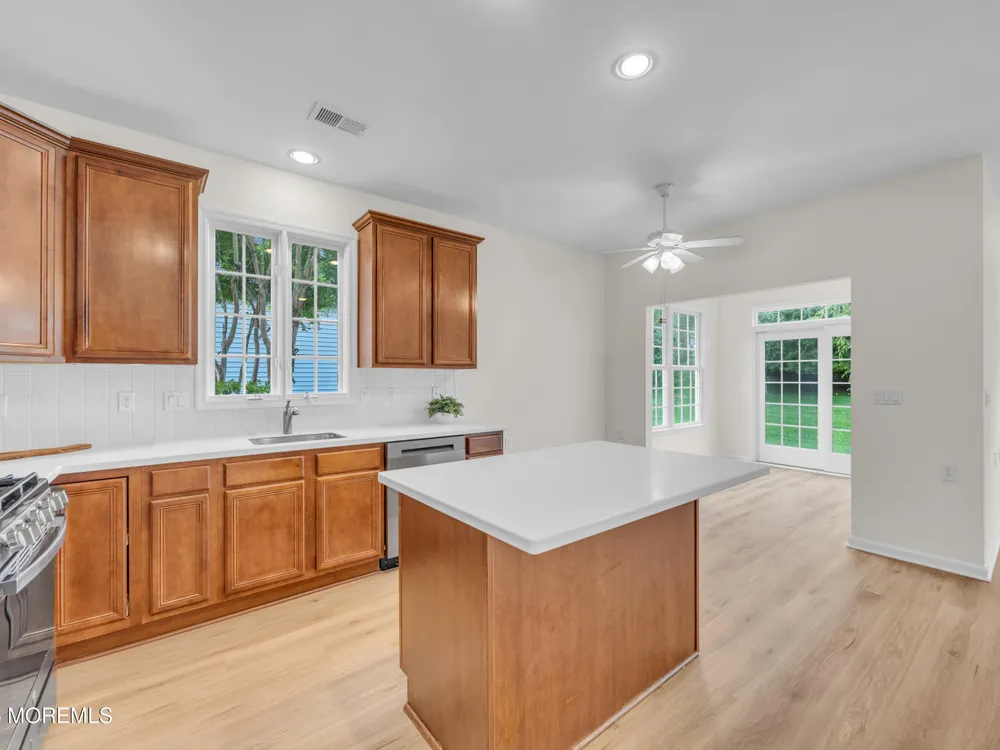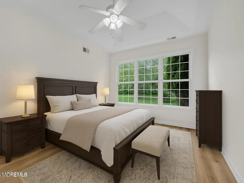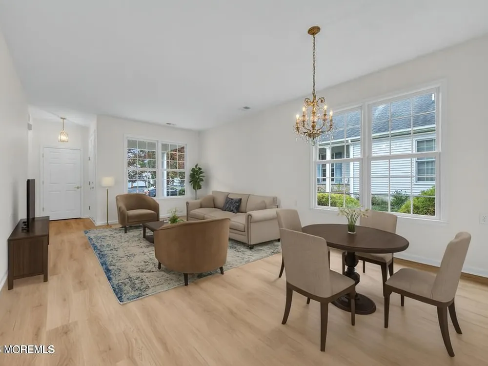 Welcome home to the highly sought after Rolling Meadows 55+ Community! This stunning Extended Azalea model features a 2-bedroom, 2 bath ranch with 9-ft ceilings and offers an inviting open layout for ease of entertaining. The kitchen features brand new appliances & a center island, Corian counters, & under-the-cabinet lighting. Brand New LVP flooring & freshly painted throughout truly makes this home move-in ready! The main bedroom features a tray ceiling, a walk-in closet, and a private en-suite bath. Sliders from the sunroom lead to a patio nestled on a lovely lot offering privacy for the morning or after a day at the pool! Enjoy the newly updated clubhouse, pool, fitness center, tennis, pickleball & more! Located a short drive to the beaches of the Jersey Shore! Come and see....