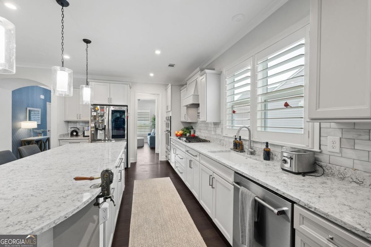 Welcome to this stunning Martin Ray model in the highly sought-after Del Webb Lake Oconee community! Built in 2020, this 3-bedroom, 2-bath home with a dedicated office offers both elegance and functionality. The open-concept kitchen is a chef's dream with a large island, gas range, stainless steel appliances, butler's pantry, and a spacious walk-in pantry. Entertaining is effortless with the seamless flow into the living and dining areas, plus a sunroom and a screened-in porch for year-round enjoyment. Designed by a local interior designer, the home is filled with high-end custom touches including designer wallpaper, upgraded lighting, and engineered hardwood flooring. The fully fenced backyard provides privacy and the perfect outdoor retreat. This home combines modern comfort with timeless style in one of the area's most vibrant active-adult communities, offering resort-style amenities and a welcoming neighborhood atmosphere.