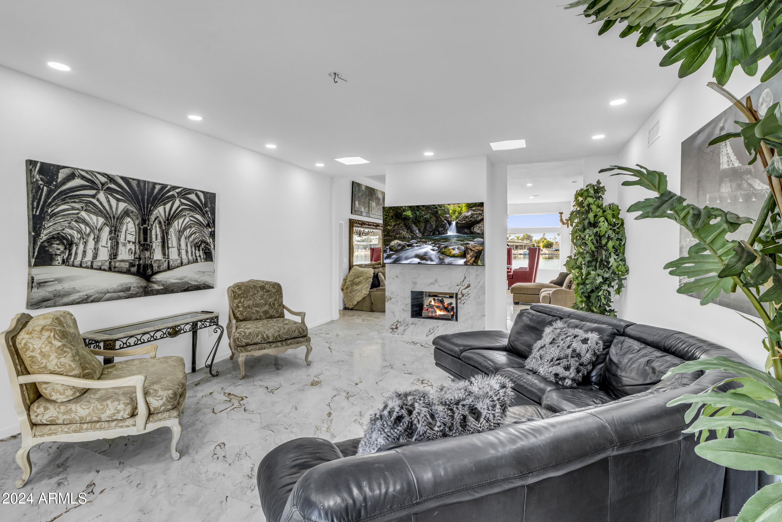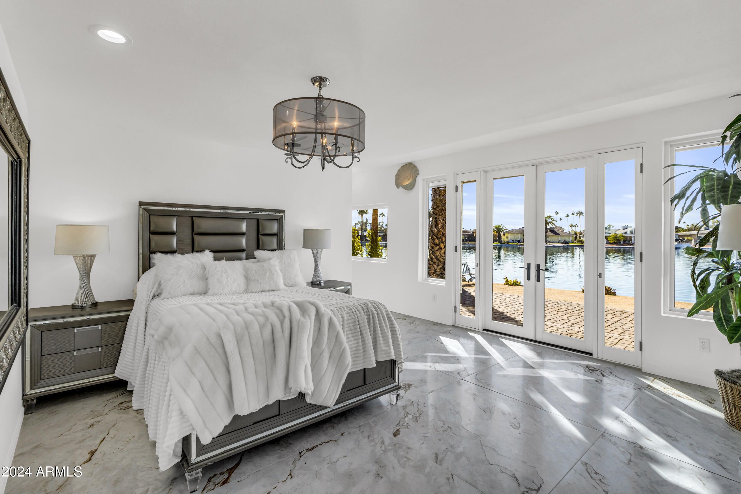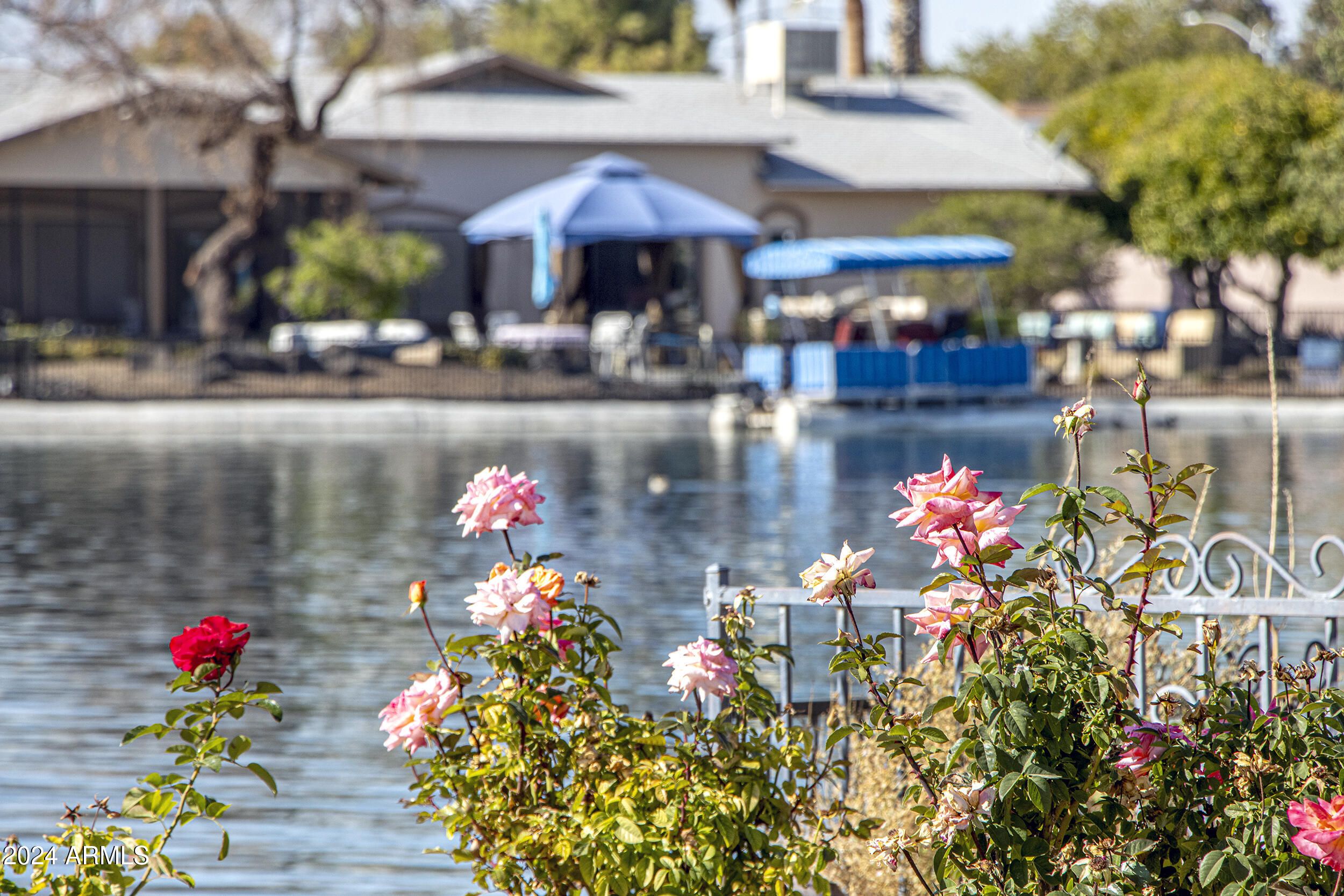 This beautifully remodeled lakefront home in 55+ community offers breathtaking views and a host of upgrades. It features a spacious Great Room with 9-foot ceilings and expansive windows framing the serene lake. The eat-in kitchen also enjoys lake views, as well as the private backyard with low-maintenance desert landscaping. The home includes a formal dining room and a versatile room, ideal for use as an office or third bedroom. Both master suites provide comfort and privacy, and the property also boasts a boat dock, along with a brick paver driveway and walkway. This home is an exceptional blend of style and function.