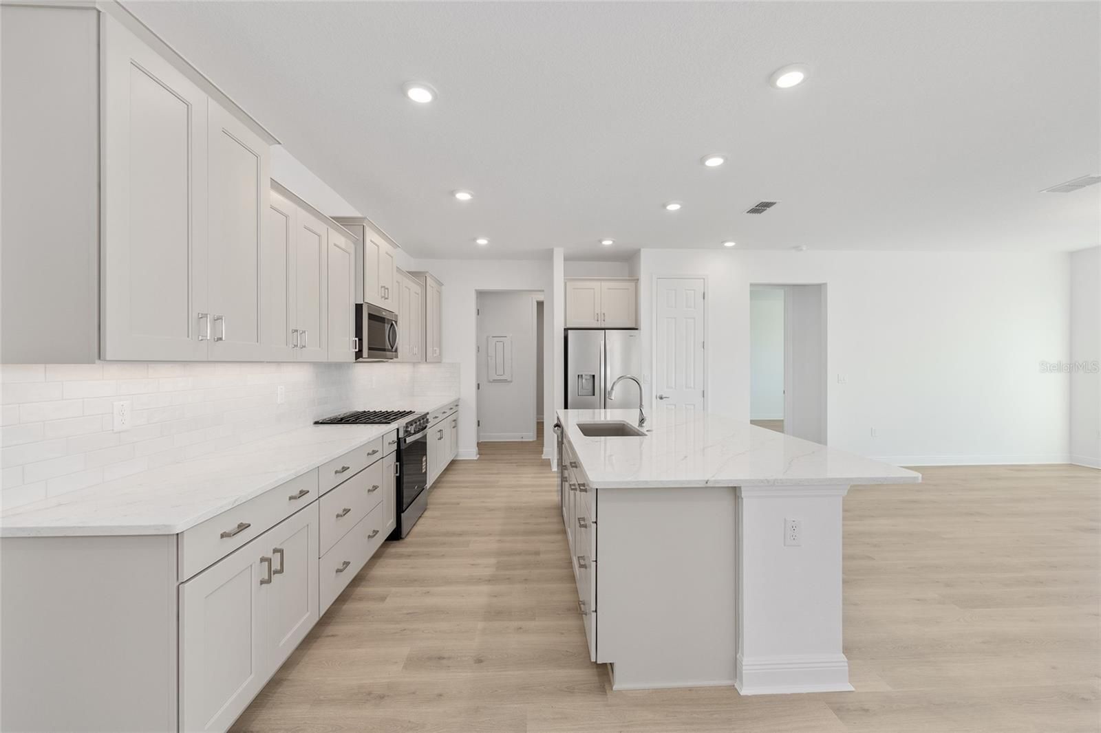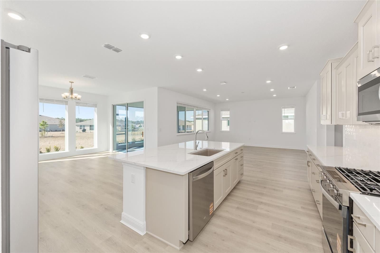 Welcome to the beautifully crafted Beatrix model, a new construction home designed for effortless Florida living. This thoughtfully planned residence features 2 bedrooms, 2 baths, and a 2-car garage with dedicated golf cart space, offering both comfort and functionality. The open living area is enhanced by luxury vinyl flooring, recessed lighting, and a seamless flow between the living room and kitchen—perfect for everyday living and entertaining. The chef-inspired kitchen showcases an oversized quartz island, sleek cabinetry, subway tile backsplash, and stainless-steel appliances, all overlooking the main living space. A versatile flex room provides endless possibilities for a home office, hobby room, or guest space, while the laundry suite adds convenience with ample storage and workspace. The primary suite offers a peaceful retreat with a spacious layout and well-appointed en-suite bath. Located within the desirable Longleaf Ridge community at On Top of the World, this home combines modern finishes, smart design, and quality craftsmanship in a vibrant setting.