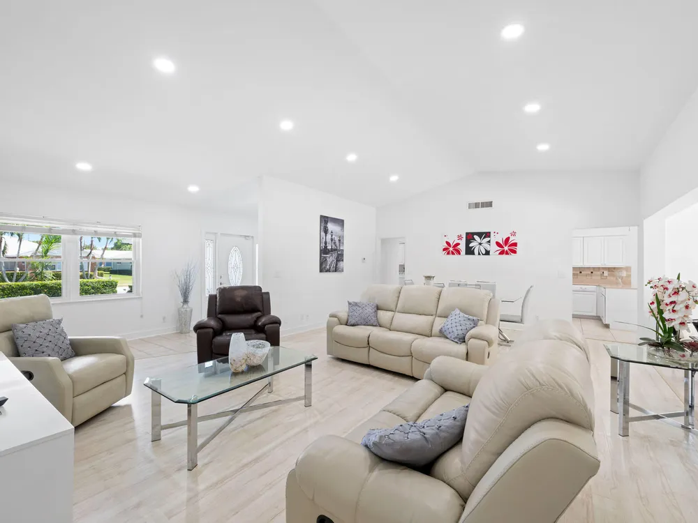 Spacious 3 bedroom, 2 bathroom home with a 2 car garage located in Pine Tree Village, a 55+ community in Boynton Beach.