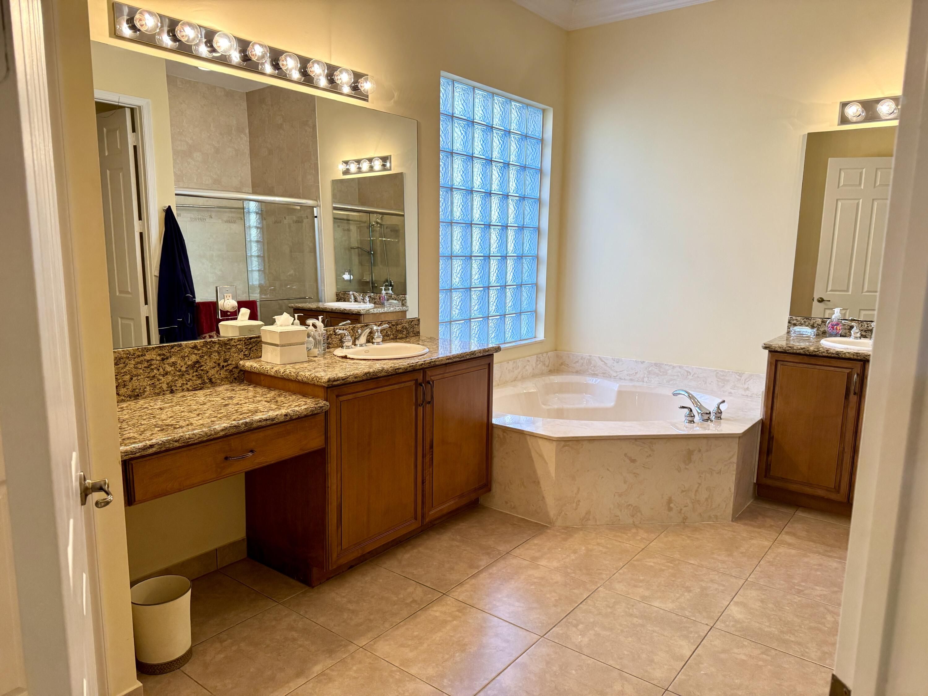 - Entry Level Living Area, Kitchen Island, Pantry, Garden Tub/Roman Tub, Split Bedrooms, High Ceilings, Walk-In Closet(s), Family Room, Eat-in Kitchen, Separate/Formal Dining Room, Snack Bar, Drapes, Dual Sinks, Primary Downstairs, Separate Shower, Bathtub, Intercom