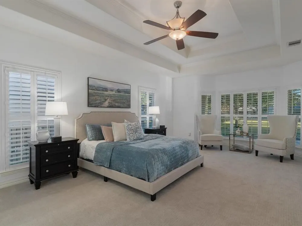 Exceptional, 2-bedroom Marbella floorplan with a dedicated office-media room, on an oversized lot, with added privacy, and an extended golf cart garage. Inside, you’ll find a roomy, light-filled formal living room, gas fireplace, and adjacent dining-flex space, framed by elegant arches, with plenty of room for game night, entertaining, or a relaxing evening in. The open kitchen and den feature huge windows overlooking the private backyard, with a large center island, all NEW SS appliances - refrigerator, dishwasher, microwave oven combo, & electric cooktop, custom cabinets, pull-out drawers, recently replaced hardware and faucet, and built-in desk. A sunny, inviting breakfast area is perfect for casual meals with a large picture window all its own. Step outside to a backyard oasis and large covered patio, perfect for sipping your morning coffee or evenings under the stars. The tranquil primary suite with double-tray ceiling and sitting area has more pretty views of the backyard, custom wood shutters, an ensuite bath, double sinks, soaking tub, separate shower & big walk-in closet. A private guest bedroom is just down the hall with a large full bath nearby. A valuable bonus, the extended garage has space for two cars + a golf cart alongside a built-in workbench and cabinets. Extra insulation was added in the attic plus insulated garage doors for lower utility bills. The laundry room includes a sink, upper cabinets, long counter, and room for an extra fridge. Robson Ranch offers an unparalleled lifestyle for active 55+ adults in a vibrant community offering a wealth of amenities, a 27-hole golf course, clubhouse, fitness facilities, pickleball, tennis, bocce ball, lagoon pool + indoor pool, & many social clubs. Nearby dining & shopping and new grocery store options, along with the beautiful surroundings, make Robson Ranch truly unique. Don’t miss your chance to make this beautiful home yours today!