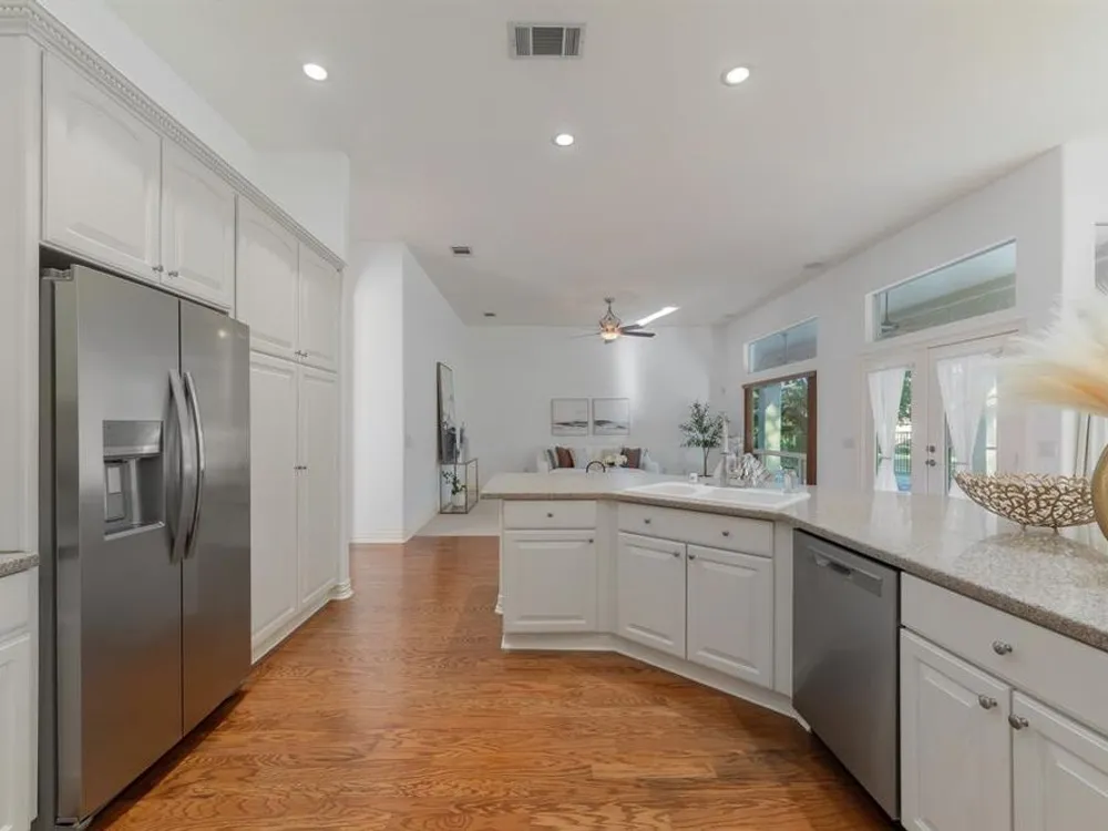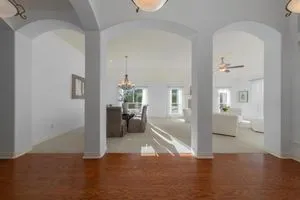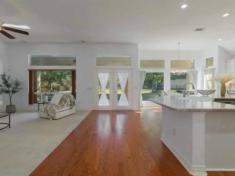 - Built-in Features, Chandelier, Decorative/Designer Lighting Fixtures, Double Vanity, Eat-in Kitchen, Kitchen Island, Open Floorplan, Wired for Sound, Vaulted Ceiling(s), Walk-In Closet(s)