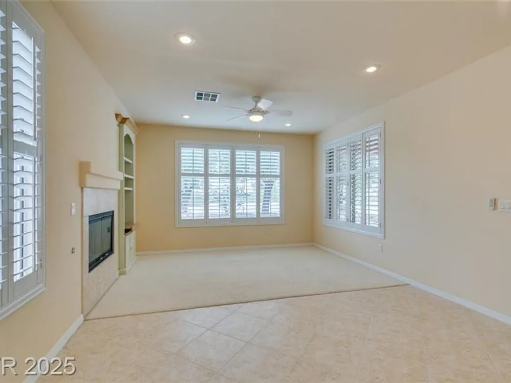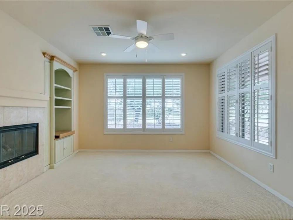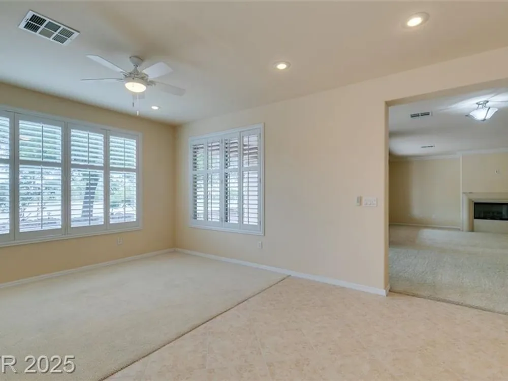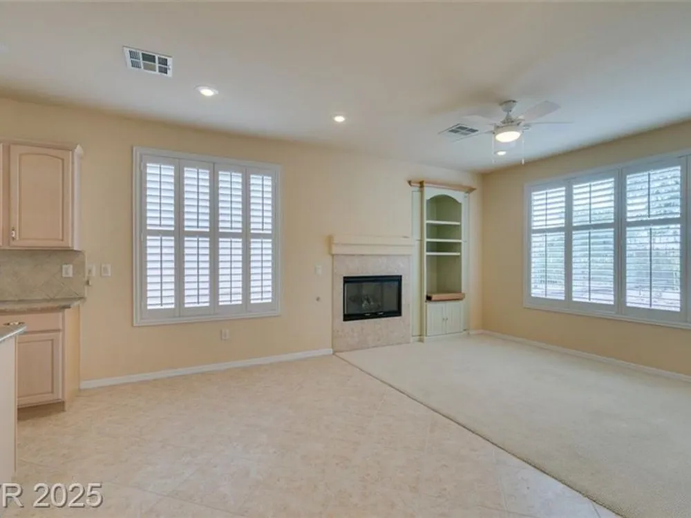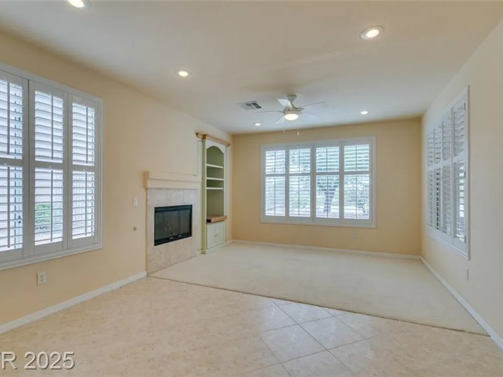 MUST SEE! Located in the highly desirable GUARD-GATED community of SIENA, this SINGLE-STORY 2,162 SF home sits on a PREMIER LOT w/ GOLF COURSE & MOUNTAIN VIEWS! Perfectly oriented, the backyard enjoys WONDERFUL AFTERNOON SHADE & features a COVERED PATIO, MATURE TREES, TIKI TORCHES, & LANDSCAPE LIGHTING, all overlooking the course. The home offers 2 FULL BEDROOMS + a SPACIOUS DEN & 2 BATHS, enhanced by 2 FIREPLACES, CROWN MOULDING, & SHUTTERS throughout. A full 2-CAR GARAGE, + a 3rd GOLF CART GARAGE provides exceptional space. Both AC UNITS replaced in 2023 w/ AMAZING TRANE SYSTEMS, still under WARRANTY + a BRAND NEW 2025 WATER HEATER. The KITCHEN boasts GRANITE COUNTERS, MAPLE CABINETRY, & STAINLESS STEEL APPLIANCES. Its PRIME LOCATION is just a short WALK to the 38,000 SF CLUBHOUSE featuring WORLD-CLASS AMENITIES such as INDOOR & OUTDOOR POOLS, a full FITNESS CENTER, TENNIS & PICKLEBALL COURTS…and more. Home is ready for all your PERSONAL TOUCHES & UPGRADES - SCHEDULE A SHOWING TODAY!