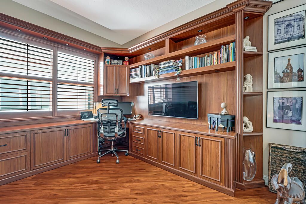 - Built-in Shelving, Closet Cabinetry, Entrance Foyer, Kitchen Island, Pantry, Pull Down Attic Stairs, Garden Tub/Roman Tub, Split Bedrooms, High Ceilings, Walk-In Closet(s), Attic, Home Office, Family Room, Great Room, Breakfast Area, Kitchen/Dining Combo, Eat-in Kitchen, Separate/Formal Dining Room, Snack Bar, Bay Window, Blinds, Drapes, Sliding Window(s), Window Vertical(s), Dual Sinks, Sitting Area In Primary Bedroom, Separate Shower, Bathtub, Storm Shutters