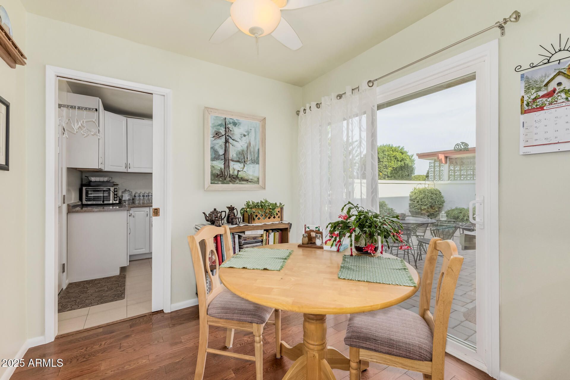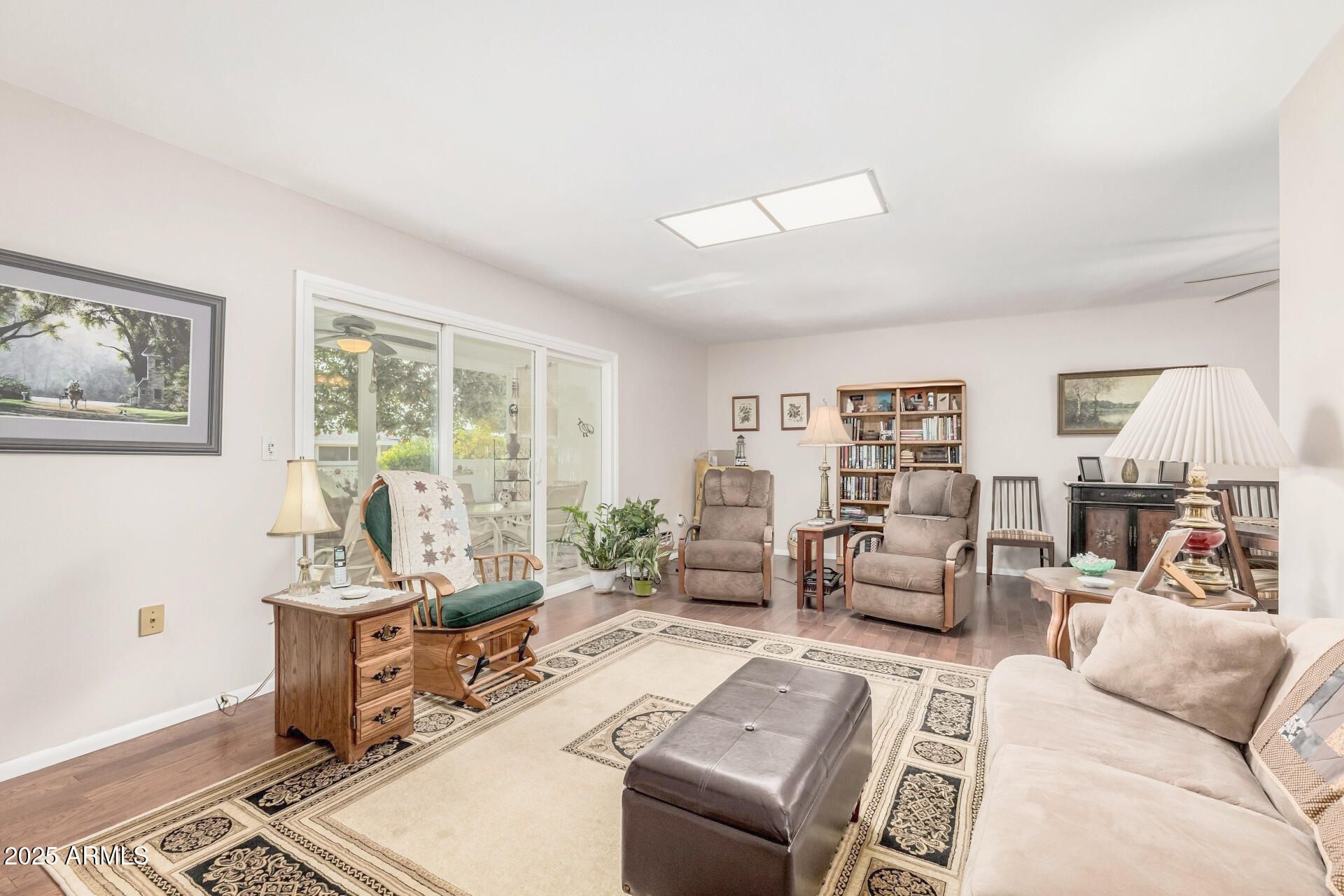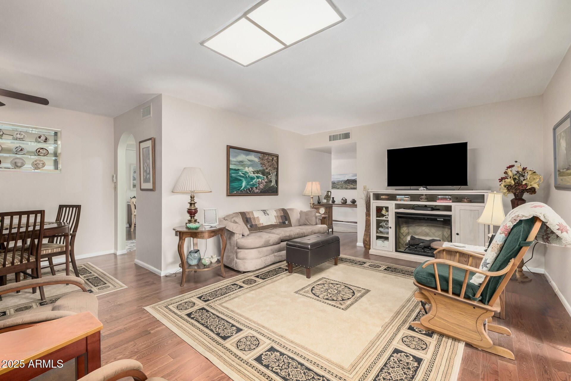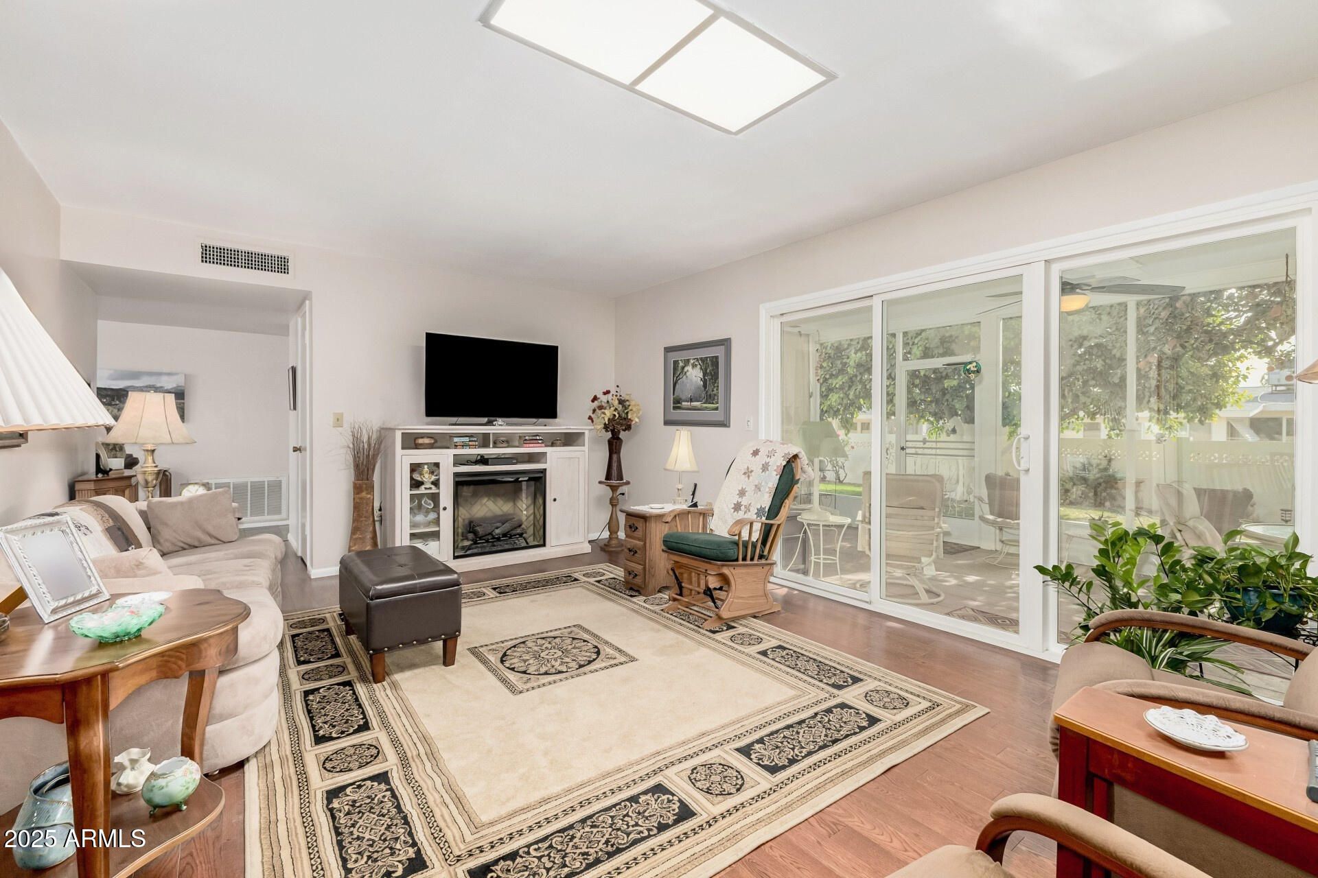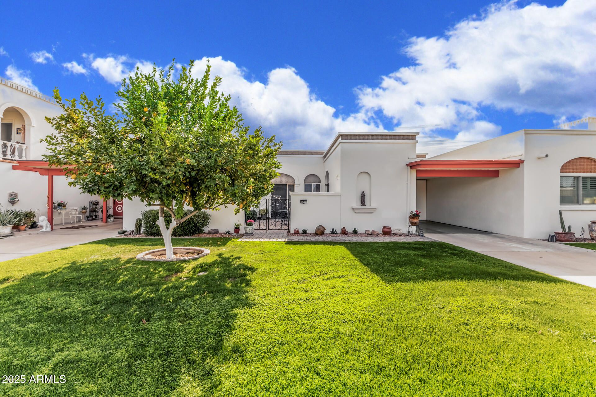 Enjoy the best of Sun City living in the highly sought-after Villa Del Sol community! This beautifully updated 2-bedroom, 2-bath townhome offers approximately 1,409 sq. ft. of thoughtfully designed living space, ideal for an active yet relaxed lifestyle. This well-maintained home features over $65,000 in documented improvements!! Enhancements include remodeled kitchen, engineered hardwood flooring, custom tile, Corian countertops, refaced cabinetry, and upgraded appliances. Additional upgrades include a 2023 water heater with recirculation pump, replaced main sewer line house to street (2025), updated windows, remodeled primary bathroom w walk in shower, updated guest bath, screened AZ room, cobblestone courtyard and upgraded closet design. Outdoor living is enhanced by a large screened-in patio and custom cobblestone generous courtyard with private gate. The inviting eat-in kitchen, extra dining space and spacious living room provide comfortable spaces for both everyday living and entertaining guests. A dedicated laundry room with full size washer/dryer adds convenience, while the generous living room with glass doors opens to a private, peaceful backyard patio perfect for morning coffee or unwinding in the evenings. Bright, airy, and truly move-in ready, this home offers low-maintenance living with easy access to community amenities, recreation, shopping, and dining. Walk to the Sun Bowl for evening concerts! This home is ideal for those seeking a peaceful seasonal escape with close proximity to recreation, golf, shopping, and dining. A rare opportunity for carefree Arizona living.