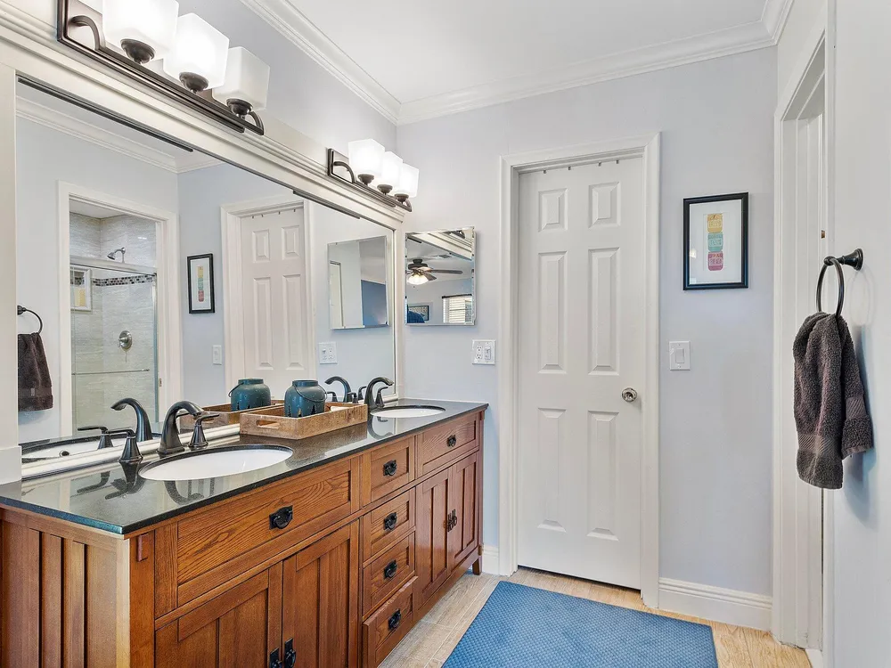 - Built-in Shelving, Living/Dining Room, Impact Glass, Dual Sinks, Separate Shower