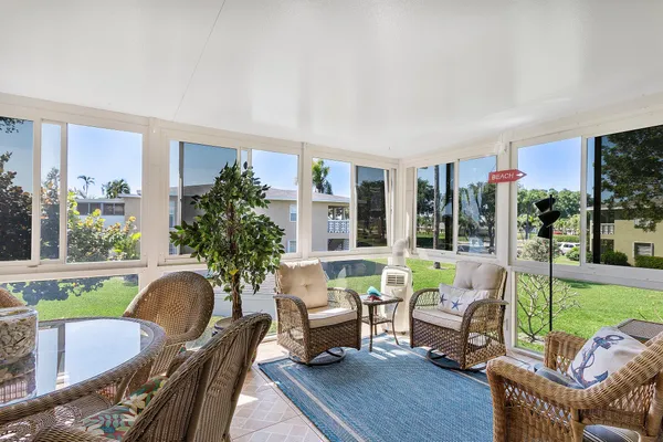 Fully Renovated 2-Bed, 2-Bath Condo with Impact Glass & Sunroom - Turnkey Ready! Discover this beautifully furnished condo in Pines of Delray East featuring complete impact glass windows/doors for peace of mind. Enjoy a bright and sunny sunroom perfect for relaxation. Just bring your clothes and settle right in. Other features include porcelain tile flooring throughout, quartz counter tops, side by side front loading Washer/Dryer. Maintenance includes Water, Cable and Internet. Come enjoy this Active Community with 2 pools and clubhouses, fitness centers, bocce ball, tennis, shuffle board and more. Lots of activities and clubs to join with your neighbors! Minutes to downtown Delray Beach, 2 miles to the beach and minutes to all your shopping needs.