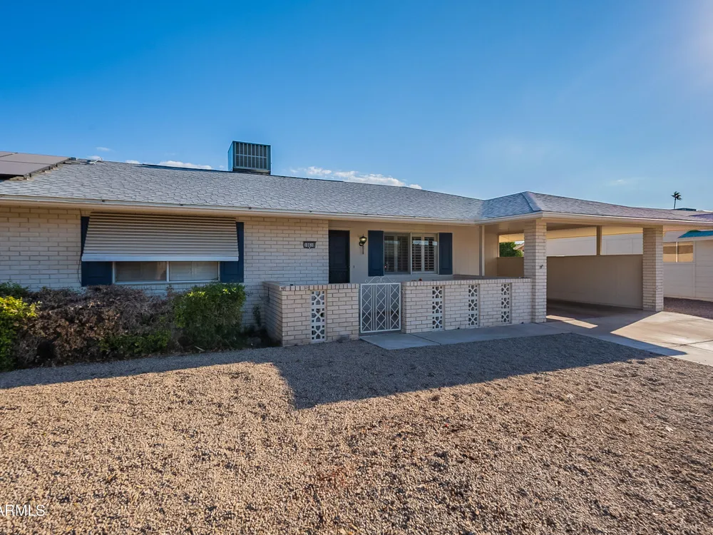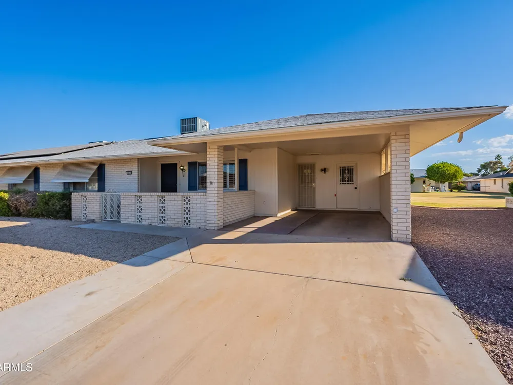 This two-bedroom, 2 bathroom gemini/townhouse offers approximately 1,285 square feet of living space. The property features updated flooring, a newer air conditioning system and solar panels. Located in the Sun City community, this home boasts skylights and built-in cabinets in the second bedroom. An indoor laundry area with a washer and dryer is included and there is extra storage space available outside. This home would be ideal for those seeking a relaxed, Low-Maintenance lifestyle.