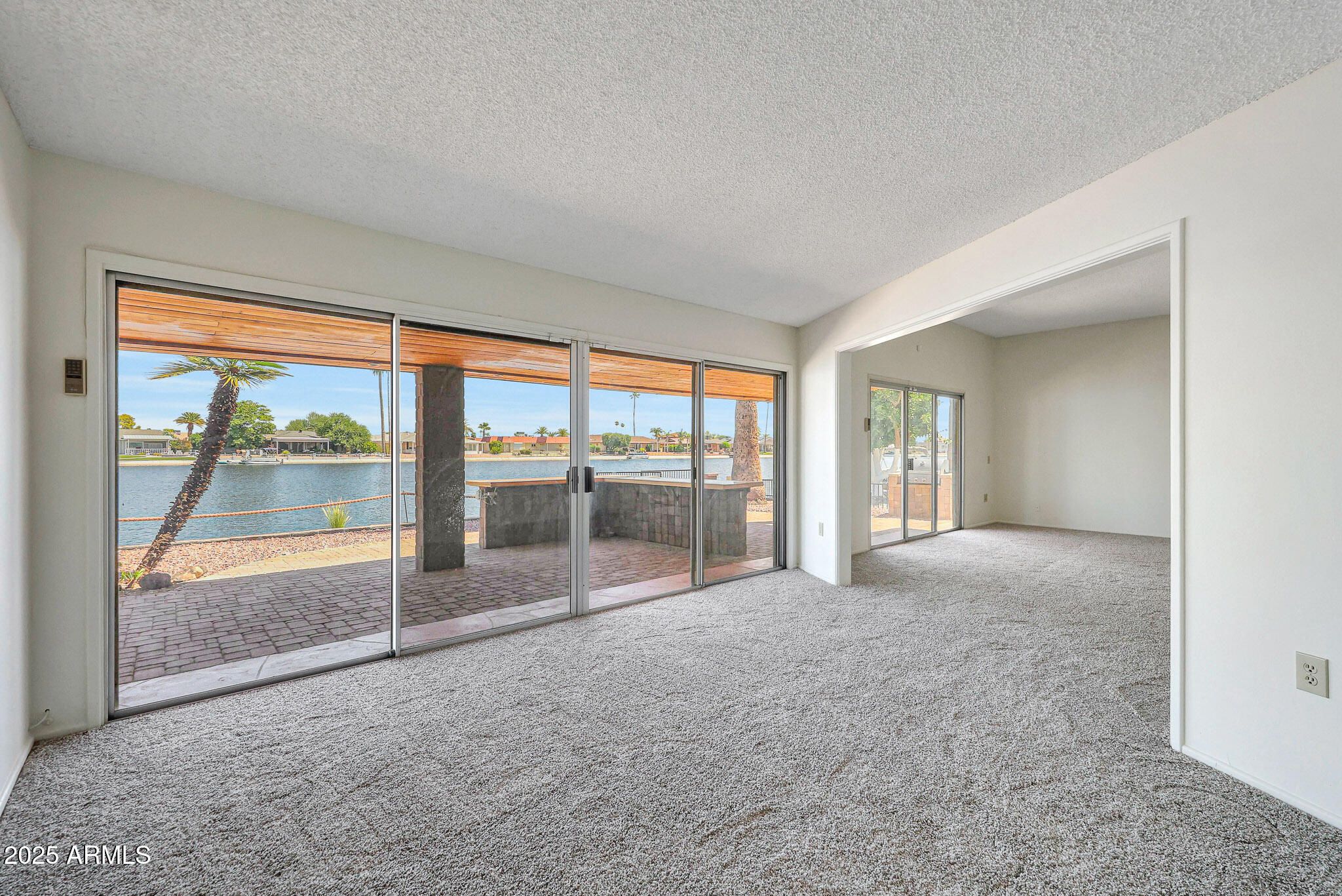 Lakefront Living At It's BEST! A rare opportunity to own a lakefront home on Viewpoint Lake, where only 81 residences enjoy this coveted setting in Sun City's premier 55+ active adult community. With your own private boat dock, you can fish, kayak, paddleboard, or simply soak in the serene surroundings right from your backyard. This home is designed for entertaining, with multiple sliding glass doors that open to expansive outdoor living areas and stunning lake views. Inside, a formal dining room offers elegance for gatherings, while the kitchen presents incredible potential—imagine adding a working island and creating a true open-concept. Sun City offers a resort-style lifestyle, complete with 11 golf courses, 7 recreation centers, pools, fitness facilities, and countless clubs.