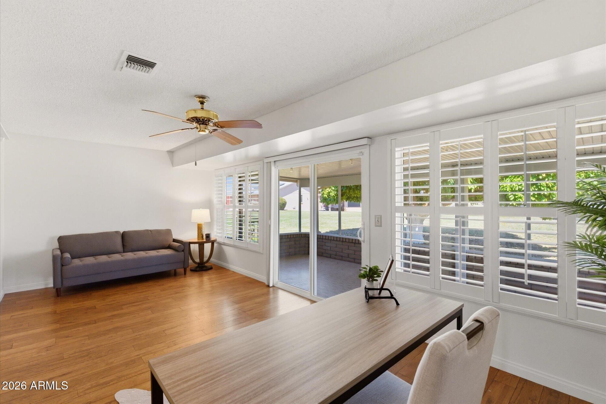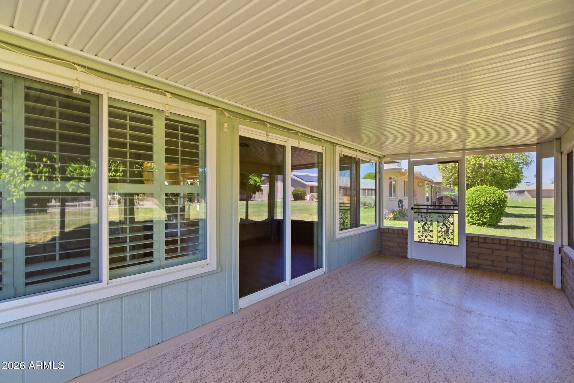 Come see this well-maintained home that has all the big ticket updates already done and is in a great location. Major improvements include sewer relining in 2022, a new roof in 2020, and a tankless water heater replaced in 2020, along with newer windows that fill the home with tons of natural light. The kitchen offers newer white cabinets with beautiful tile backsplash. Walk outside and enjoy a covered front patio with pergola and a screened-in back patio/Arizona room for extra living space. The home is surrounded by green grass maintained by the HOA. Conveniently located near Lakeview Rec Center, Sun Dial Rec Center, Bell Road, and Riverview Golf Course, with shopping and dining close by. This property is also rentable, so don't miss your chance on a great opportunity to live in Sun City.