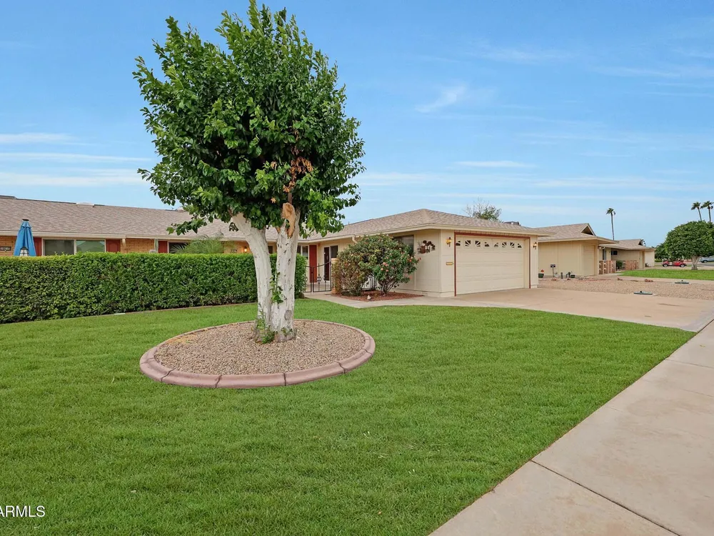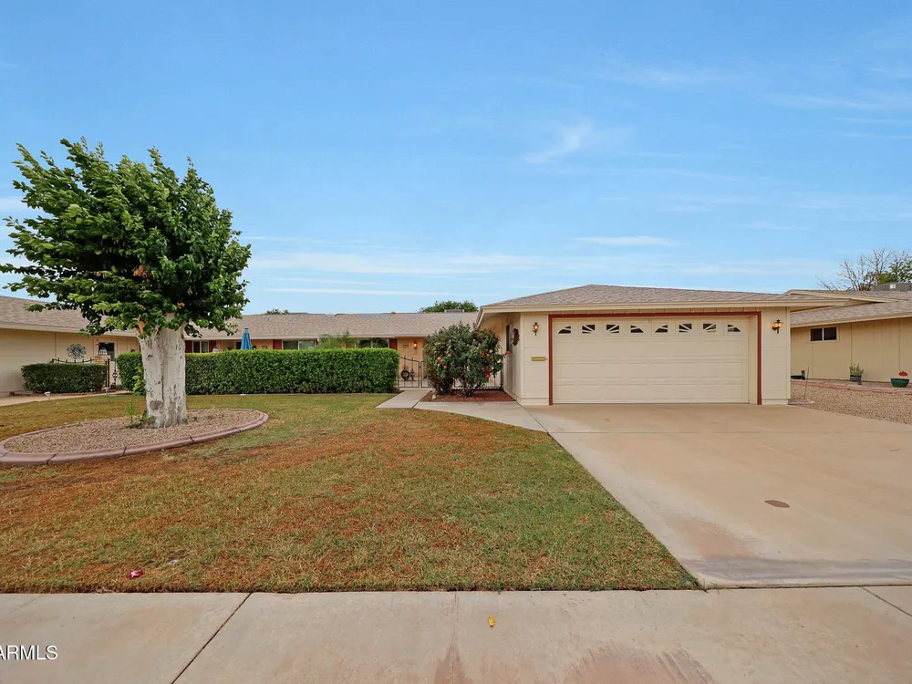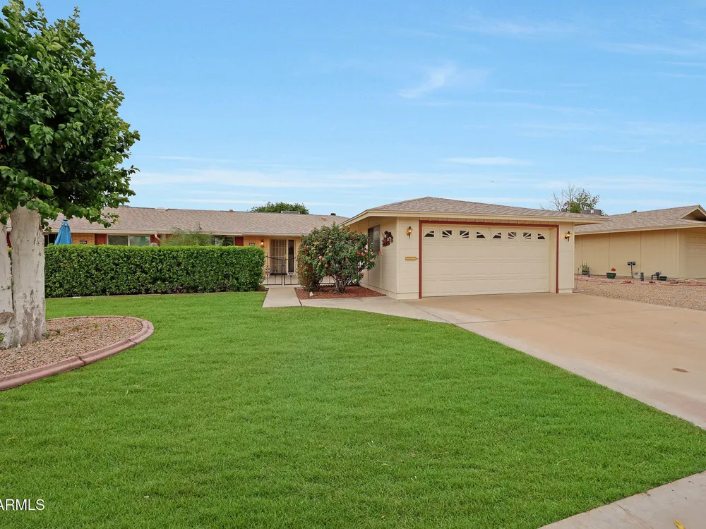 Welcome to Del Webb's Original Sun City, where you can enjoy 8 golf courses, a 33 acre man-made lake, 7 recreation centers & outdoor amphitheater. Enjoy all this from updated (down to the studs 2015) Move in ready home. Upgrades made at that time included: Interior copper wiring, new outlets, Stainless appliances, Custom cabinetry throughout w/soft close doors & drawers, granite counters, updated interior doors, baseboards & door casings., dual pane vinyl windows & sliders. Tile & carpet throughout.. Updated bathrooms included toilets, vanities & shower/tub enclosures. Ceiling fans throughout & no popcorn ceilings. Primary bedroom has 2 walk in closets & dual vanity sinks. Eat-in kitchen w/direct access to front courtyard. Garage has storage cabinets & direct access to front courtyard