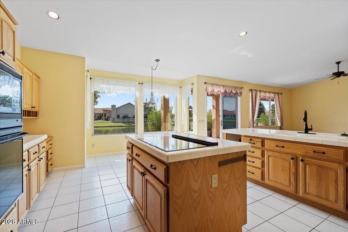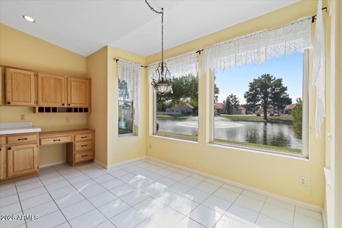 Rare floor plan in the highly sought-after 55+ golf course community of IronOaks at Sun Lakes! This 4-bedroom, 3-bath waterfront home offers 3,435 square feet of beautifully maintained living space, including a downstairs primary suite with dual closets and a spacious 3-car garage. Lovingly cared for and move-in ready, the home reflects its original charm while offering an expansive layout that's hard to find in the community. Enjoy breathtaking lake and fountain views from your backyard and relax under the covered patio with peaceful waterfront scenery as your backdrop. Residents enjoy resort-style amenities including golf, tennis, pickleball, pools and spas, fitness center, clubs, and on-site dining. This is the kind of space, setting, and lifestyle that buyers are waiting for.