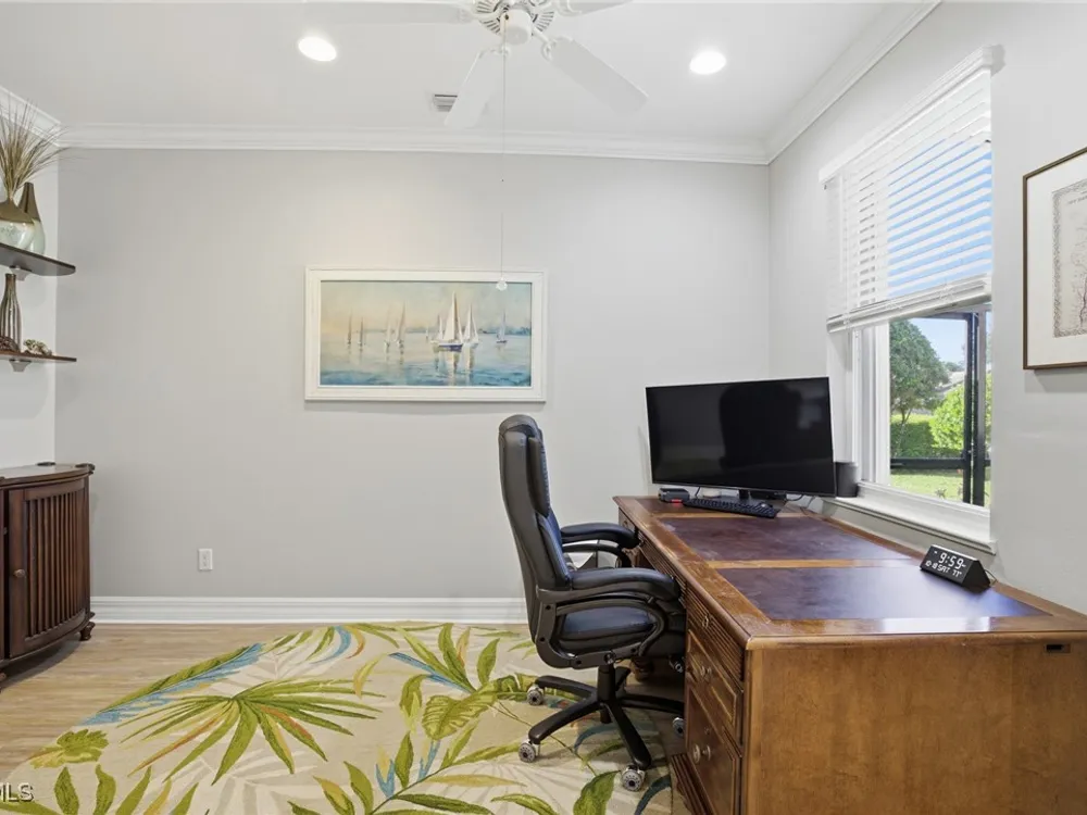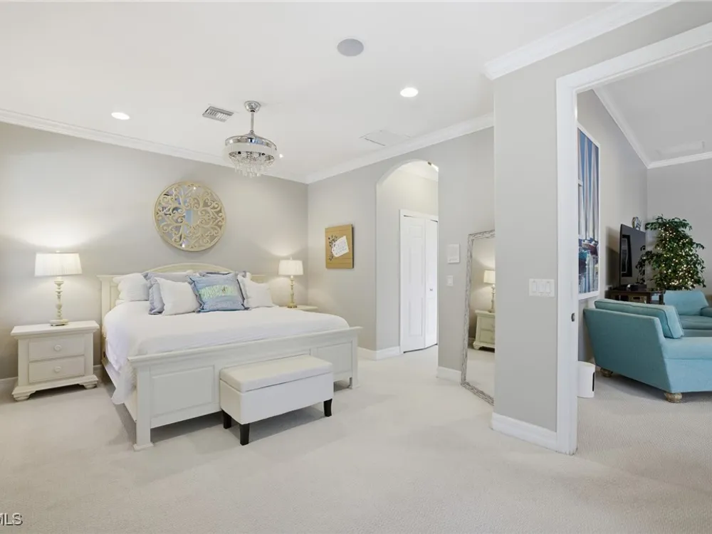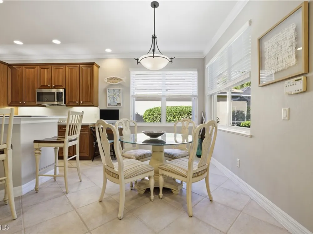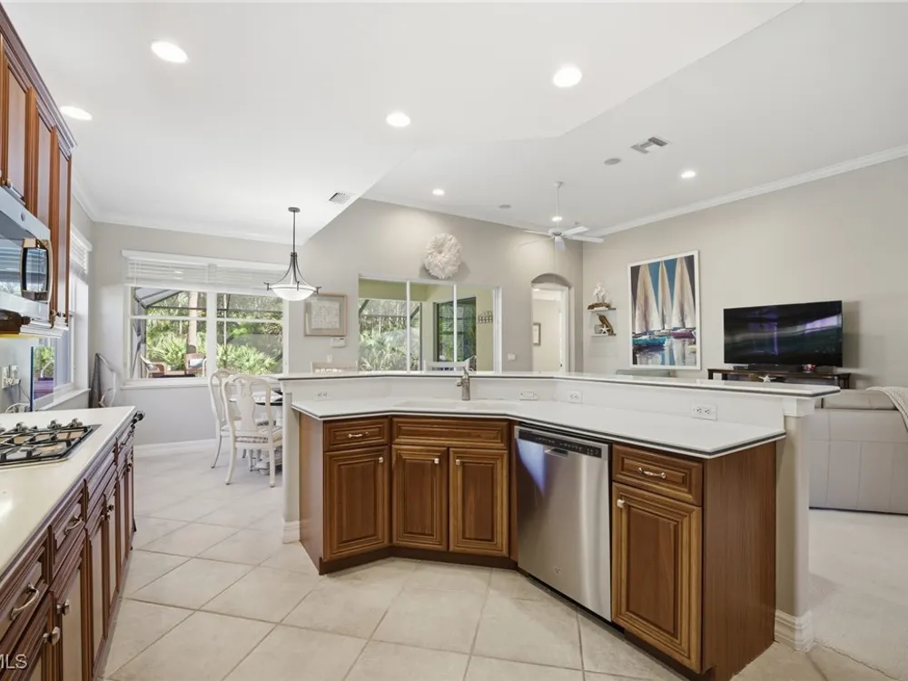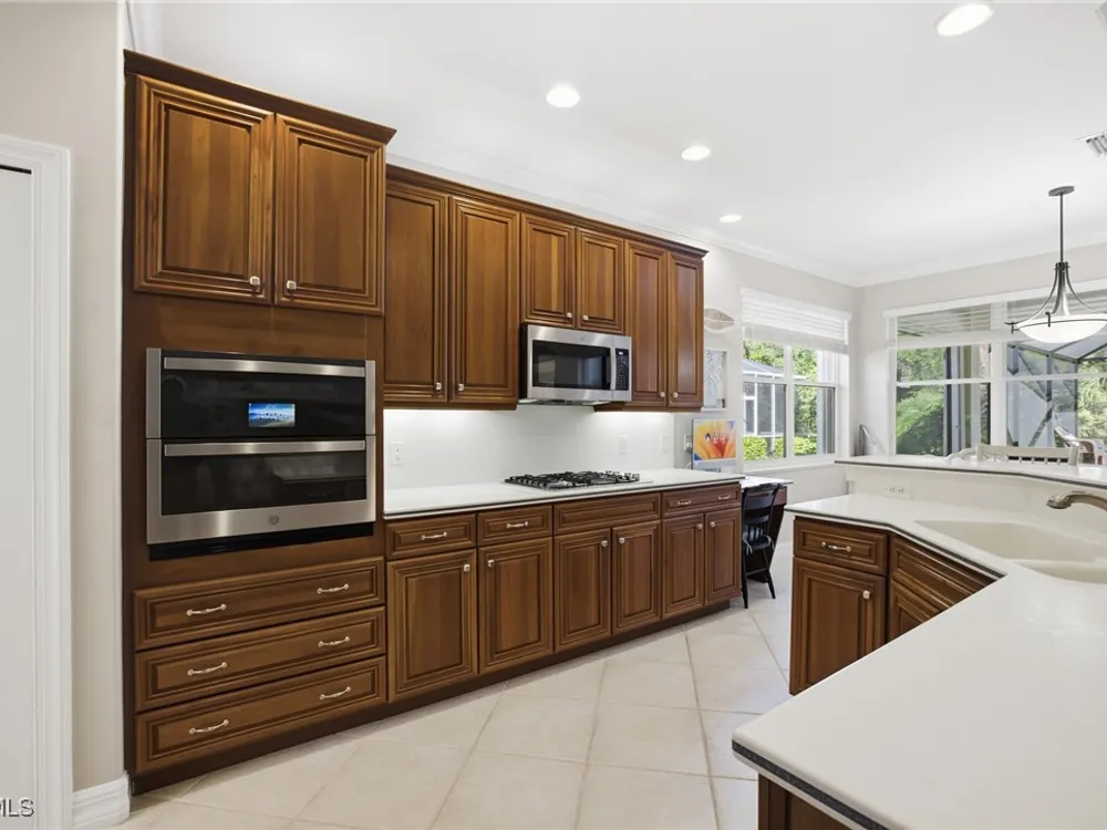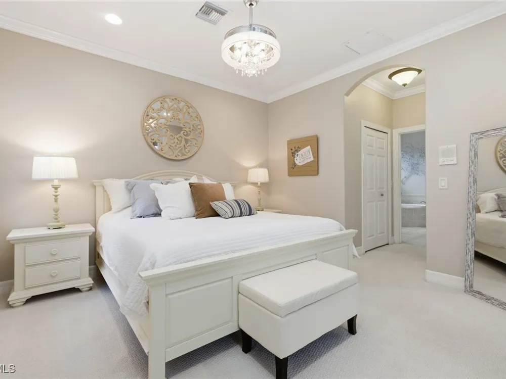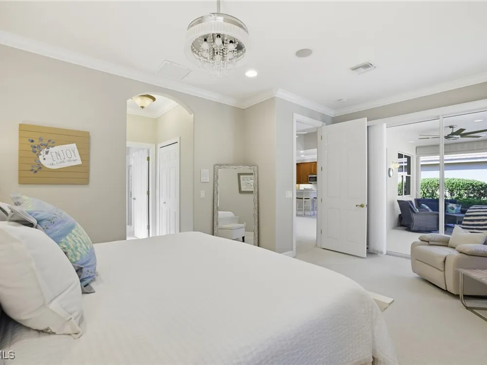 LOCATION! LOCATION! LOCATION! Imagine the convenience of being within walking distance to the Town Center, walking trails, tennis and pickleball courts, swimming pools, fitness center, farmers market, restaurants like Flip Flops and Destinations, and the amphitheater for concerts. You can even walk to the golf course if you desire. This was a WCI model home and has amazing 13' ceilings and 8'doors. This home boasts over $85,000 in recent upgrades, all completed for you. The recently renovated pool and cage area feature a sparkling blue saltwater pool and spa with a new heater that can be controlled from your phone. The deck has been resurfaced with a "soft on your feet" rubber concrete surface. There is ample space for relaxation or entertaining under cover and on the pool deck. The property backs up to a preserve area, offering privacy and tranquility, with deer often spotted in the vicinity. The Barcelona floor plan includes a great room, flex room, den, and two bedrooms. The entry features a screen-enclosed entryway to welcome guests. The entire interior has been repainted, with new carpet, crown molding throughout, new kitchen appliances, a brand-new AC unit, and a water treatment system. Another special feature of this home is that there is natural gas being used for the water heater, dryer, cook top and grill. The roof is only five years old, and all windows are equipped with accordion shutters for added protection. This home is sure to attract attention and offers the opportunity to live the dream in Pelican Preserve, a sought-after 55+ community that has received national recognition for its exceptional lifestyle amenities. Don't miss out on the chance to experience the best of what this community has to offer. You will love it here.