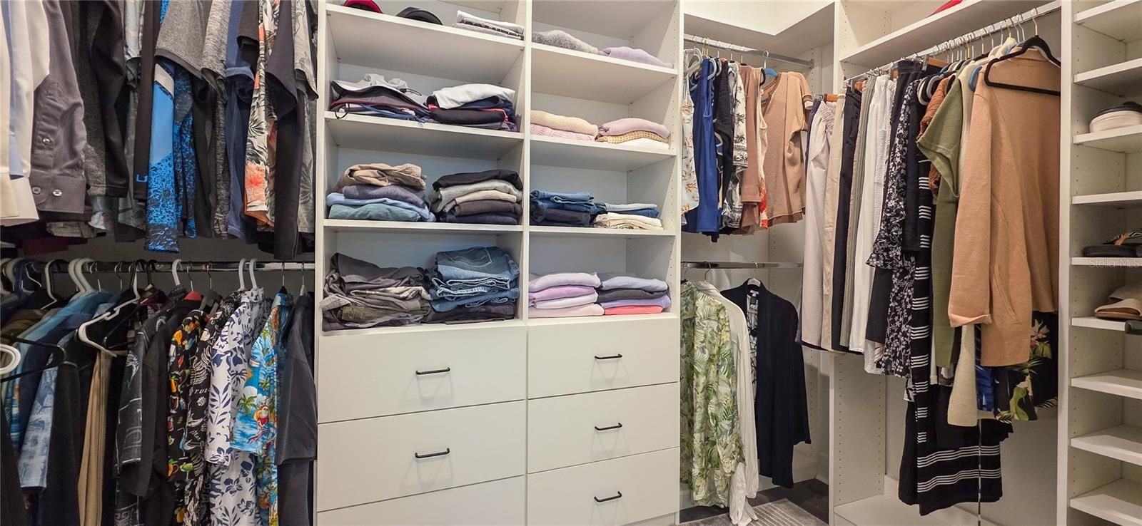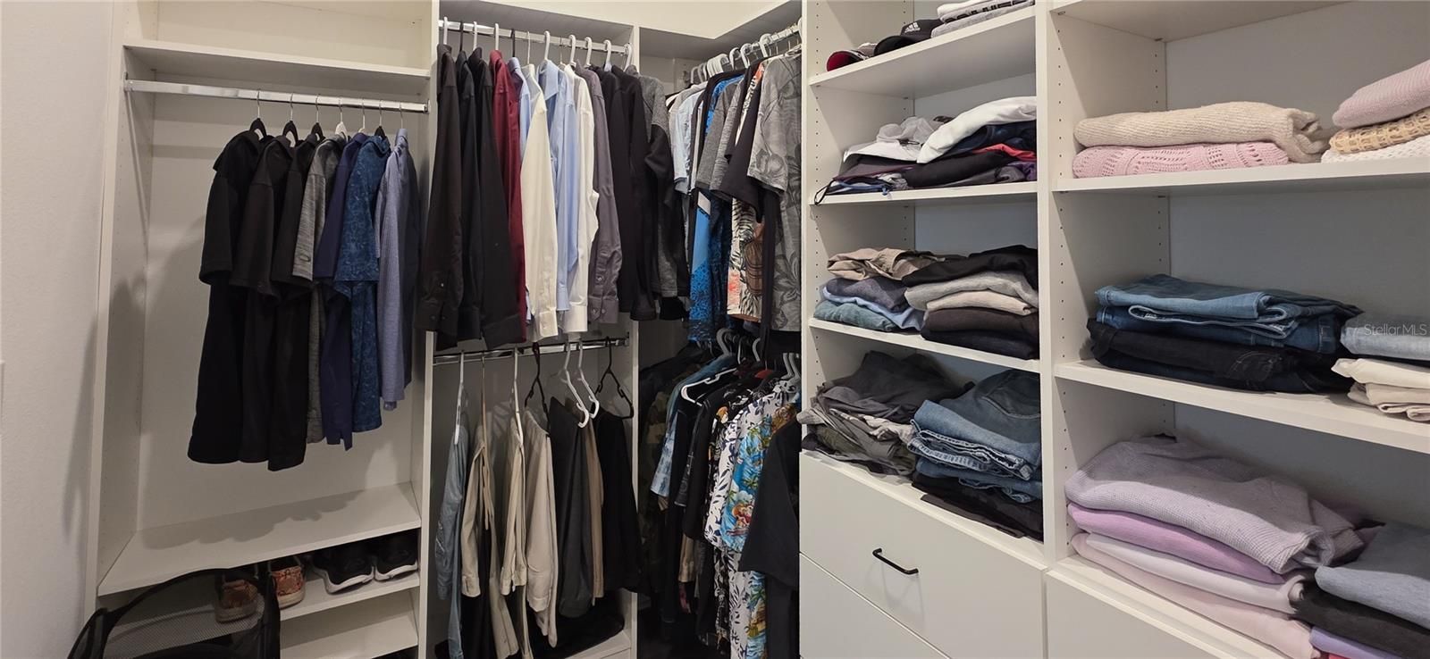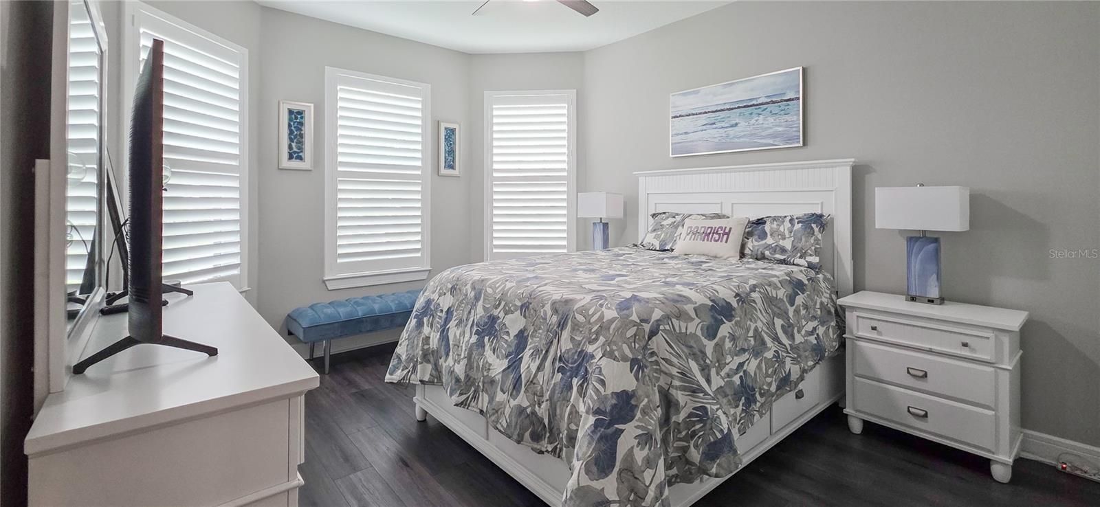 - Built-in Features, Kitchen/Family Room Combo, Open Floorplan, Main Level Primary, Solid Surface Counters, Thermostat, Walk-In Closet(s), Window Treatments