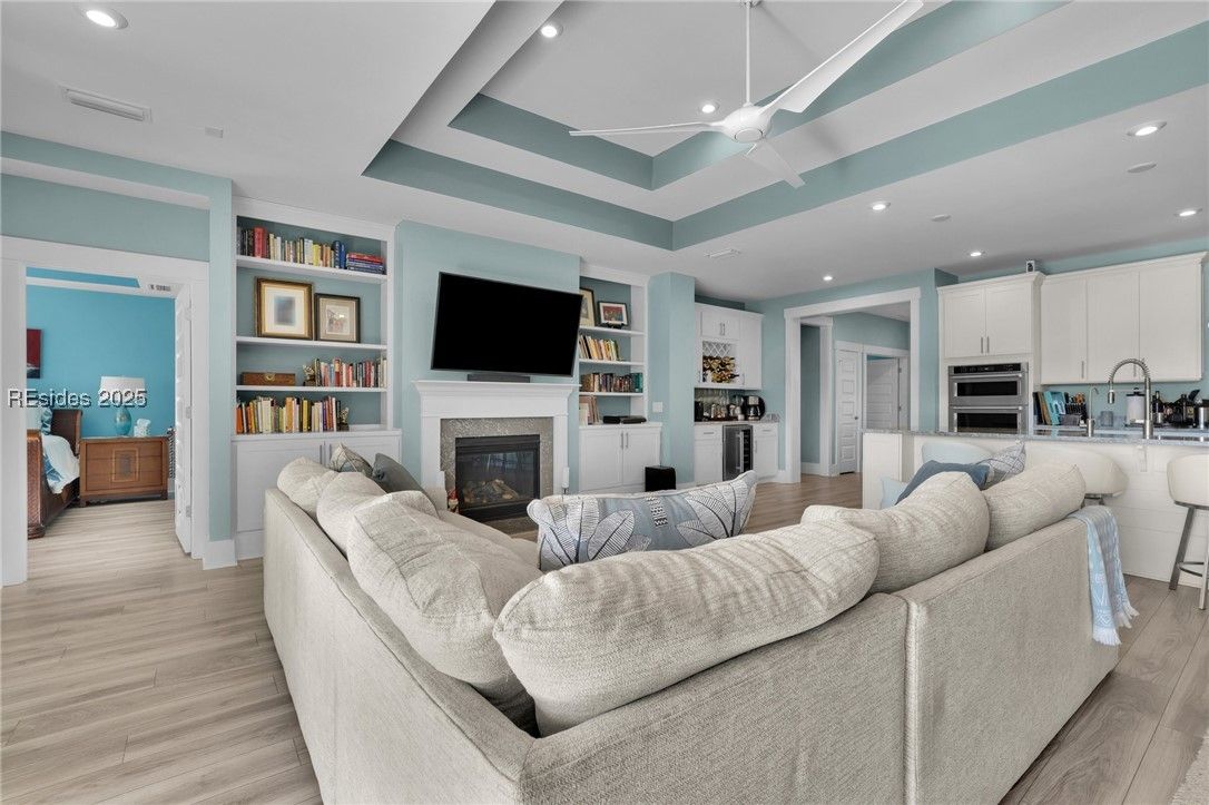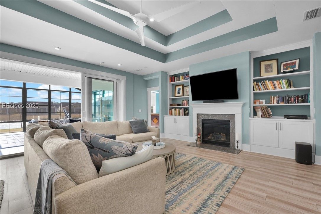 - Bookcases, Built-in Features, Tray Ceiling(s), Ceiling Fan(s), Carbon Monoxide Detector, Fireplace, Jetted Tub, Main Level Primary, Multiple Primary Bathrooms, Permanent Attic Stairs, Unfinished Wall(s), Wired for Data, Window Treatments, Entrance Foyer, New Paint, Pantry