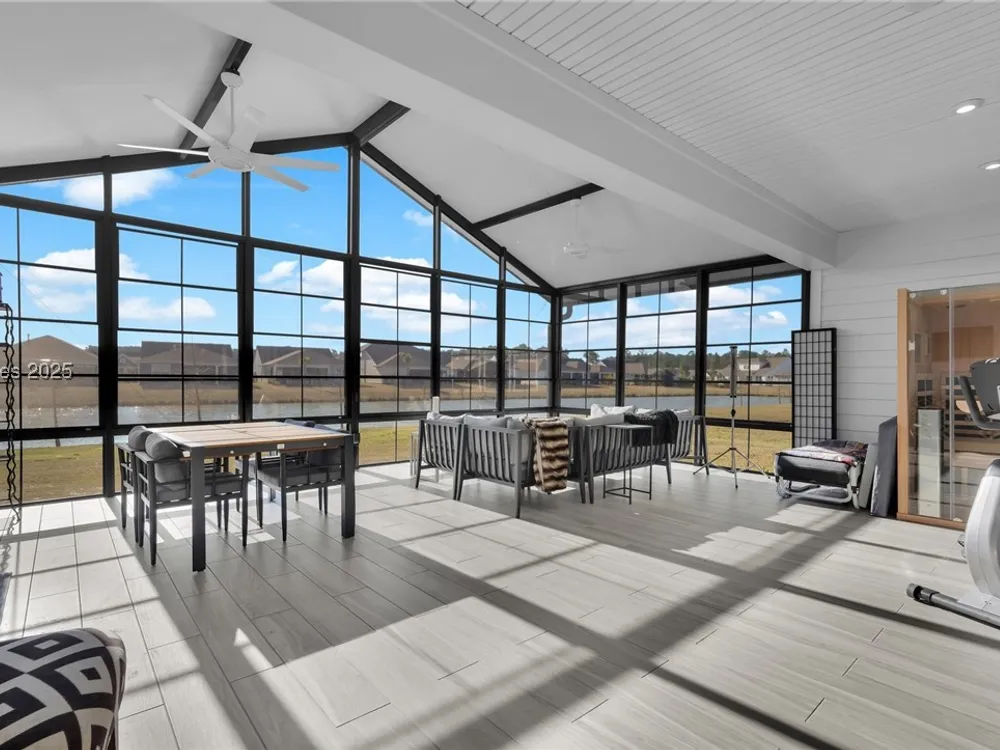 Welcome to 1062 Dreamscape Drive A Sun City Sanctuary. STARDOM. Discover the perfect blend of luxury, comfort, and active adult living at 1062 Dreamscape Drive, located in the heart of Bluffton's sought-after Sun City Hilton Head community. This beautifully maintained Expanded STARDOM model offers a thoughtfully designed open floor plan with 2/3 bedrooms, 2.5 full baths, a private office/flex room, and a spacious 575 SF screened/ with vinyl windows lanai, ideal for relaxing or entertaining Year- Round. Key Features: 2 Master Suite Bedrooms / Den or possible 3rd bedroom, Approx. 2,824 sq. ft. of smartly designed living space. Hardwood and tile flooring throughout no carpet. Gourmet kitchen with granite countertops, stainless steel appliances, and large island with seating. Spacious primary suite with walk-in closet and en-suite bath featuring dual vanities and a walk-in shower . Office/den with glass French doors perfect for a workspace, library, or guest overflow. Screened/ Vinyl windows lanai and patio with pavers overlooking a private backyard and LAGOON. Upgraded landscaping and charming curb appeal 3-car garage with attic storage and epoxy flooring. Step inside and feel immediately at home with the bright and airy living space, enhanced by high ceilings, large windows, and tasteful finishes. The kitchen is the centerpiece of the home perfect for casual meals or hosting friends. The serene primary bedroom retreat is located at the rear of the home for added privacy, while the second bedroom and full bath accommodate guests with ease. The flex room/office adds functionality and can be tailored to suit your lifestyle.Outdoor living is a delight, thanks to the extended screened lanai, where you can enjoy morning coffee or evening breezes in comfort. The backyard offers a peaceful setting with no homes directly behind, but great Lagoon view, adding to the tranquil ambiance. 1062 Dreamscape Drive offers easy access to the Argent Lakes golf course, Town Square, and the back gate to Blufftons shopping and dining scene. Just a short drive from Hilton Head beaches, Savannah, and Beaufort, this home puts you in the center of it all while maintaining the quiet serenity of gated community living.Move-in ready, lovingly maintained, and packed with upgrades, this Sun City gem is a must-see. Whether you're seeking full-time Lowcountry living or a part-time retreat, 1062 Dreamscape Drive checks all the boxes.