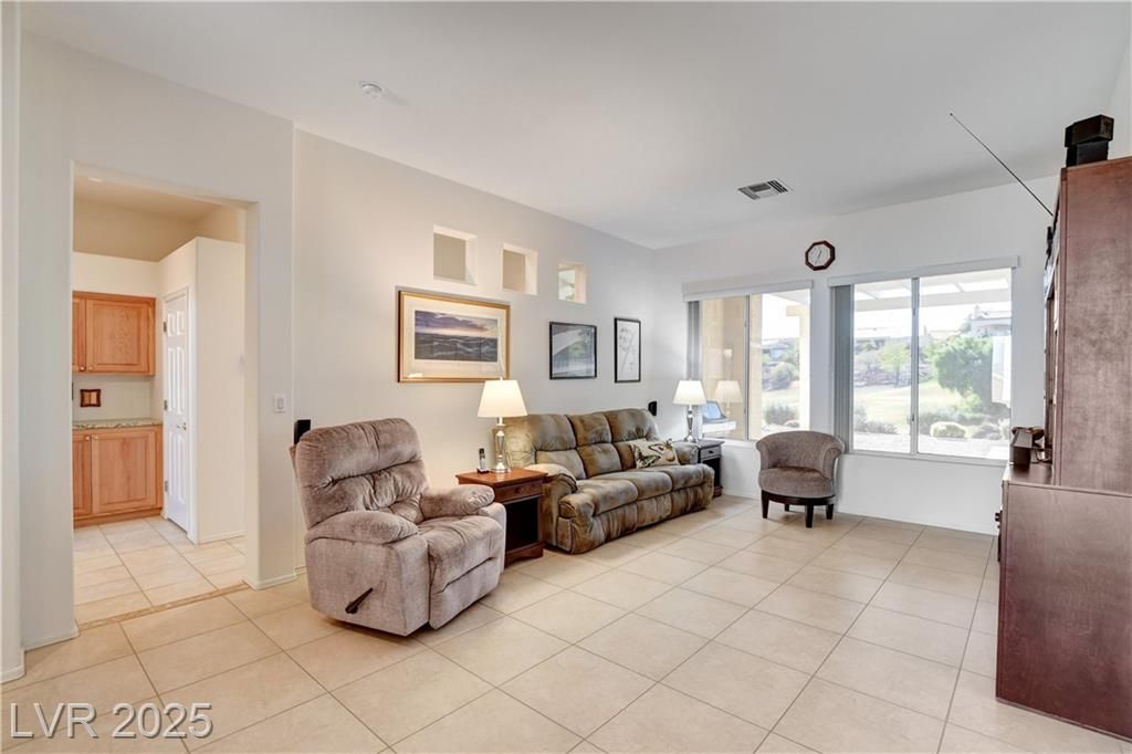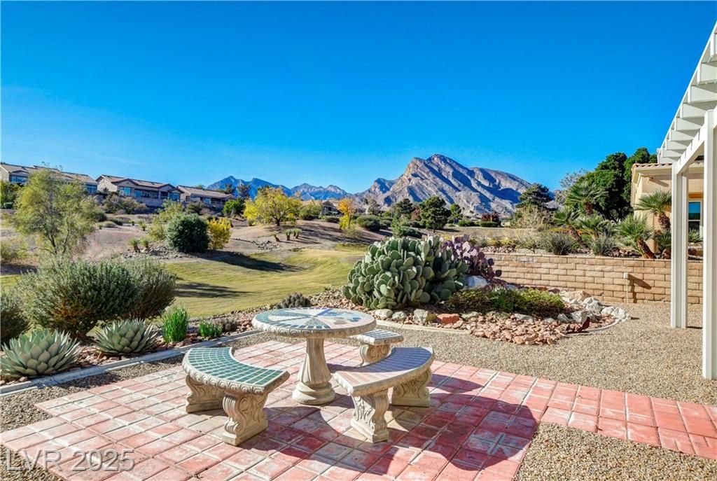 Beautiful single-story home in the coveted Sun City Summerlin golf course community! LOCATED ON THE GOLF COURSE ~ Enjoy Serene Golf Course views and Stunning Mountain Vistas right from your backyard. This well-maintained residence features Rolladen shutters throughout all windows and solar screens to keep the home comfortable and energy-efficient. The open floor plan is filled with natural light, complemented by a modern kitchen and spacious living area perfect for entertaining. Relax on the covered patio overlooking the lush greens. Conveniently located near shopping, dining, and walking trails, this home combines comfort, style, and an active lifestyle. Home Features •Brand new hot water tank (installed October 2025)•Water heater (installed October 2024)•Dishwasher (1 year old)*Refrigerator (5 years old)•Air conditioning system (2 years old)•Reverse osmosis water filtration system•Solar screens and shutters•Rolladen Shutters