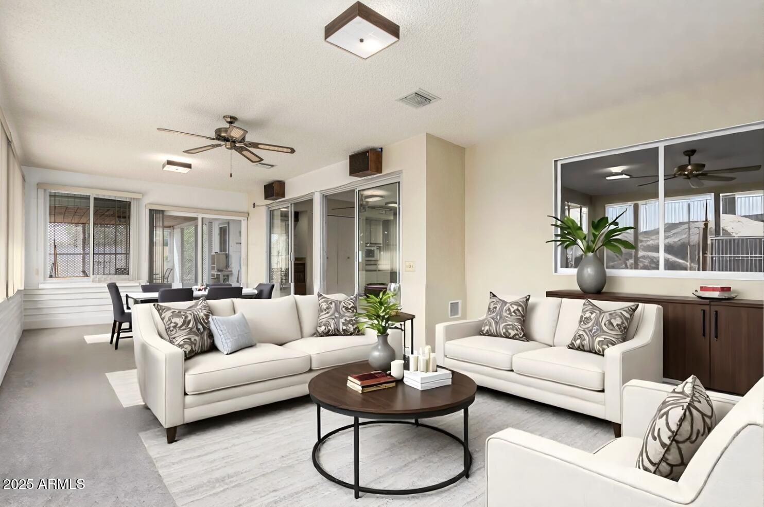 Discover the perfect blend of comfort and convenience in this move in ready 2 bedroom 2 bathroom home located in the highly desired Sun City active adult community. Enjoy the savings of OWNED solar and the versatility of two spacious living rooms ideal for entertaining or relaxing. The bright Arizona Room and covered screened in back patio create wonderful spaces to enjoy Arizona's weather all year long. Low maintenance desert landscaping in both front and backyard means more time to enjoy the community amenities.This home also includes a 2 car garage plus utility room with washer and dryer!