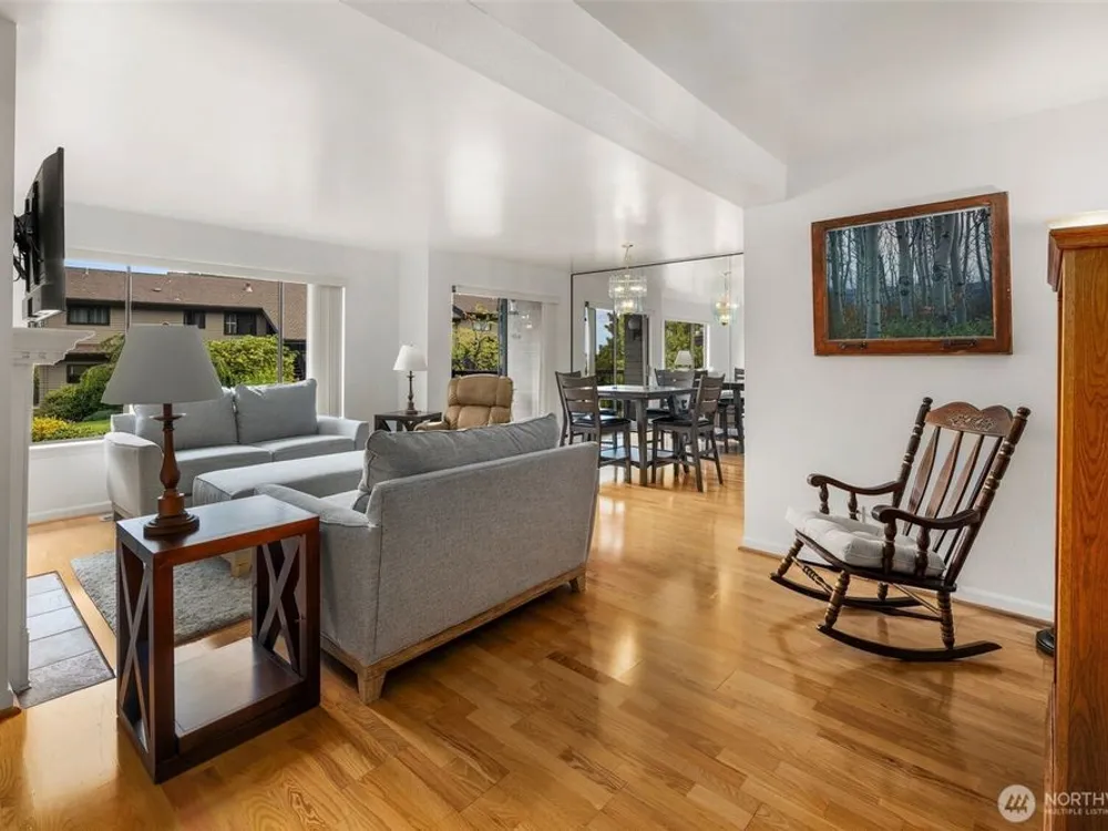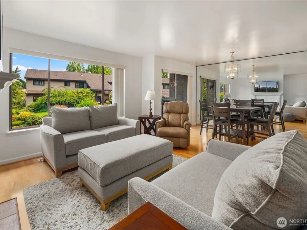 Welcome home to beautiful 55+ community of Glen Acres. Amazing amenities to keep your active lifestyle moving: 9-hole golf course, large pool, tennis & pickleball, workout gym and a clubhouse w/ restaurant/bar. Entering on the main level you'll find bright & spacious living room w/ fireplace & durable wood flooring. Updated kitchen: SS appliances and eating nook. Dining space w/ outdoor slider to the view deck. Primary bedroom rm has dual closets & full bathroom. Lower level: a guest suite with ¾ bath, storage, laundry & 2-car garage. Dues include Full Golf Club Membership + unlimited rounds. A uniquely situated community w/ easy access to downtown Seattle, Alki, Puget Sound, and the airport. Beautiful grounds exemplify pride in ownership.