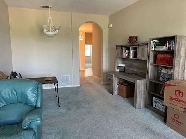 GOREGOUS view of the 7th Fairway of the Clermont National golf course. This one-of-a-kind home is ADA compliant and has been enlarged like no other. The entire interior walls have been freshly painted a beautiful neutral color. Lanai floor and garage have also been freshly painted, for that clean new look. There are 2 bedrooms, 2 baths, and a den (with built-in desk), 2 car 3’ extended garage, double pane windows, has a beautiful front door with a glass side panel. The kitchen has a tile floor, 42” Oak cabinets with pull-out drawers, refrigerator and microwave are 1 year old, gas stove, double closet pantry, porcelain double sink, and eat-in kitchenette. Inside laundry room with washer, dryer, & extra shelving for storage, and has a convenient walk through. The primary bedroom has engineered wood flooring, a bay window, 2 large walk-in closets, and primary bath has a private commode, walk-in shower, garden tub and double vanities. 2nd bedroom and den are carpeted, and den has a bay window. Dining room has a stunning chandelier. Living room has the breath-taking view of the golf course and an electric fireplace (with built-ins around it) for those chilly nights. Nine feet of French doors overlook the screened Lanai with painted floors, a natural gas hook-up for a grill, also 2 solid walls for privacy. Water heater new April 2024, AC 6 years old, new comfort height toilet in Master bathroom. NEW roof up to code in 2024, 4’ extension on length of driveway (can park 4 cars in driveway), 3’ extension on foyer and 3’ extension on den and a bay window in the 2nd bedroom. This community has a fabulous 28,000 sq. ft. clubhouse incl. 8 clay lit tennis courts, 7 new pickleball courts, state-of-the-art fitness center, indoor/outdoor heated swimming pools, billiard room, 2 card rooms & an arts & craft room with its own kiln, ballroom with stage and dance floor, 19th hole with movie & book library, shuffleboard, & bocce. Great location, a bonus! Near the turnpike, bike trail, shopping, hospital, library, Restaurants, many lakes, Disney & Orlando airport (where you will pick up all your guests). The community is very friendly, active and golf cart friendly, the resort lifestyle you have been waiting for. There is 18-hole golf course, a driving range, “THE VIEW” has a restaurant and bar. HOA includes 24 hr. manned gate, all clubhouse facilities, all yard maintenance, cable tv and high speed internet. The restaurant is connected to the golf course with no financial liability to SG residents. The builder was "Levitt & Son's" with 769 single family homes. There is a onetime capital contribution of $1,692.60 charged to the buyer at closing. Come see Florida's best kept secret, in the hills of Clermont and the center of the state, safe from hurricanes. Priced to sell, call today for an appointment.