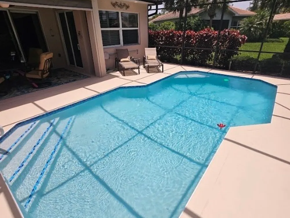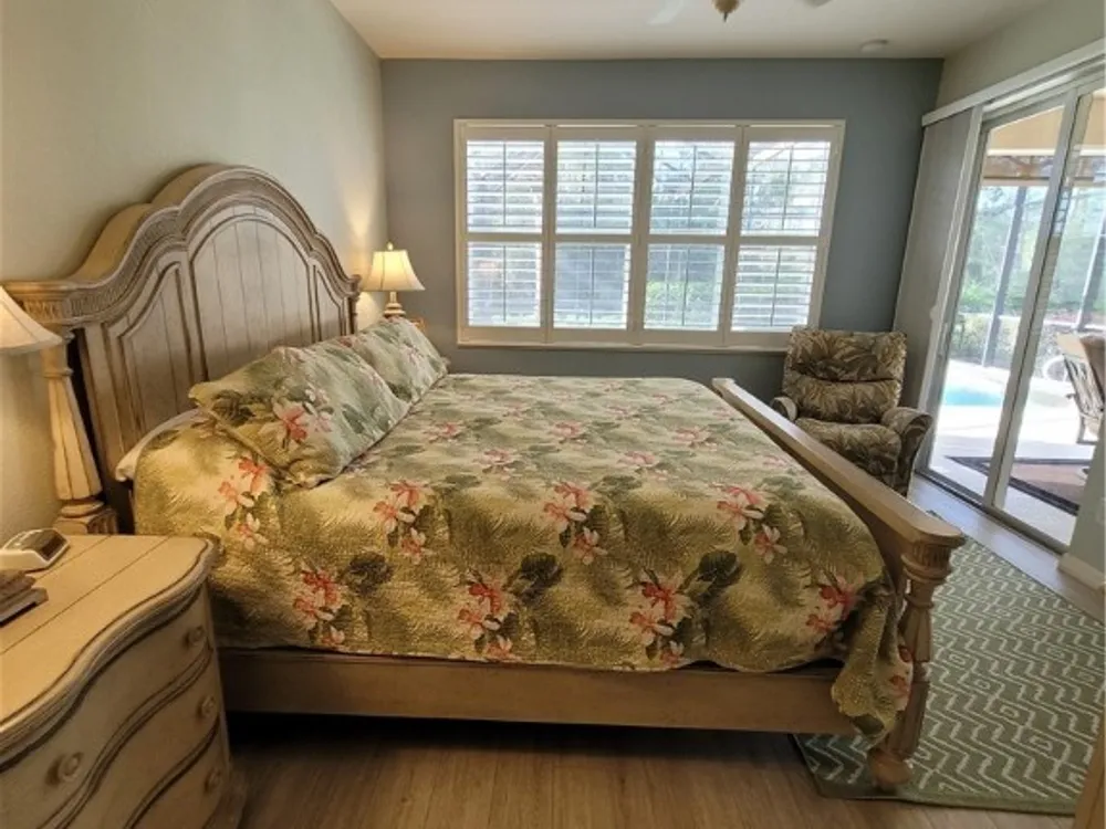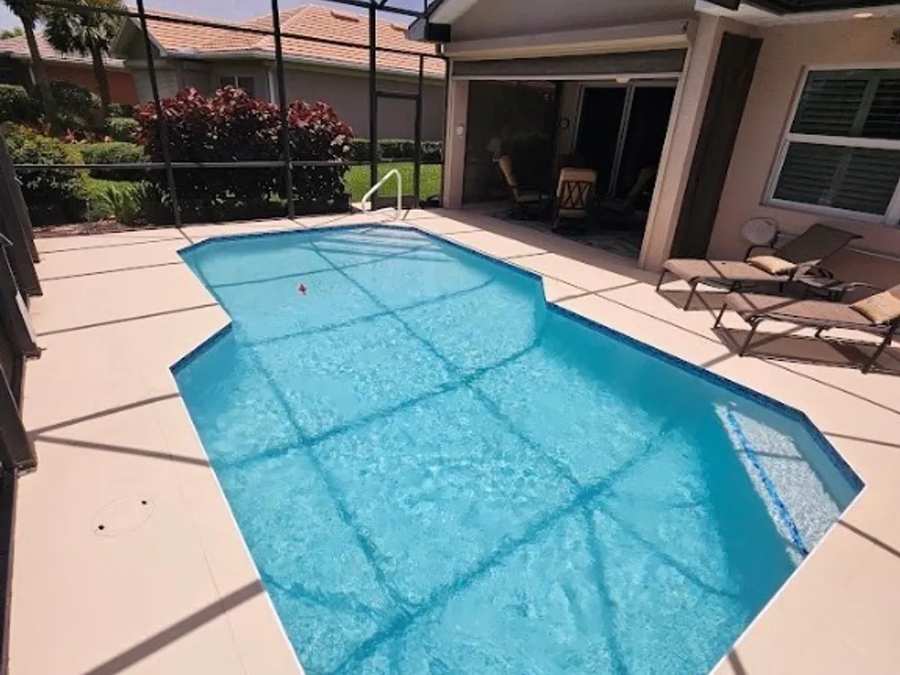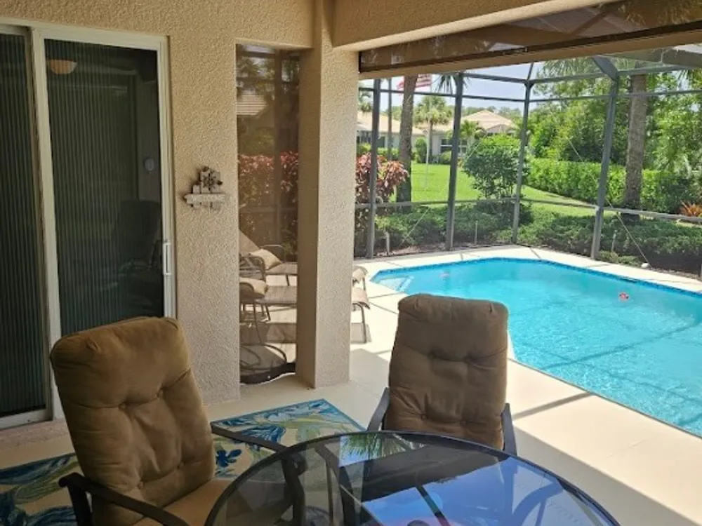 SPARKLING SALT WATER POOL HOME! POOL JUST RESURFACED 2025! Monet floor plan. Welcome to your home in paradise. This meticulously kept single family salt water pool home offers 2 bedrooms 2 bathrooms open & bright floor plan, high ceilings, arched doorways. Kitchen has NEW STAINLESS STEEL APPLIANCES (except range/oven), DOUBLE OVEN, granite countertops, eat in kitchen, lots of tall 42" cabinets with underneath lighting, Great room, Kitchen and Bathrooms have Large Diagonal Tile, Living room has large RECESSED WALL, Engineered hardwood flooring in the bedrooms, Recessed shelving in foyer, entry to lanai from living room slider pocket doors or master bedroom. Bathrooms with designed tiled shower/bath wall. PLANTATION SHUTTERS in the bedrooms. NEW WASHER & DRYER 2023 **AC SYSTEM 2022**WATER HEATER 2023 ** NEW POOL HEATING EQUIPMENT & FILTER 2023, Salt water conversion 2023, plus more. IMPACT WINDOWS & DOORS (No need to shutter). Lanai & heated pool offers comfortable extension with southwest exposure and private preserve views The under truss lanai has ROLL DOWN STORM SCREEN providing storm protection & privacy. Situated on an EXTRA WIDE RIGHT SIDE LOT, with empty space on both sides you'll feel a level of seclusion that's unmatched in the development. 55+ community offers a private 27 hole championship golf course, 26,145-sq-ft clubhouse with membership, an additional 70,000 sq ft. Town Center 2 outdoor pools indoor lap pool & more. Seasonal Short Term Income Nov-Feb 2026 $21,400.00