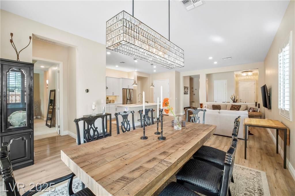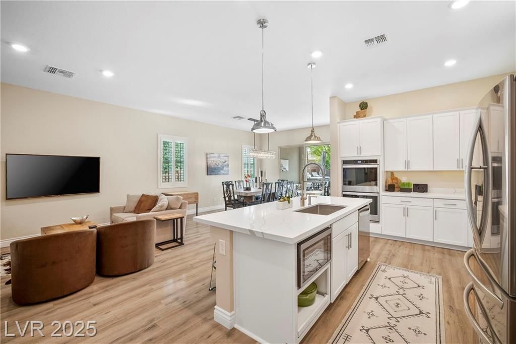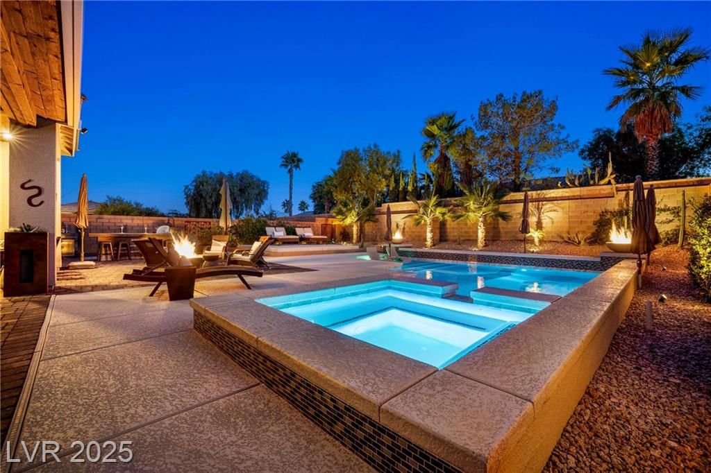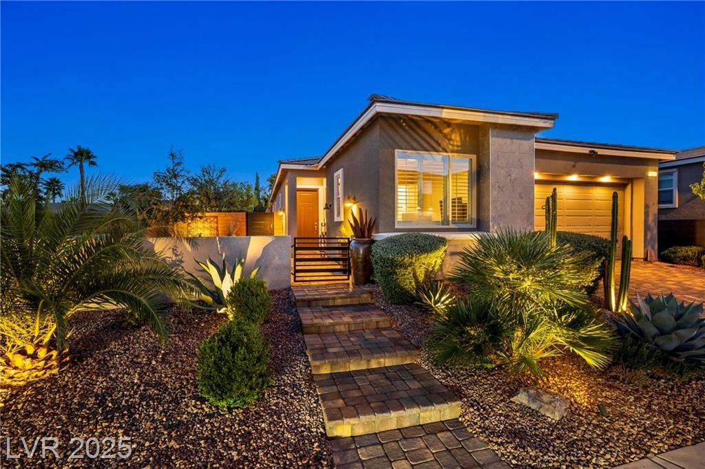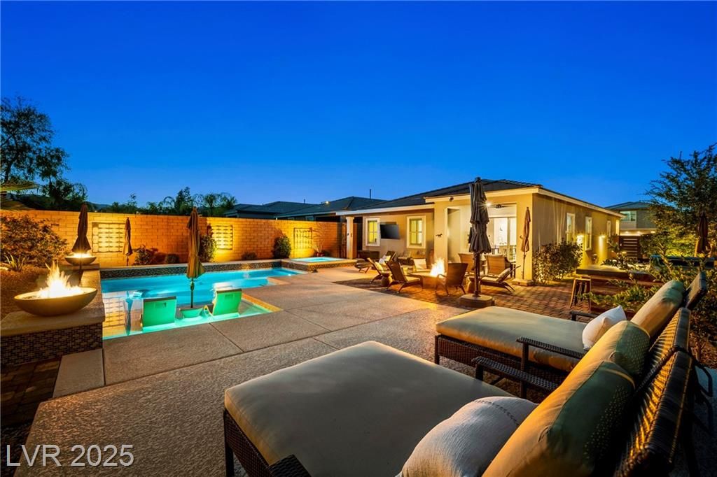 Built in 2020, this modern single-story home in Summerlin South offers the perfect blend of style and outdoor living. The open-concept design showcases white cabinetry, quartz countertops, and luxury vinyl plank flooring. A reimagined butler’s pantry adds a designer touch with its own sink, dishwasher, and wine fridge. Three spacious bedrooms include a serene primary suite with 2 custom closets. Set on an extraordinarily large 8,276 sf corner lot - this home offers rare outdoor entertaining space. The resort-style backyard features a covered living area, sparkling pool & spa with a wet deck, firepit, elevated sunset deck, and full outdoor kitchen with bar seating. A charming front courtyard completes this exceptional Summerlin South retreat.